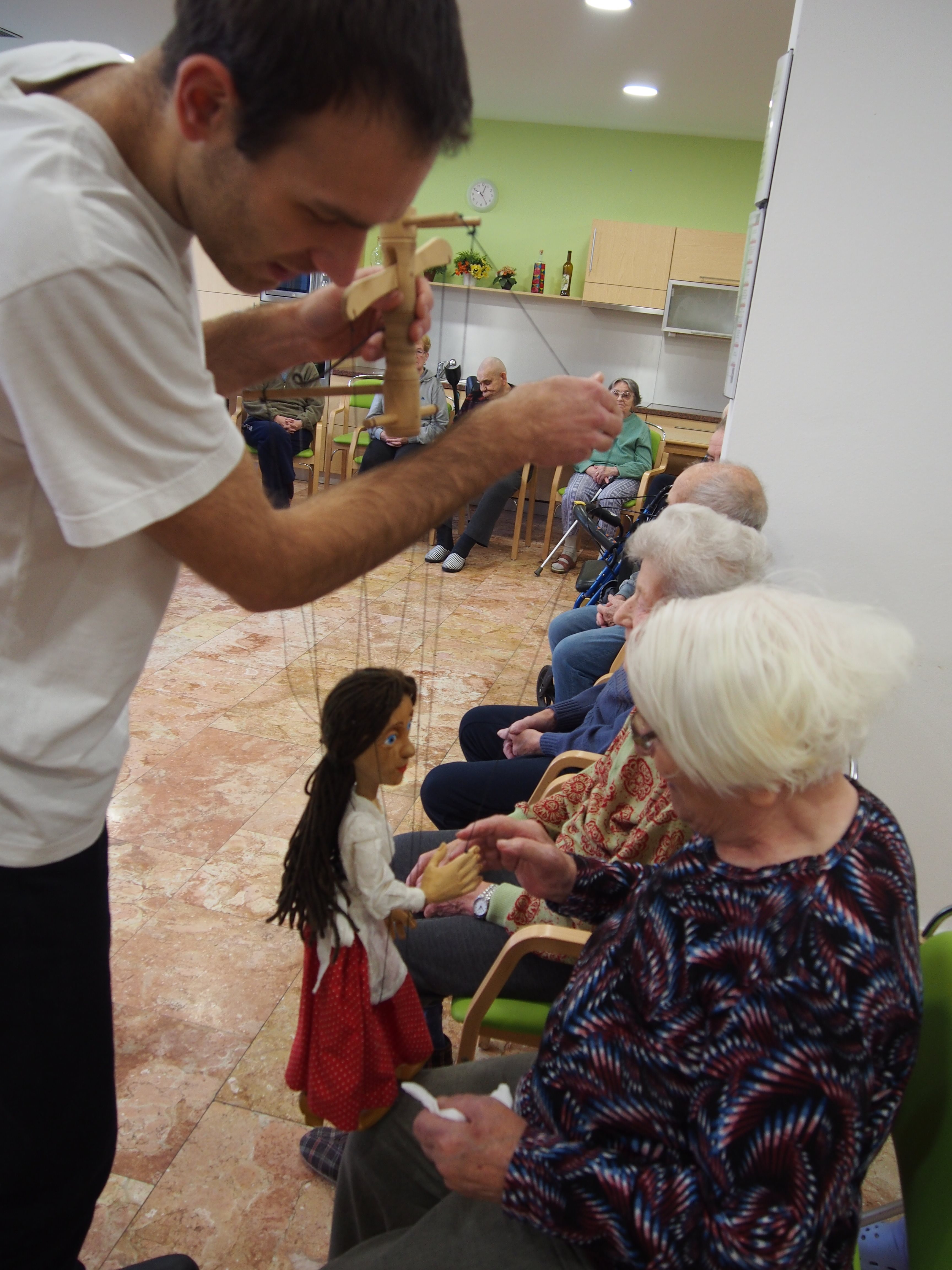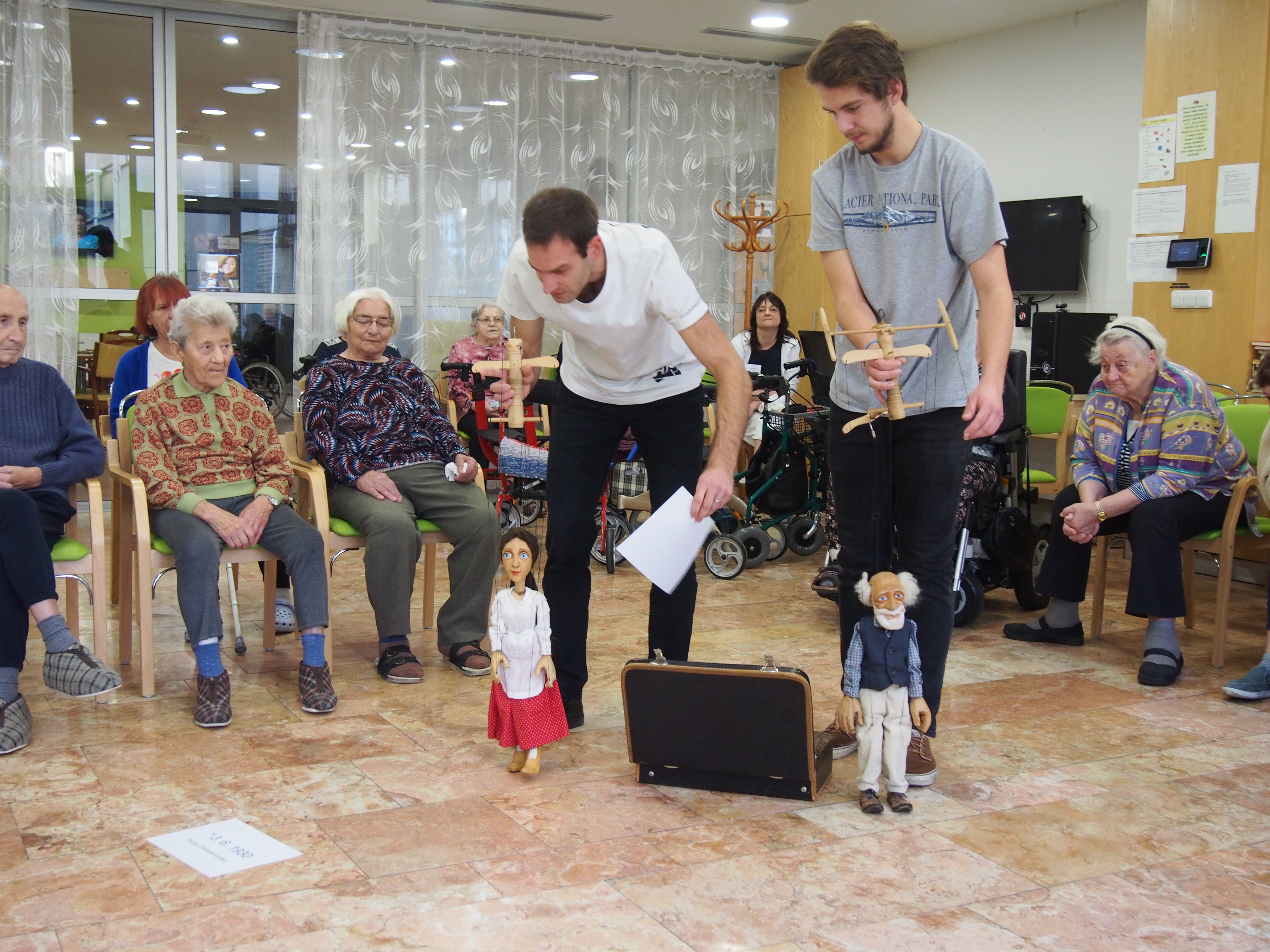 Již po několikáte se u nás uskutečnila aktivizace našich klientů pomocí loutek Divadla bez pravidel. Dnešní program s názvem K poctě Vorlíčkovi jsme mohli klientům dopřát díky Ježíškovým vnoučatům, za což moc děkujeme. Klienti zavzpomínali na nestárnoucí filmové postavy jako je Saxana, Popelka nebo Arabela a moc se jim program líbil.