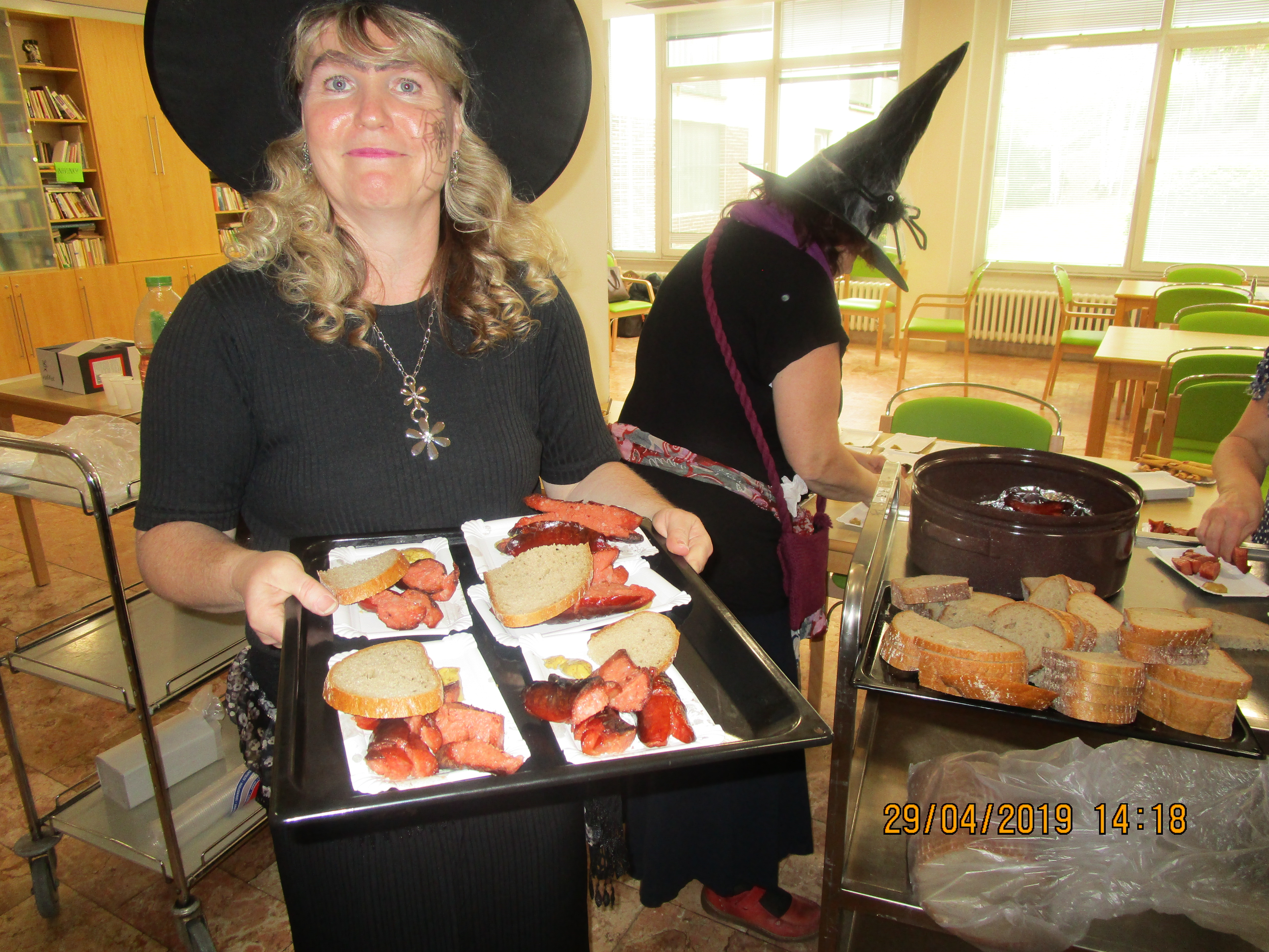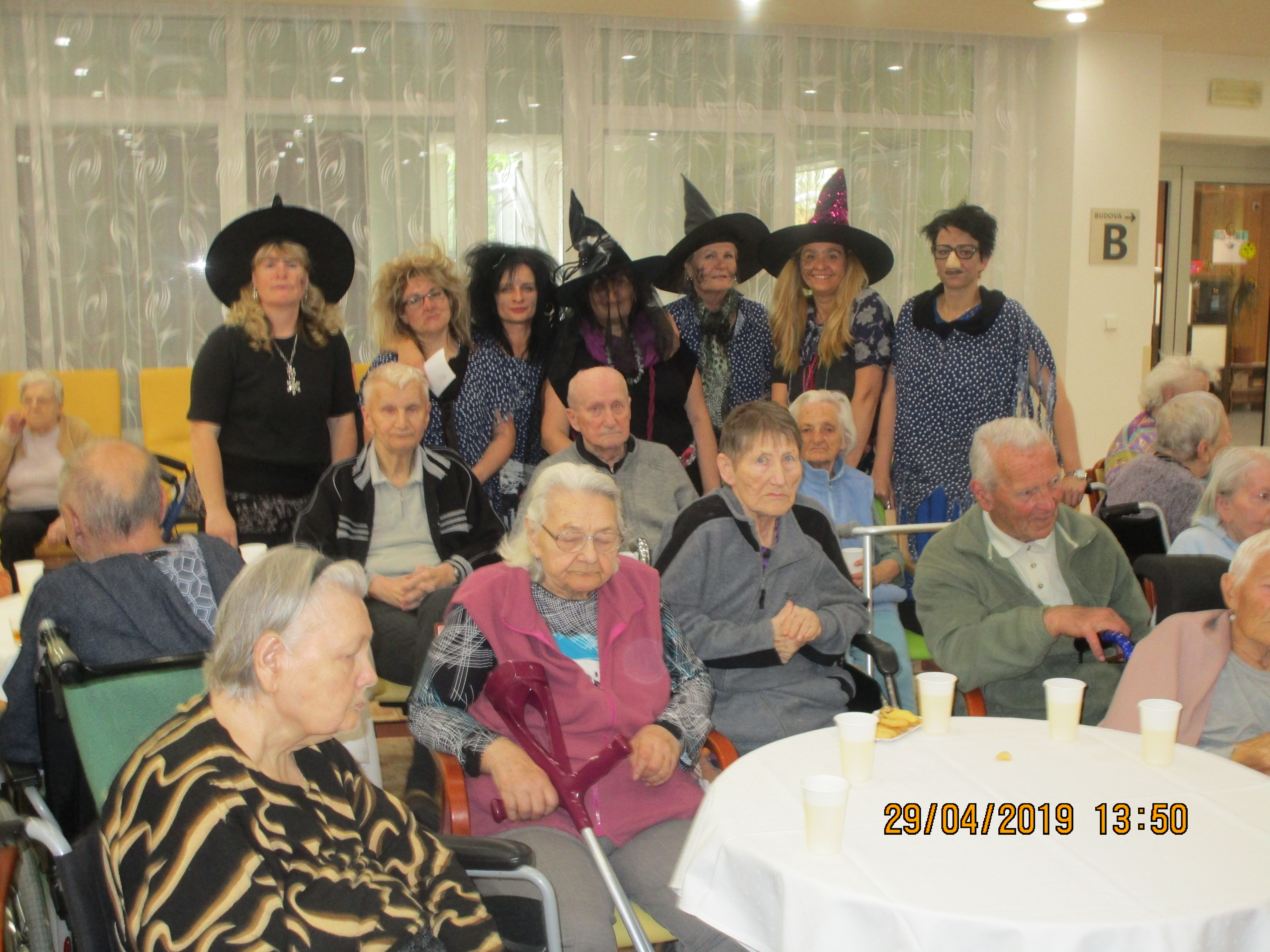 Konec dubna patřil oslavě všech čarodějnic. Začalo se výrobou čarodějnic na oddělení a pokračovalo společenskou akcí. Tu nám zpříjemnili žáci z SZŠ Jaselská, kteří si připravili zábavný program pro klienty.