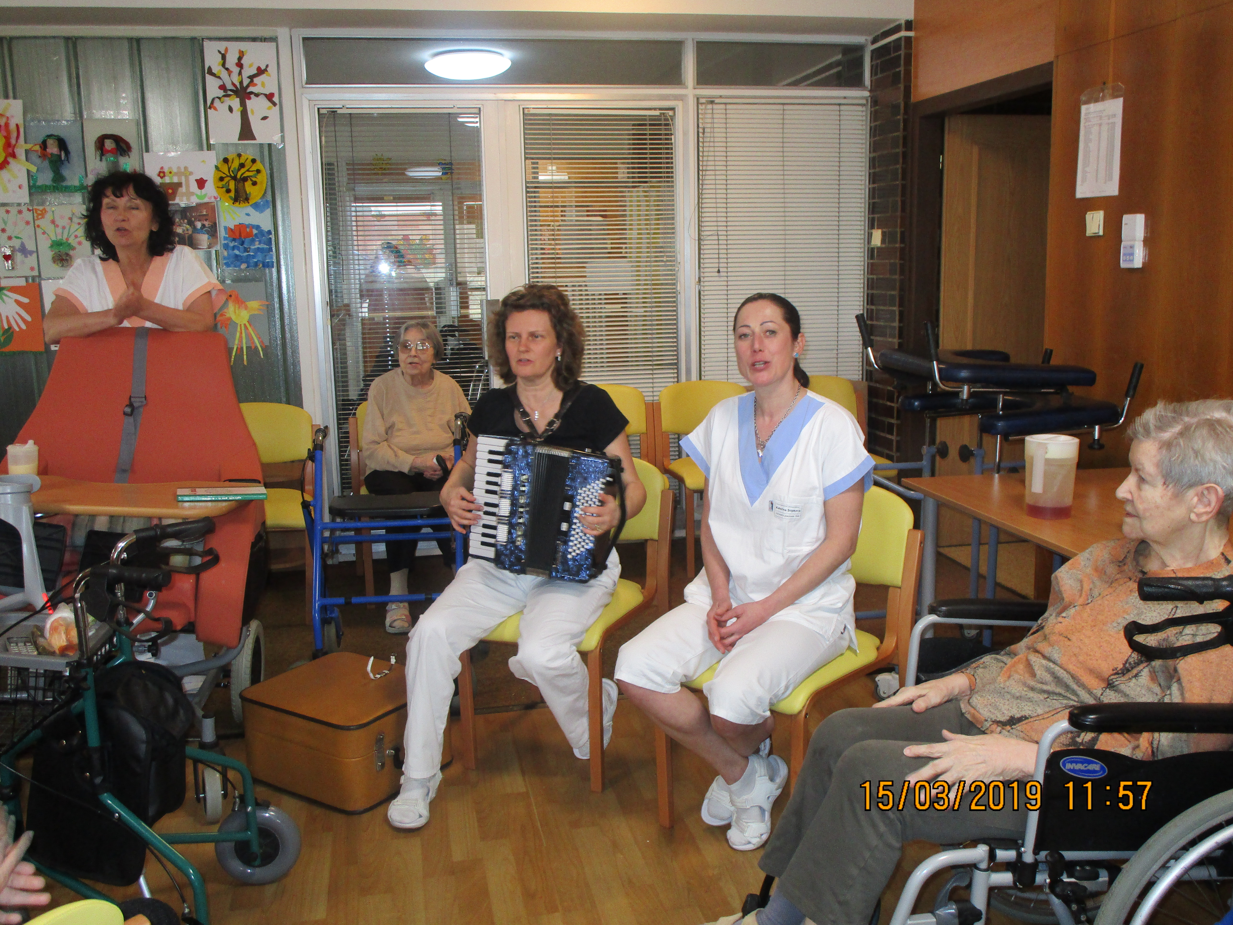- rehabilitační pracovnice pravidelně hrají na harmoniku a zpívají na jednotlivých odděleních