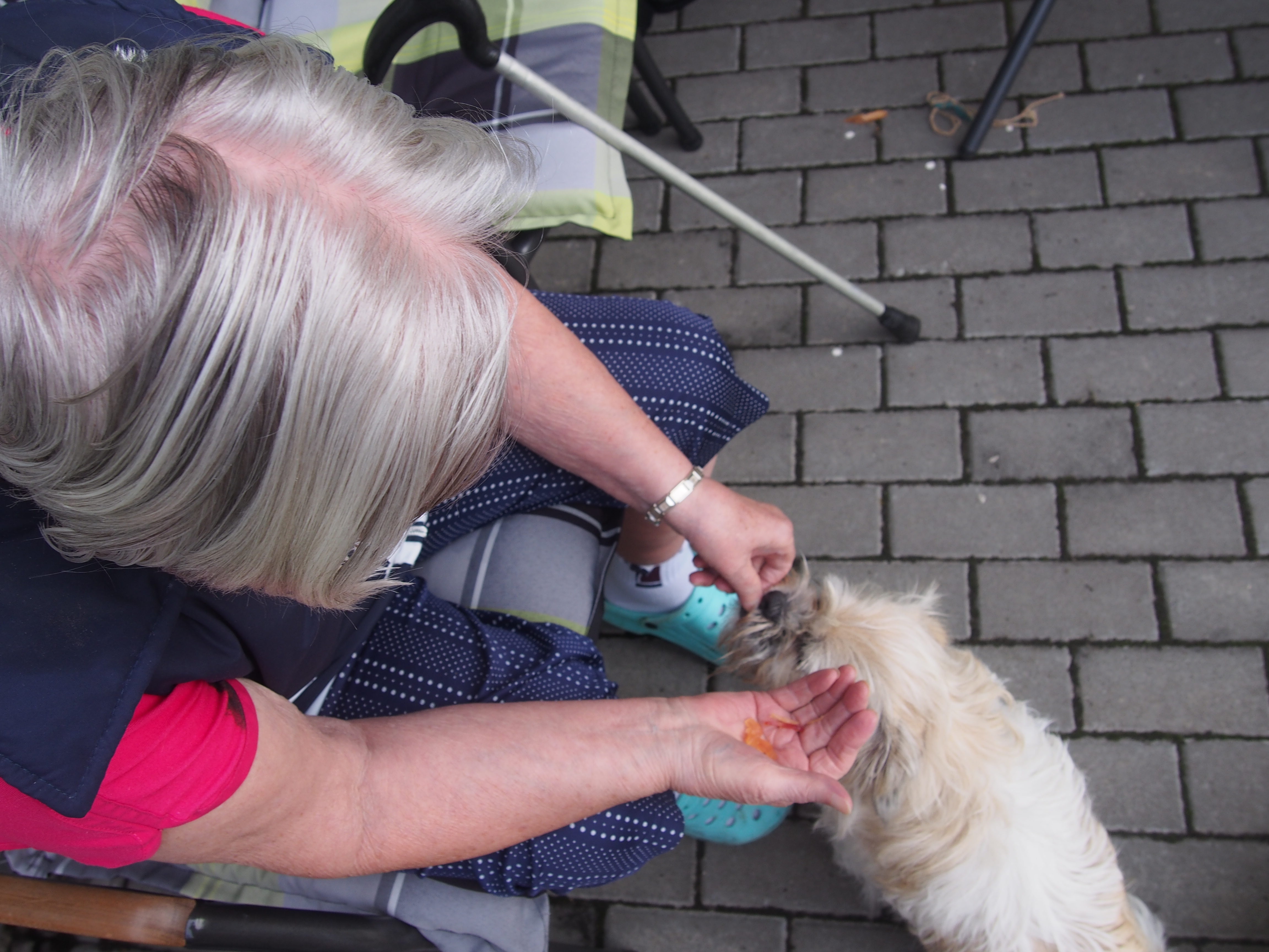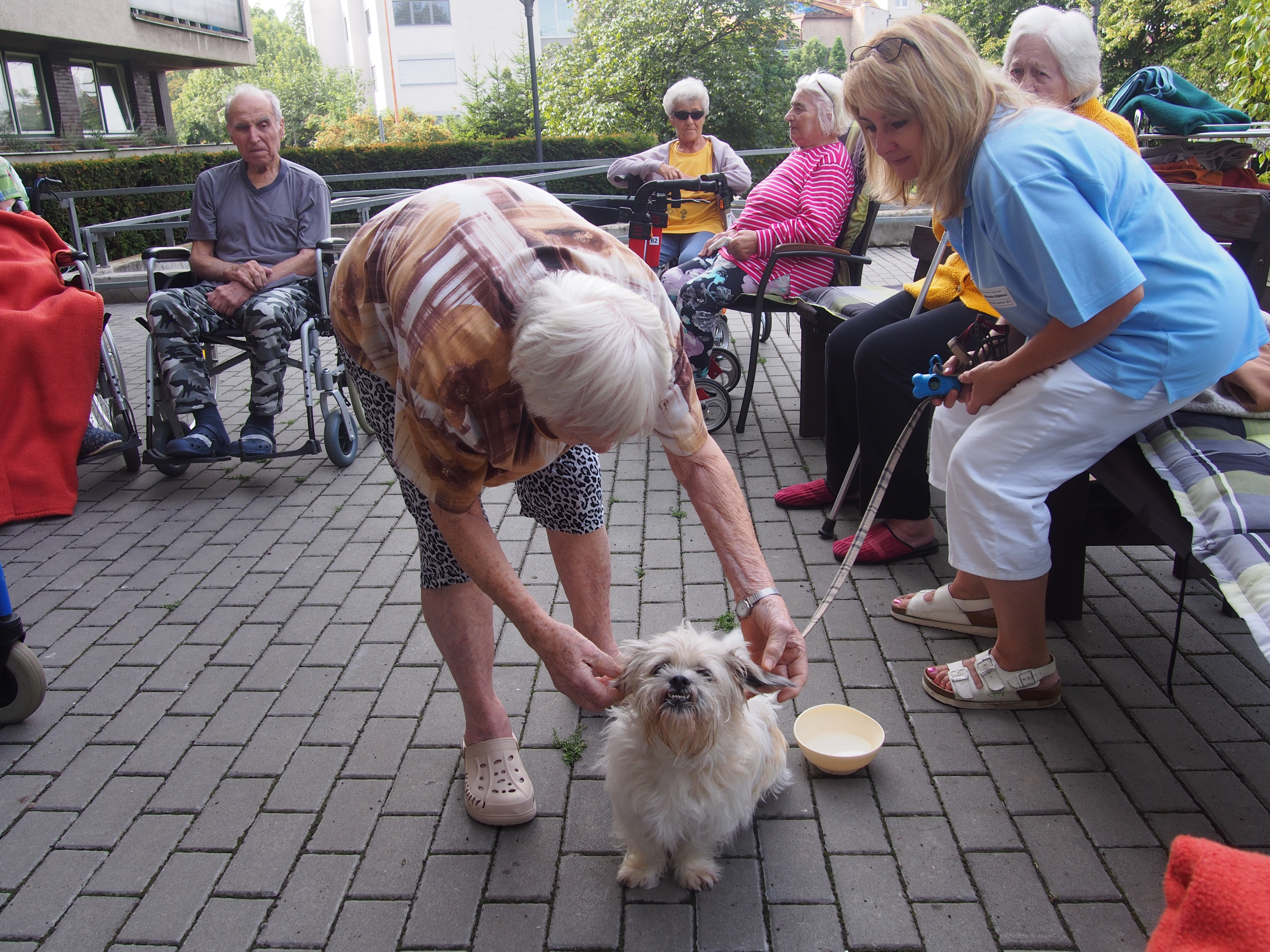 - Při aktivizaci na terase klienty potěšila návštěva pejska.