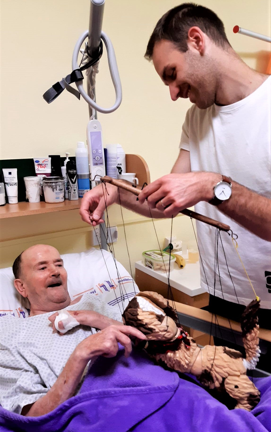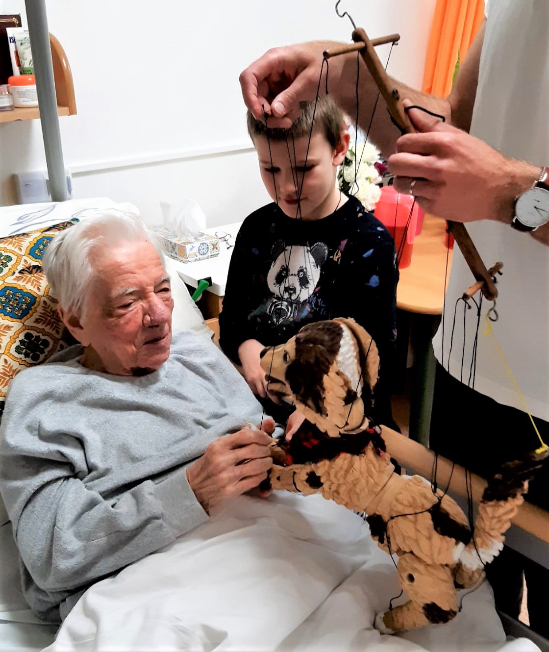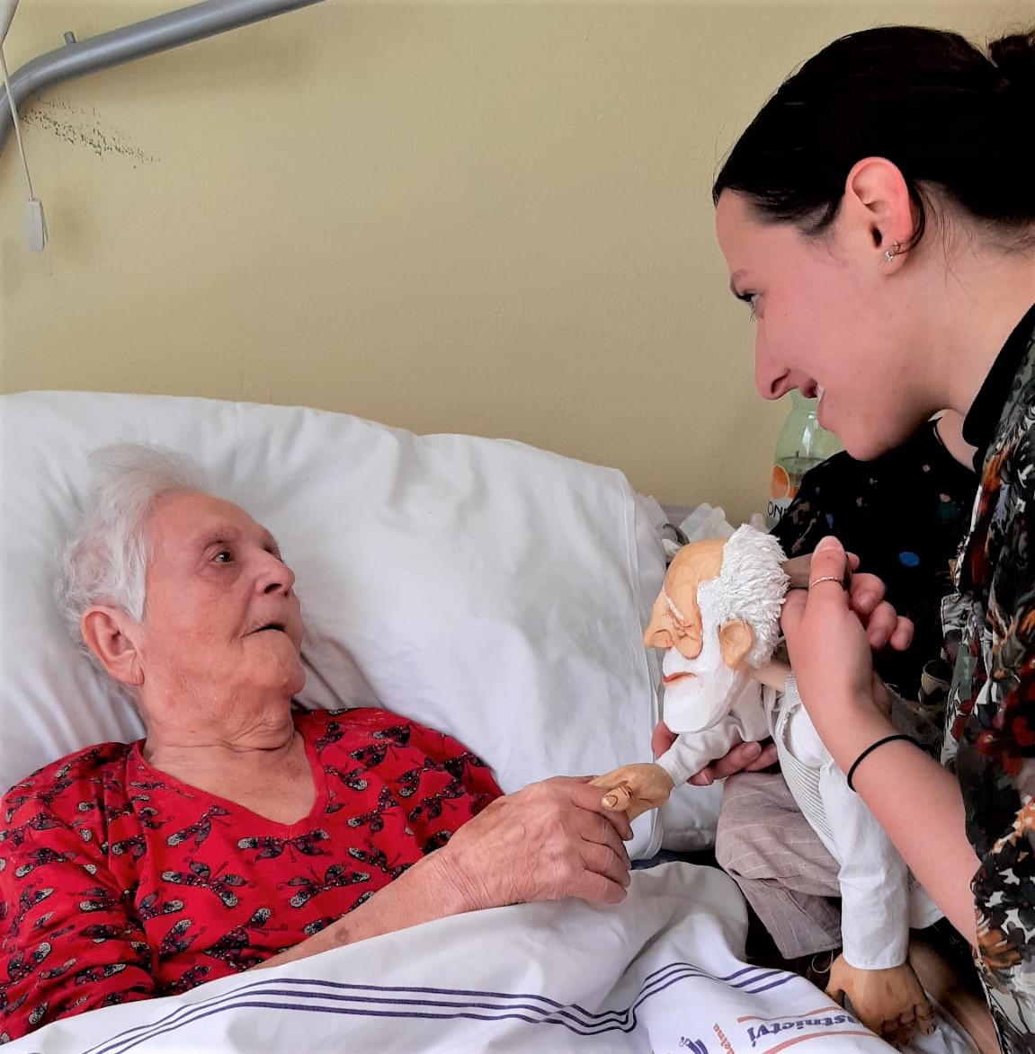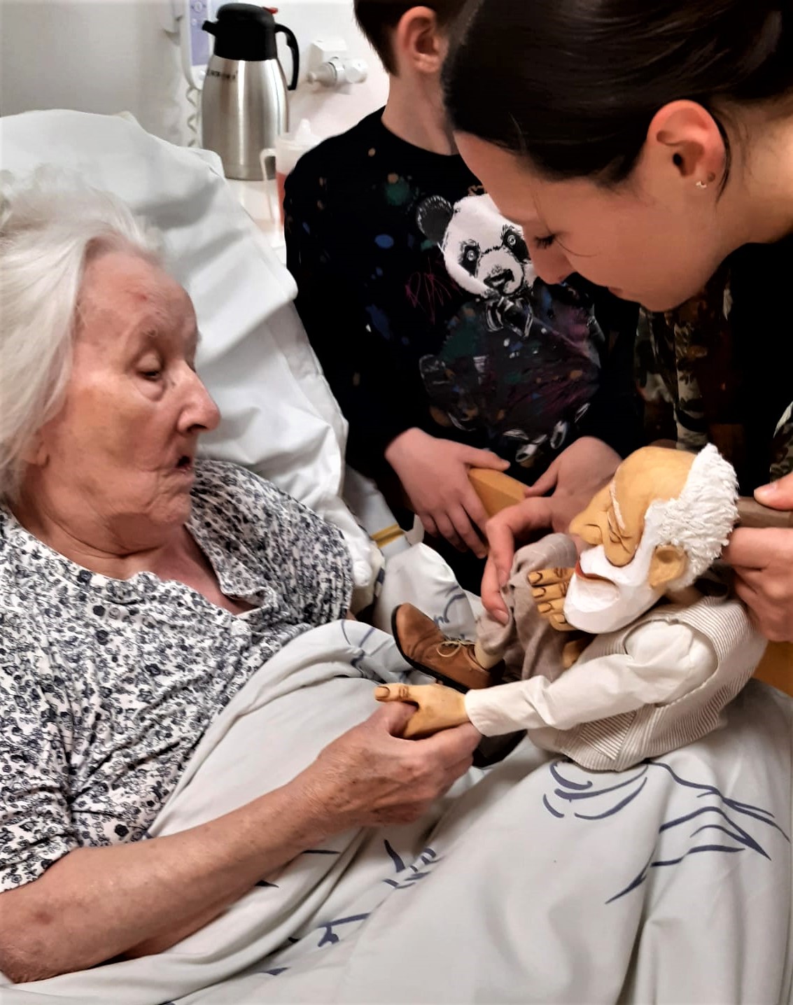 Na pokojích oddělení B1, B2 a B3 probíhala s loutkami individuální aktivizace. Klienti reagovali na dřevěné kamarády a jejich životní příběh s nadšením, úsměvy na tváři klientů toho byly důkazem.