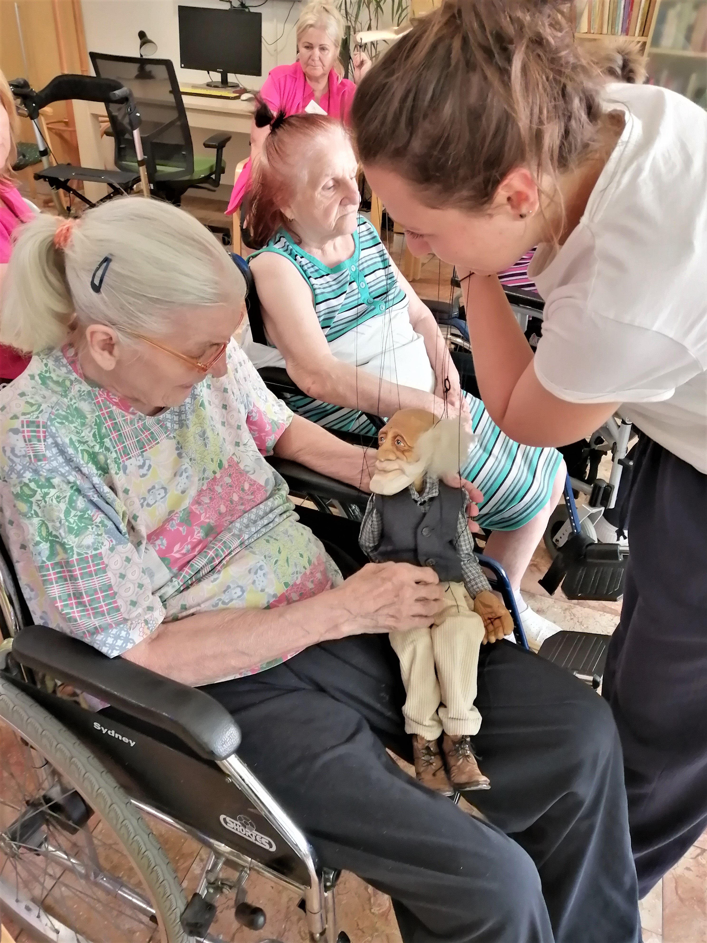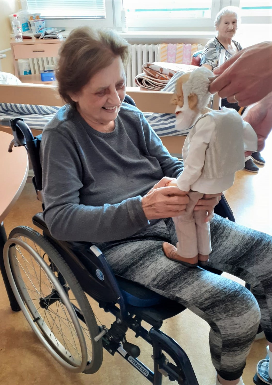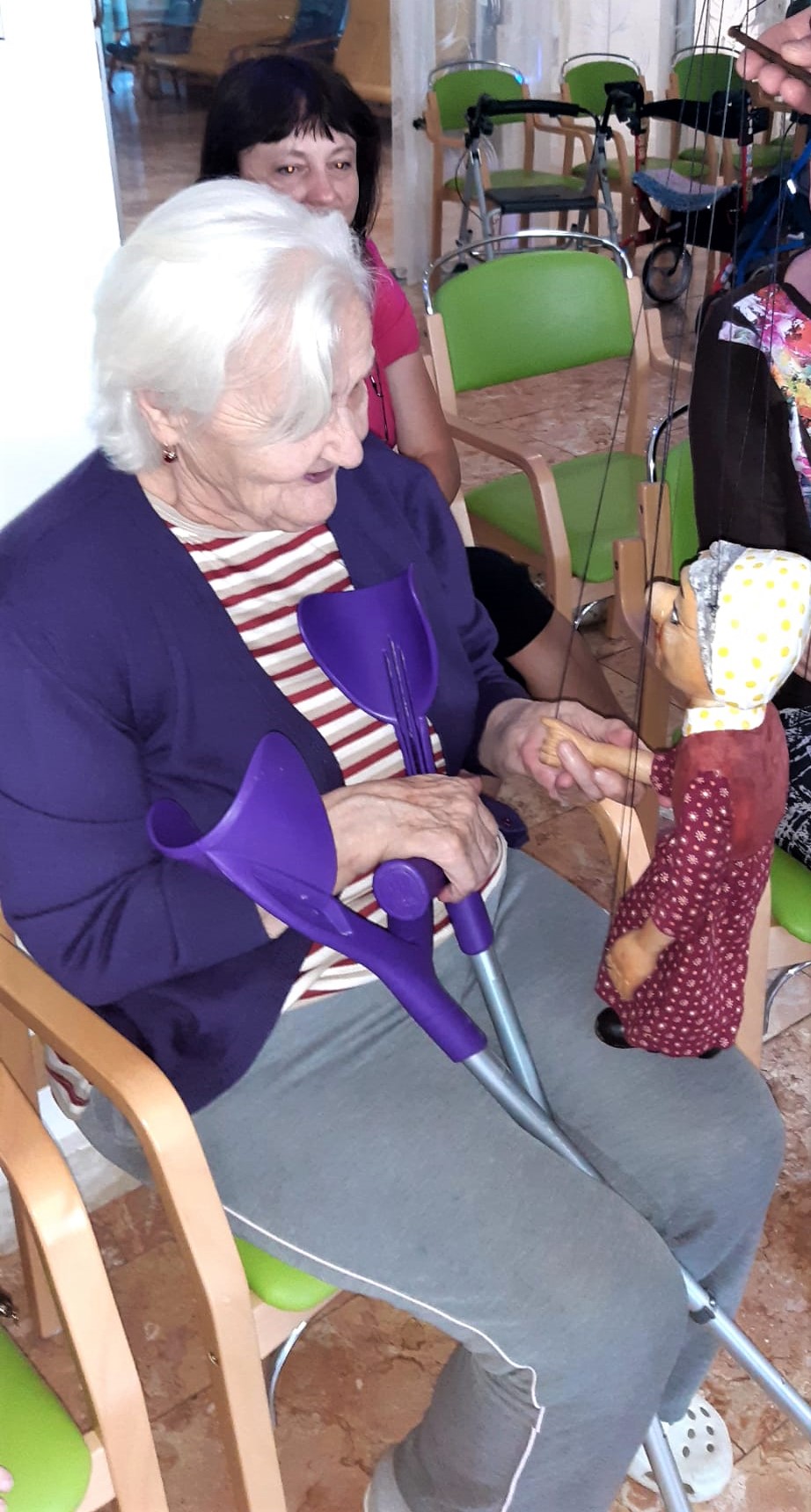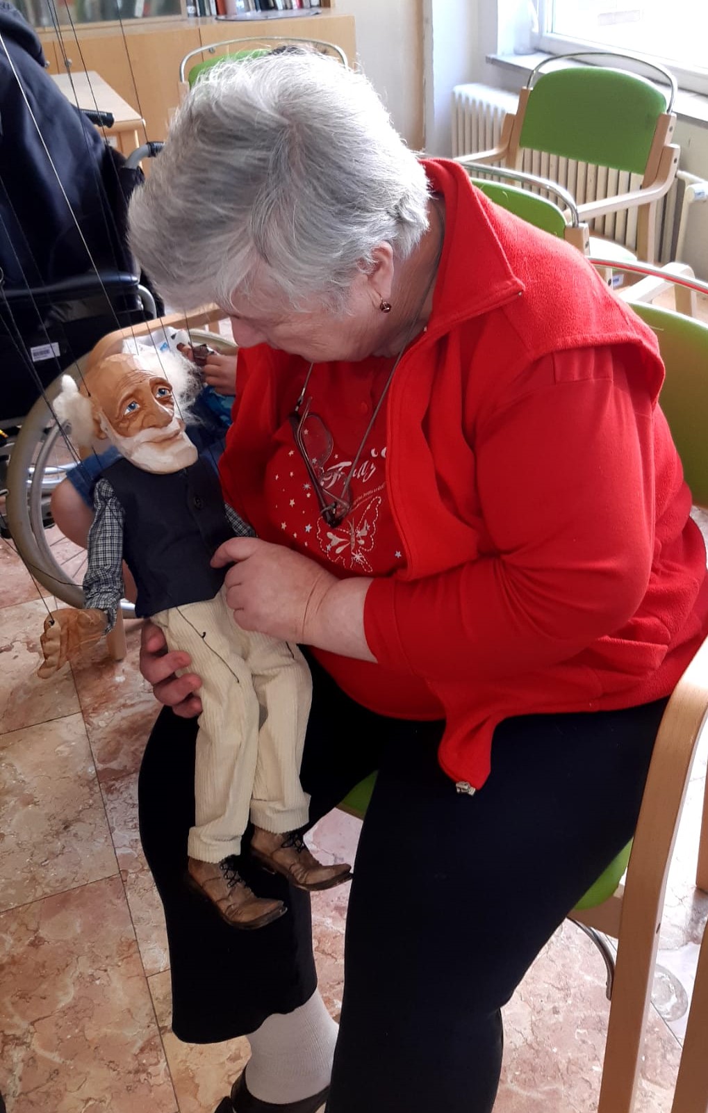 Všichni byli nadšeni loutkami a také tím, že se mohli zapojit do děje příběhu, který babička a dědeček vyprávěli. Po skončení vystoupení proběhla individuální aktivizace s loutkami na pokojích oddělení A2 a oddělení A5.