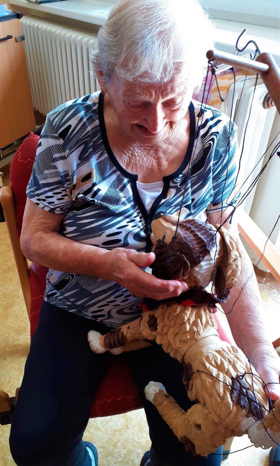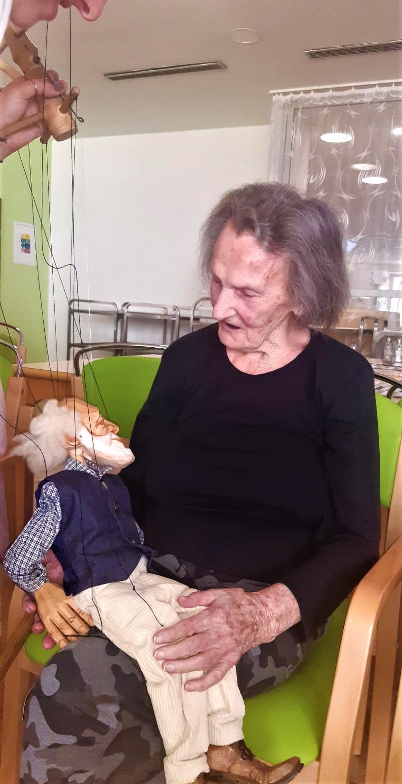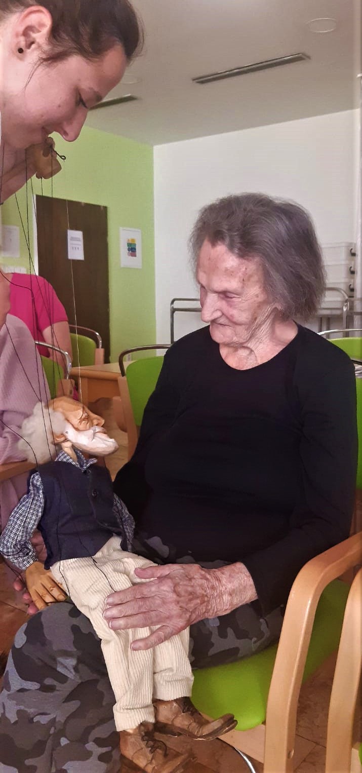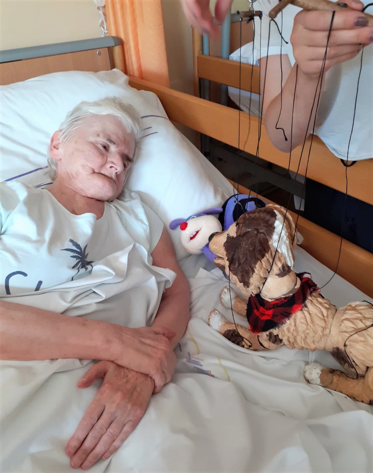Všichni byli nadšeni loutkami a také tím, že se mohli zapojit do děje příběhu, který babička a dědeček vyprávěli. Po skončení vystoupení proběhla individuální aktivizace s loutkami na pokojích oddělení A2 a oddělení A5.