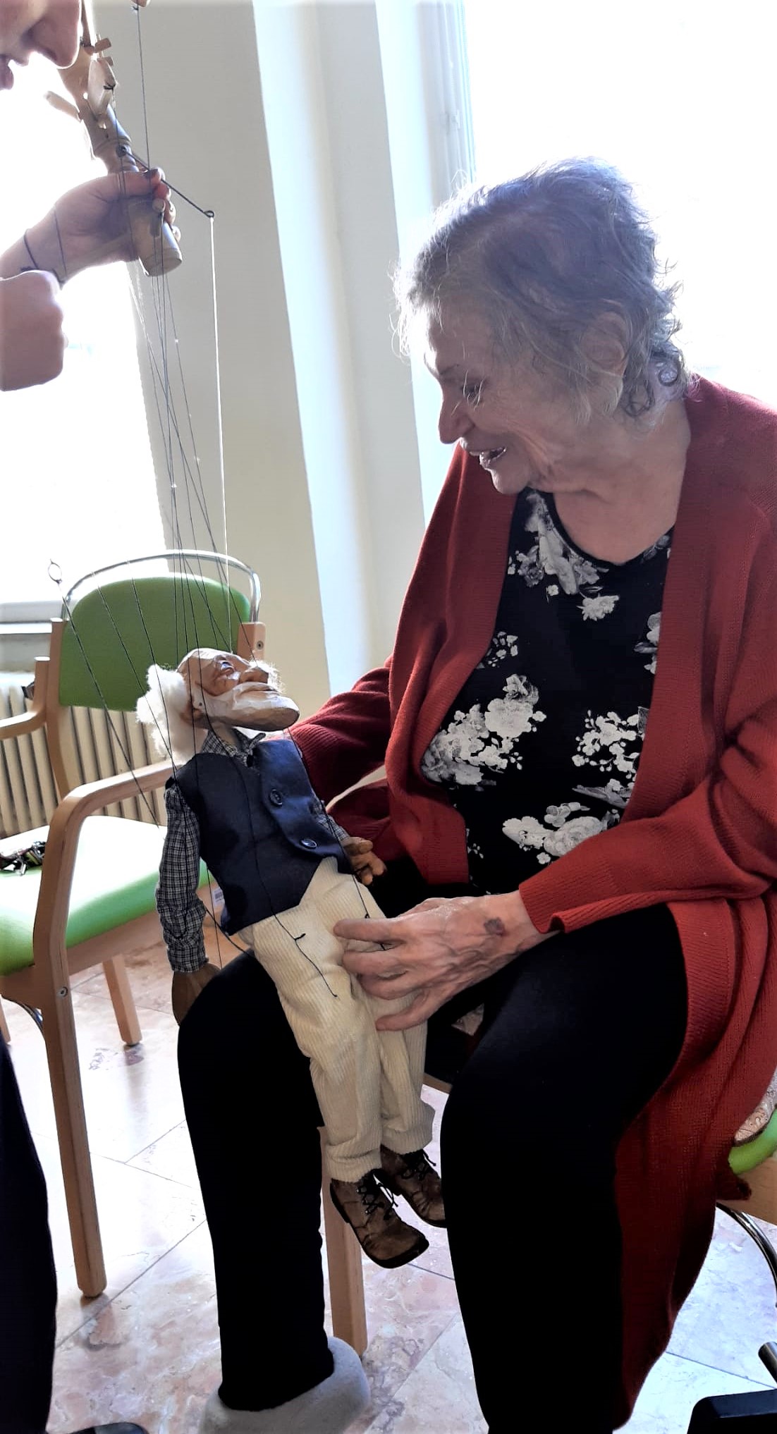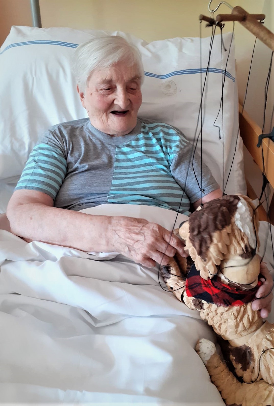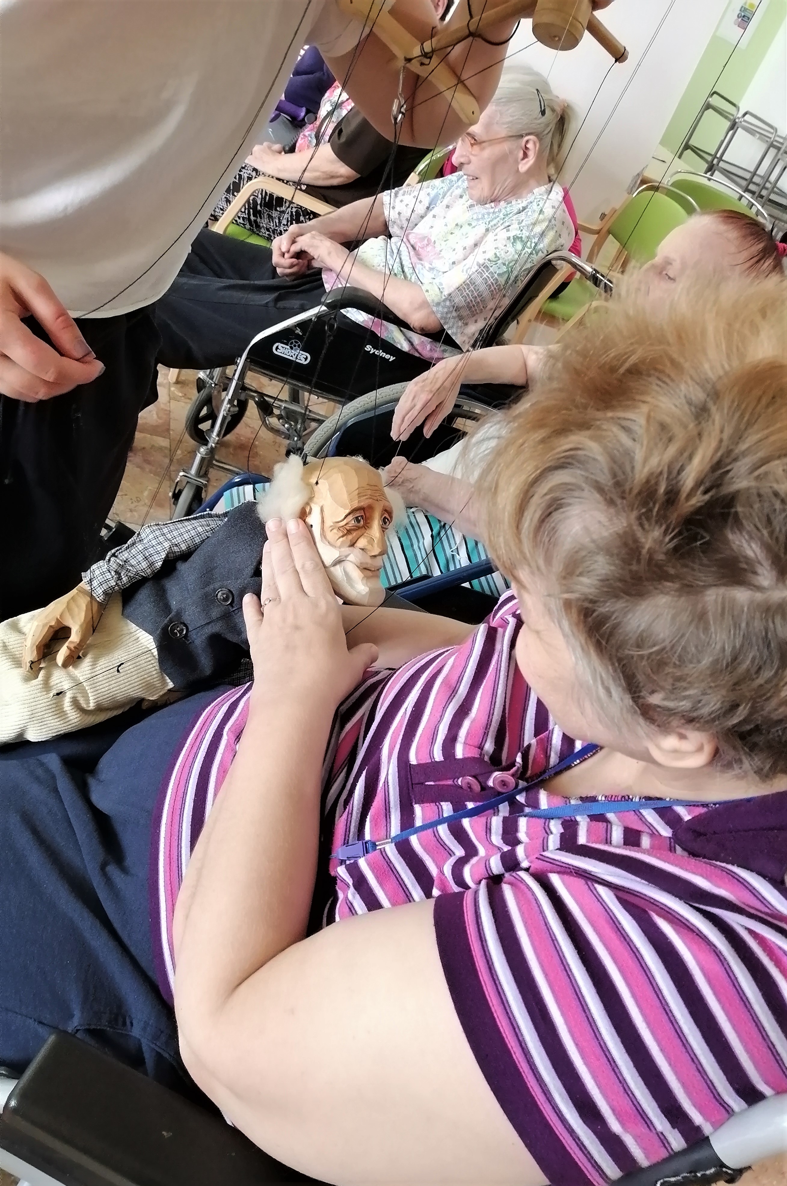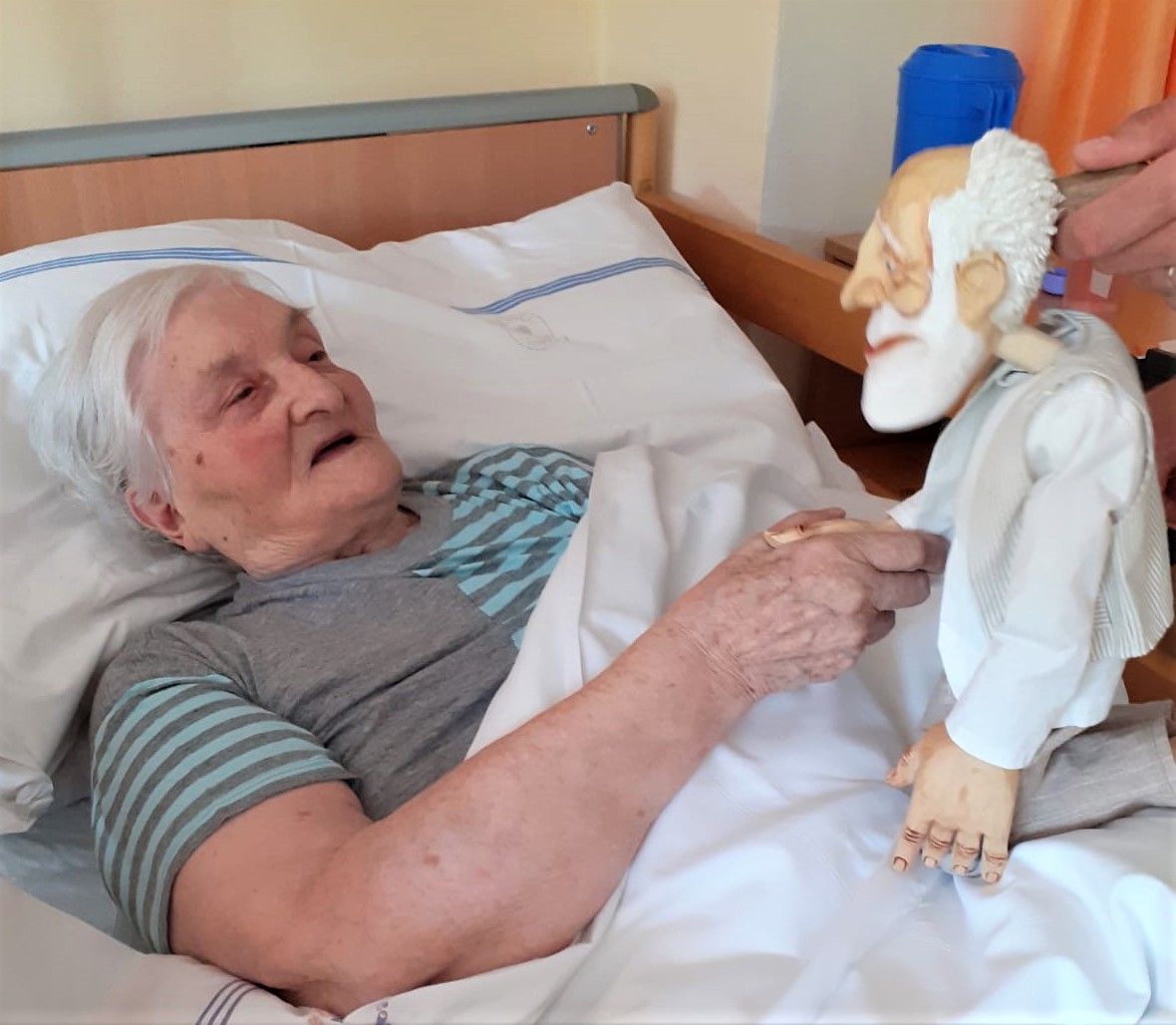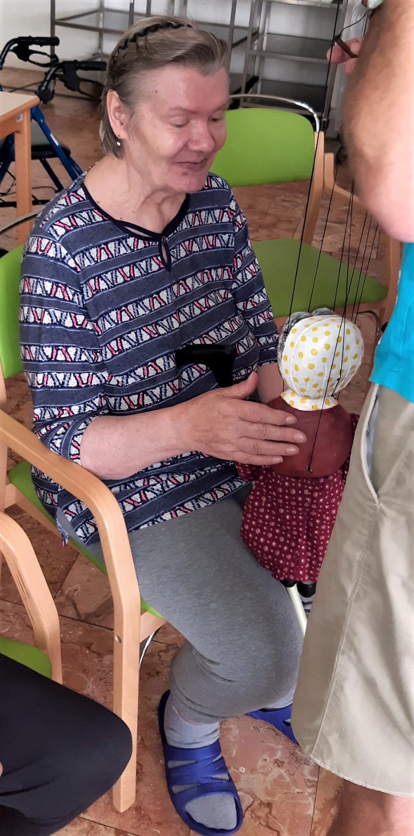 Všichni byli nadšeni loutkami a také tím, že se mohli zapojit do děje příběhu, který babička a dědeček vyprávěli. Po skončení vystoupení proběhla individuální aktivizace s loutkami na pokojích oddělení A2 a oddělení A5.