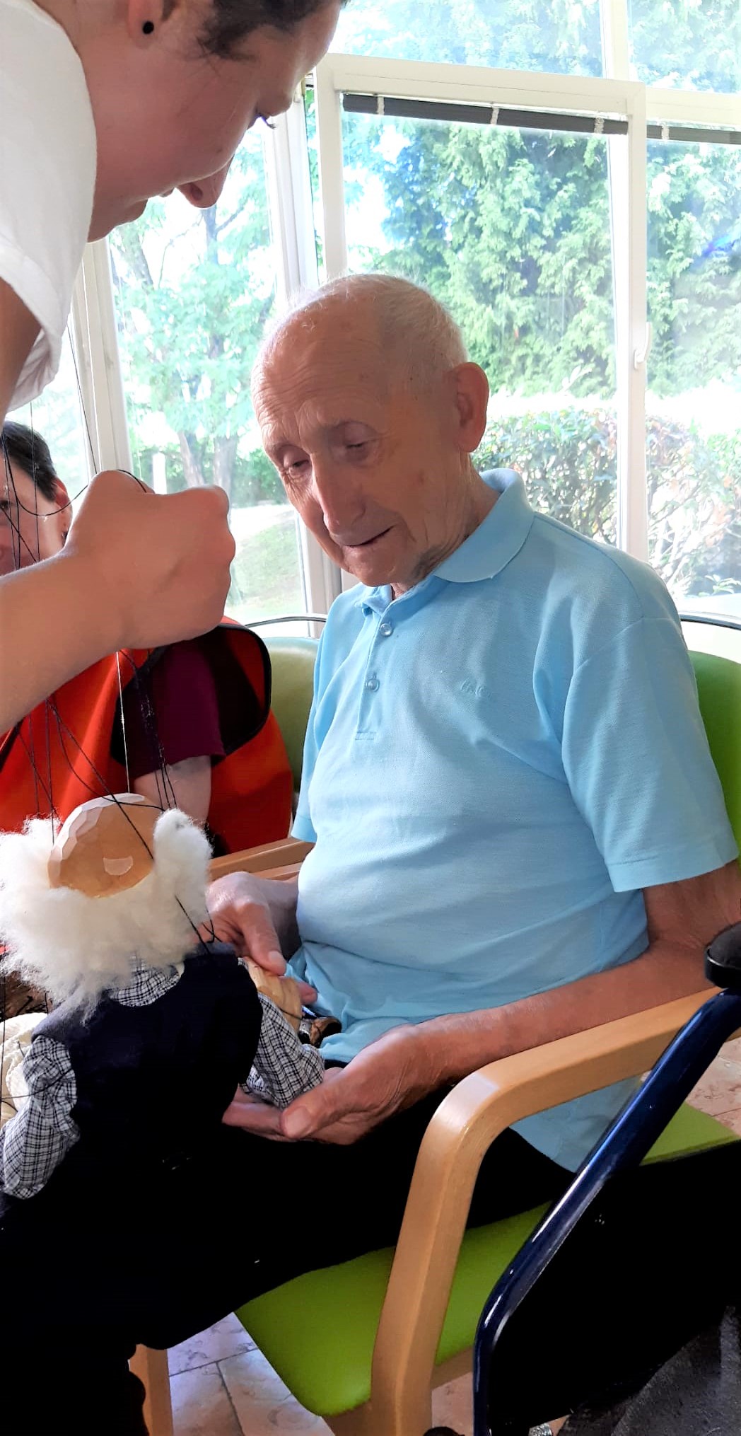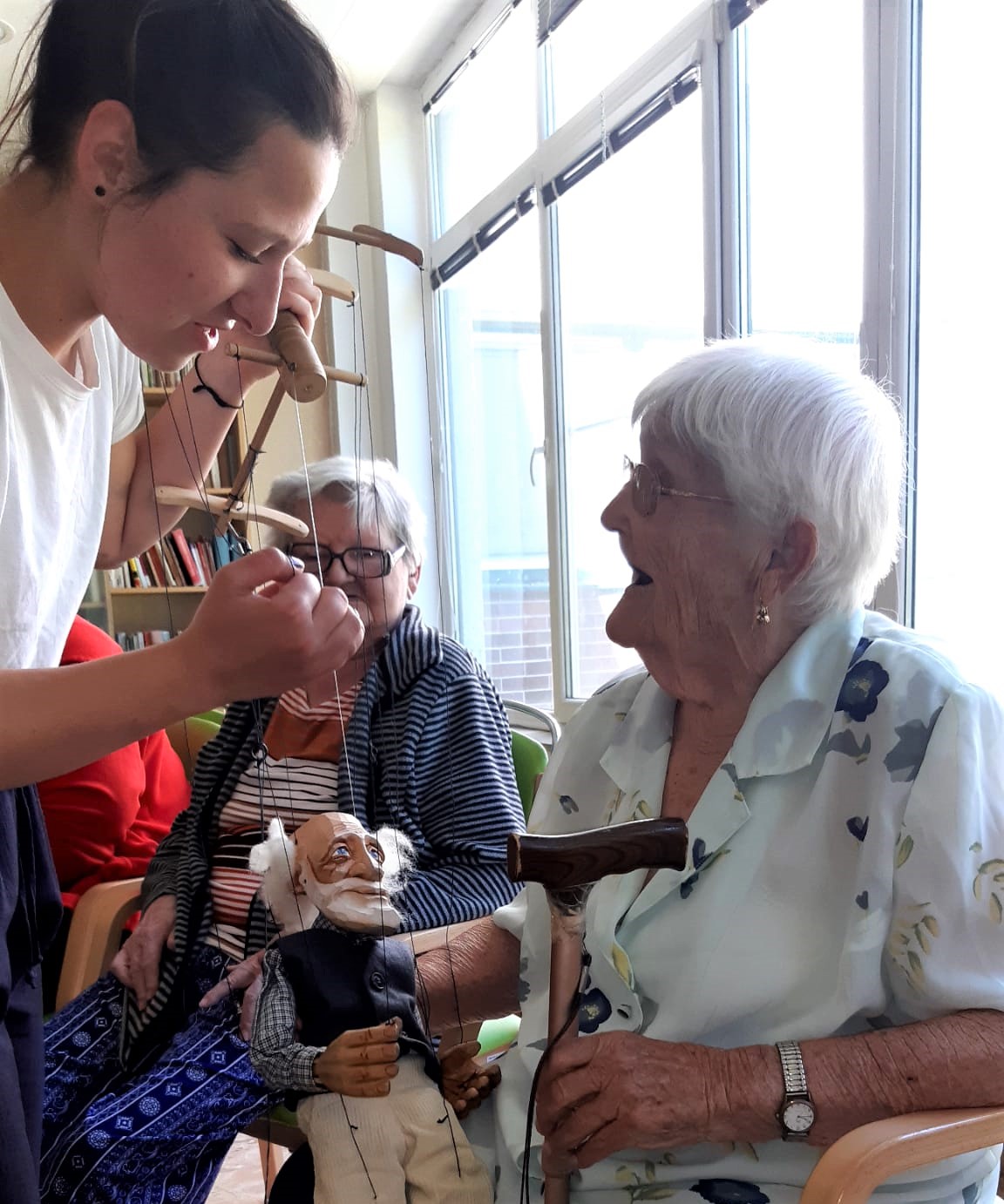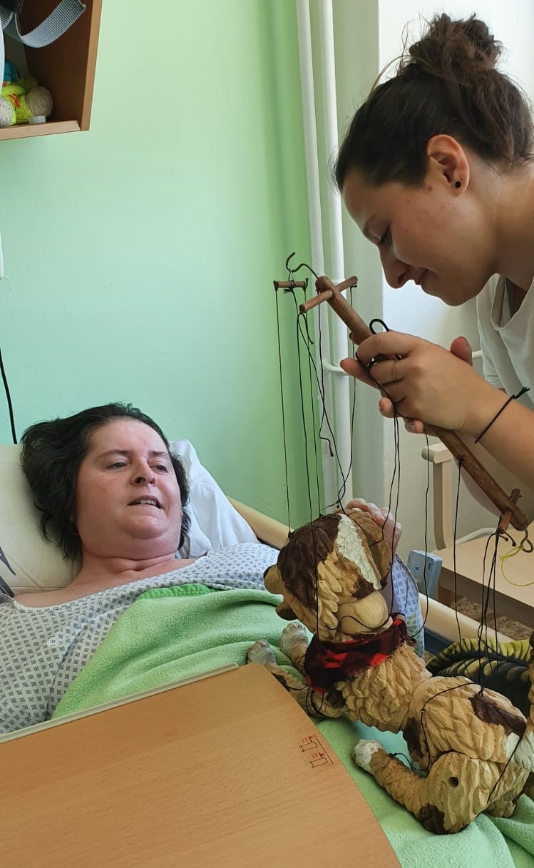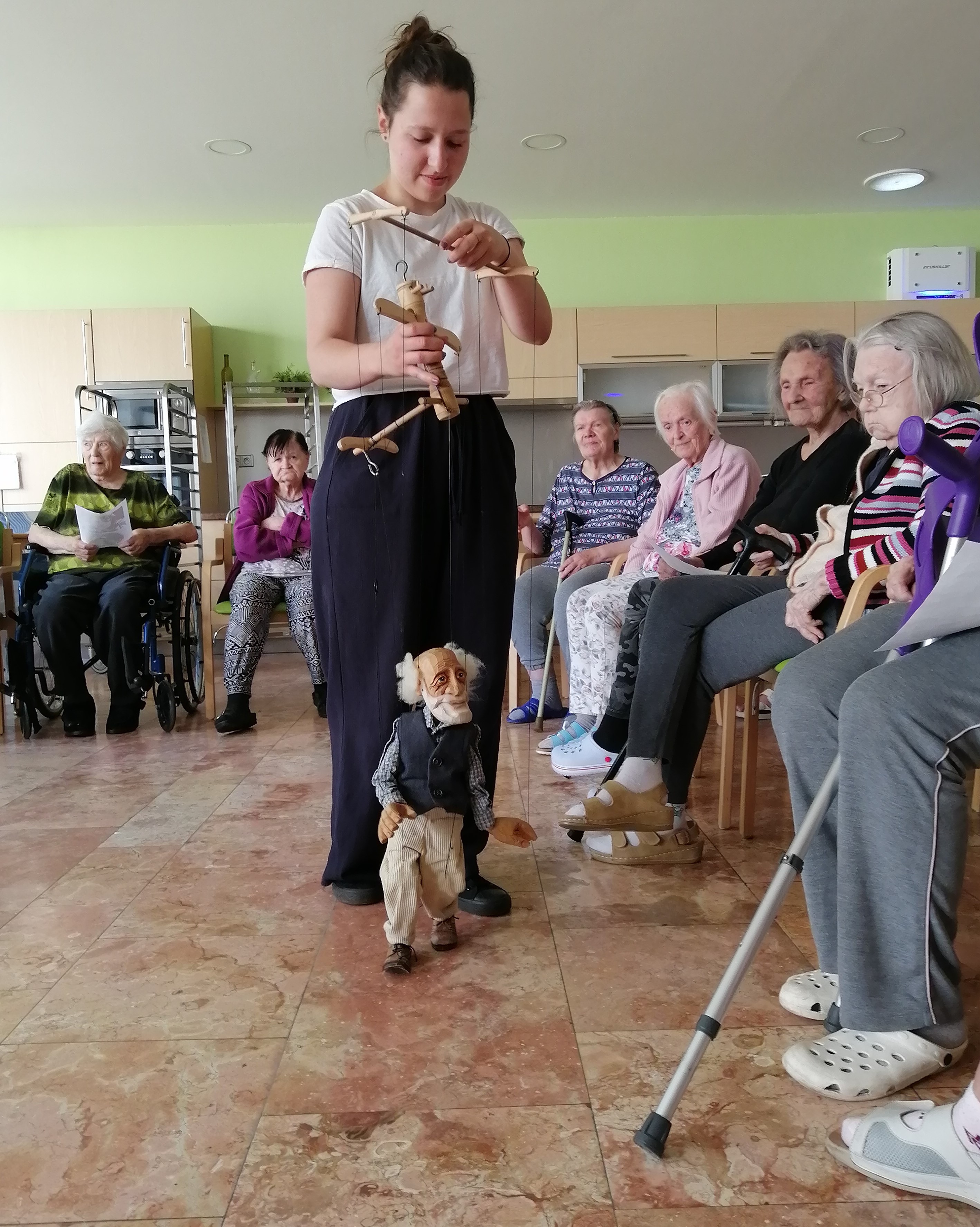 Všichni byli nadšeni loutkami a také tím, že se mohli zapojit do děje příběhu, který babička a dědeček vyprávěli. Po skončení vystoupení proběhla individuální aktivizace s loutkami na pokojích oddělení A2 a oddělení A5.