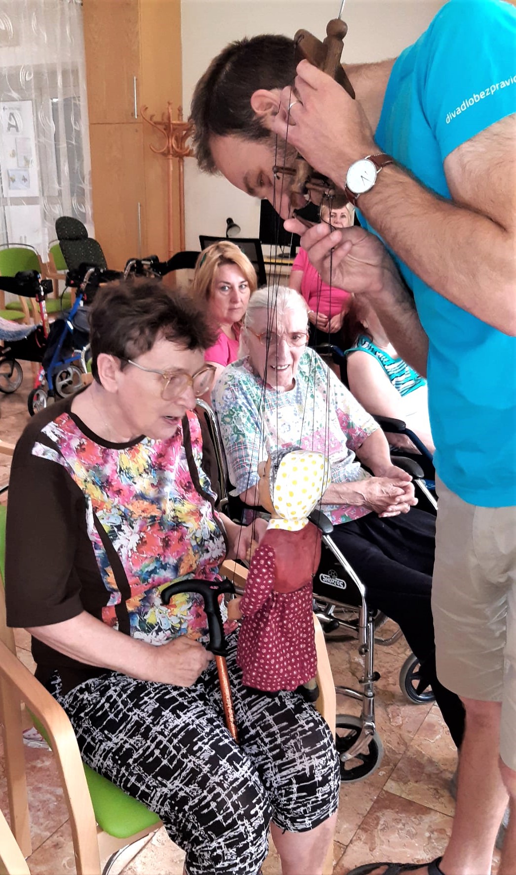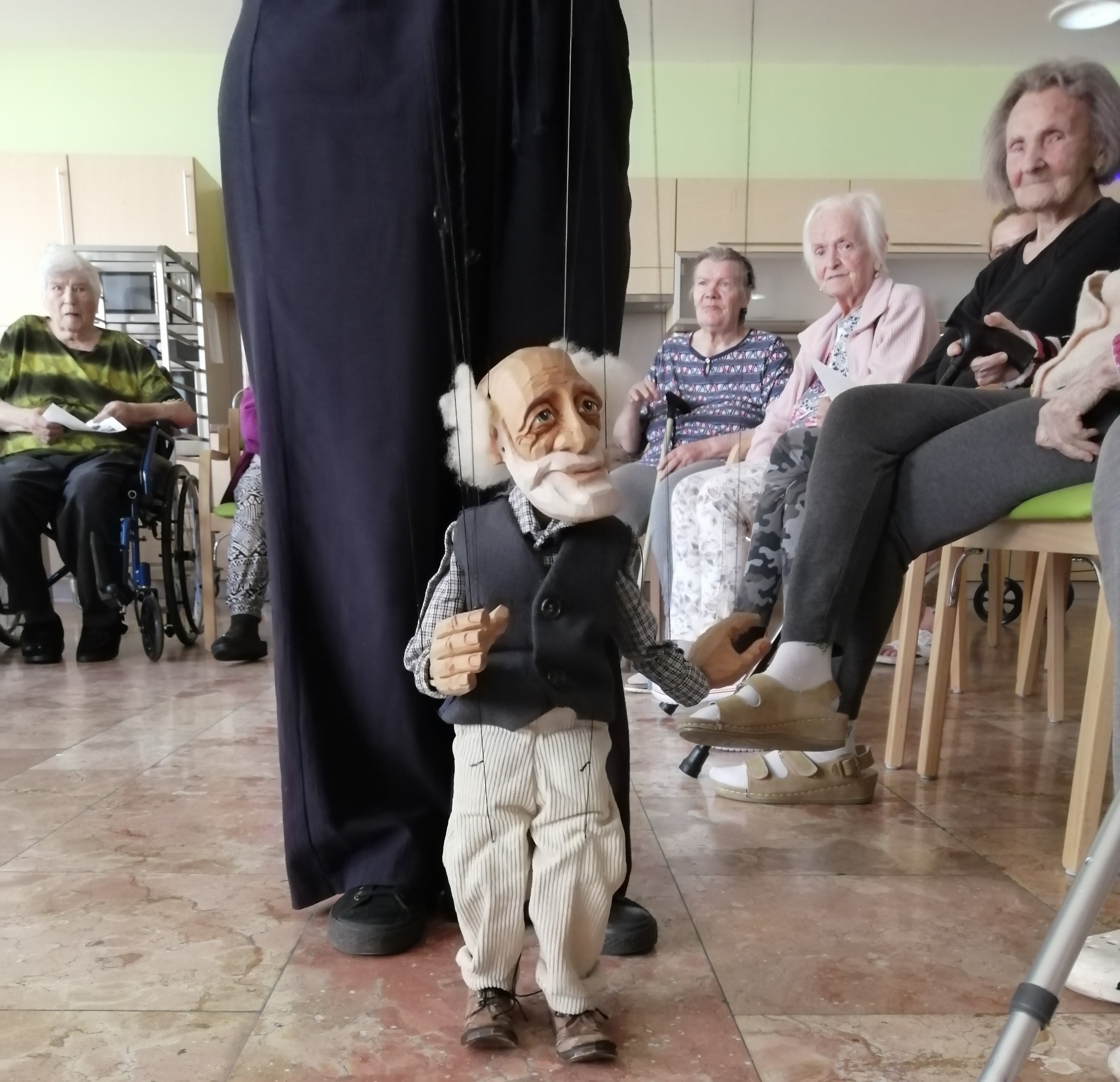 Již podruhé během dvou měsíců nás navštívilo Divadlo bez pravidel, které má u našich klientů vždy velký úspěch. Tentokrát s sebou přivezlo loutky dědečka Josefa a babičku Růženku, které se s klienty přivítaly a vyprávěly příběh.