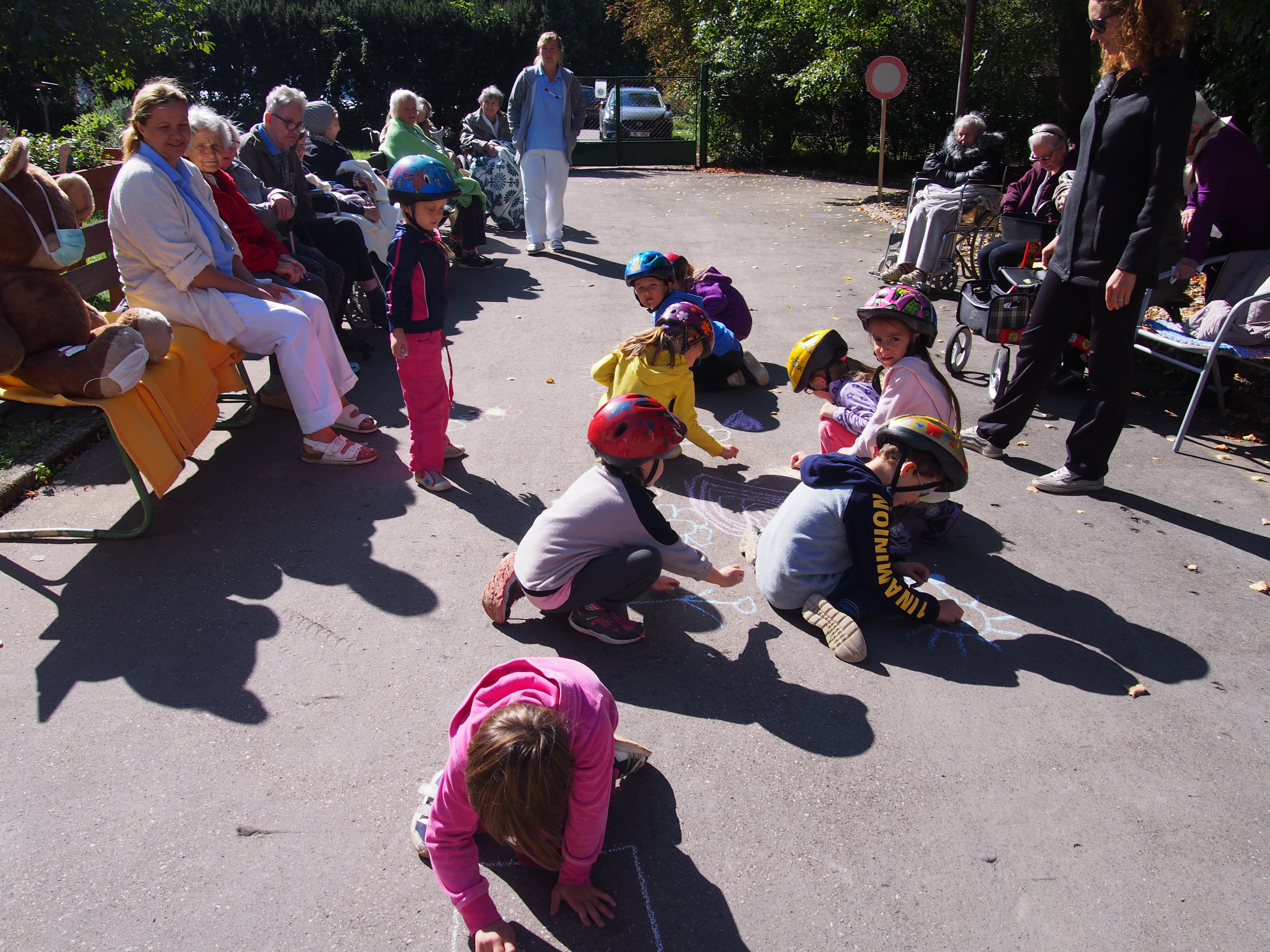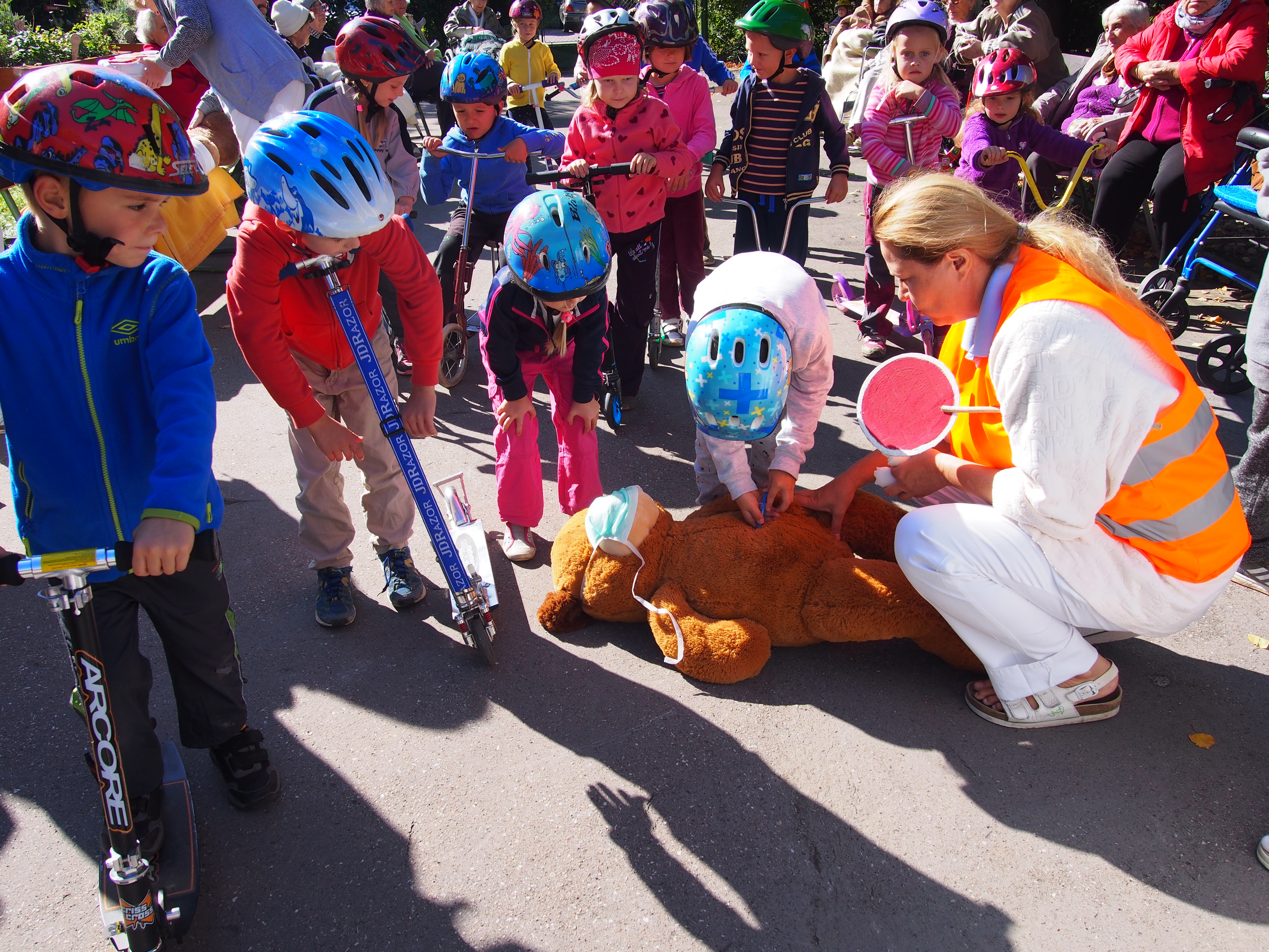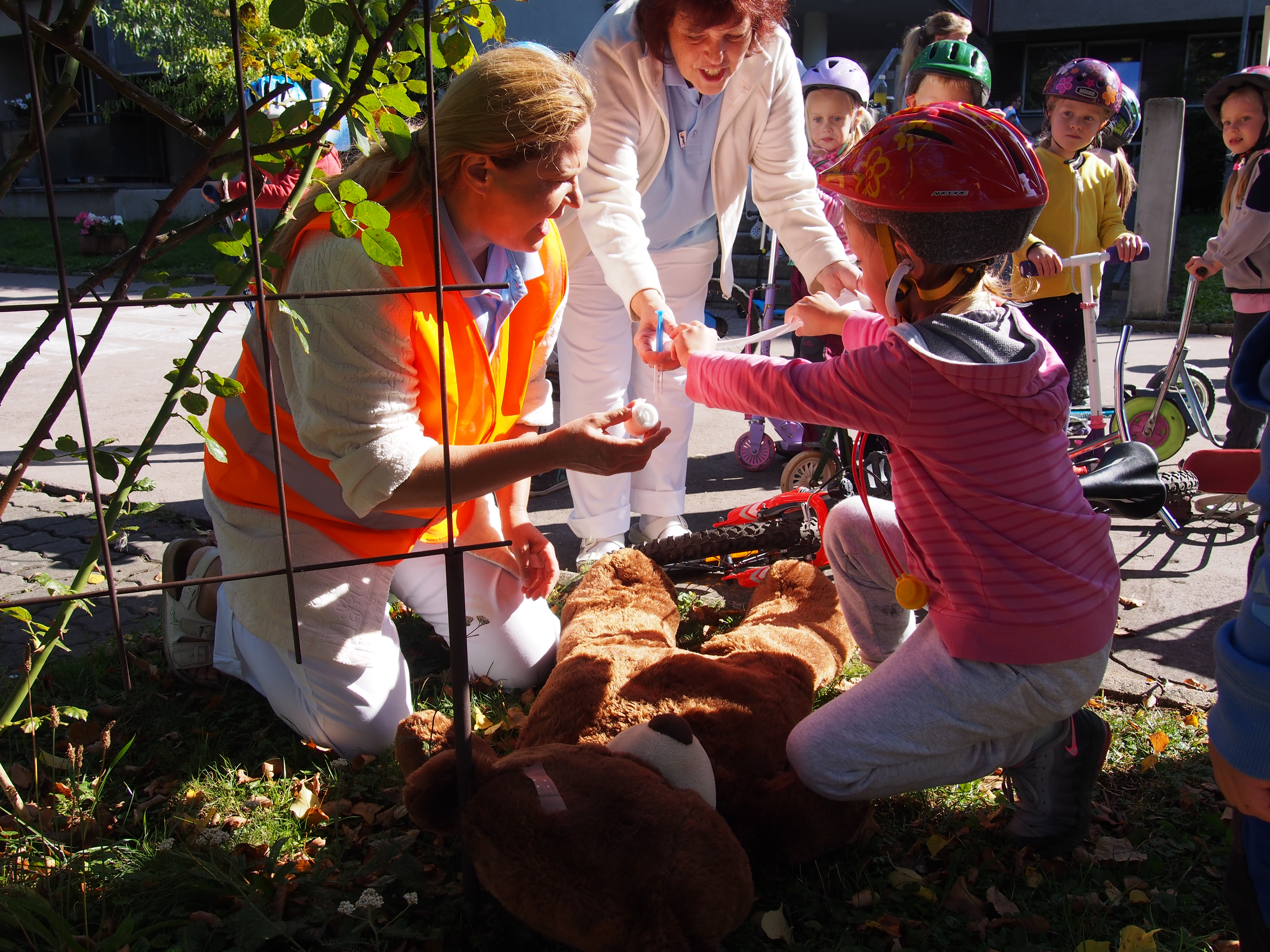 Dopravní hřiště s děti z MŠ Šaumannova v zahradě.