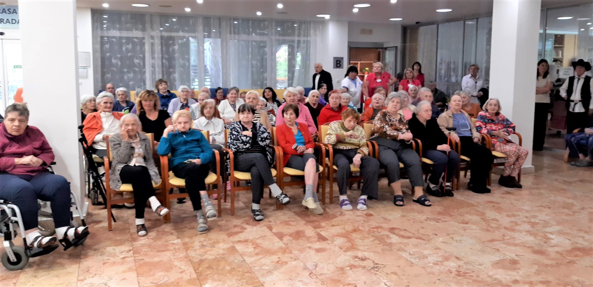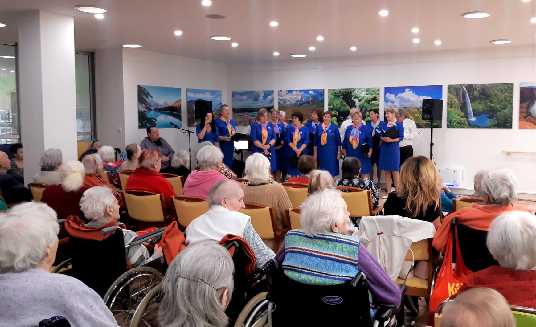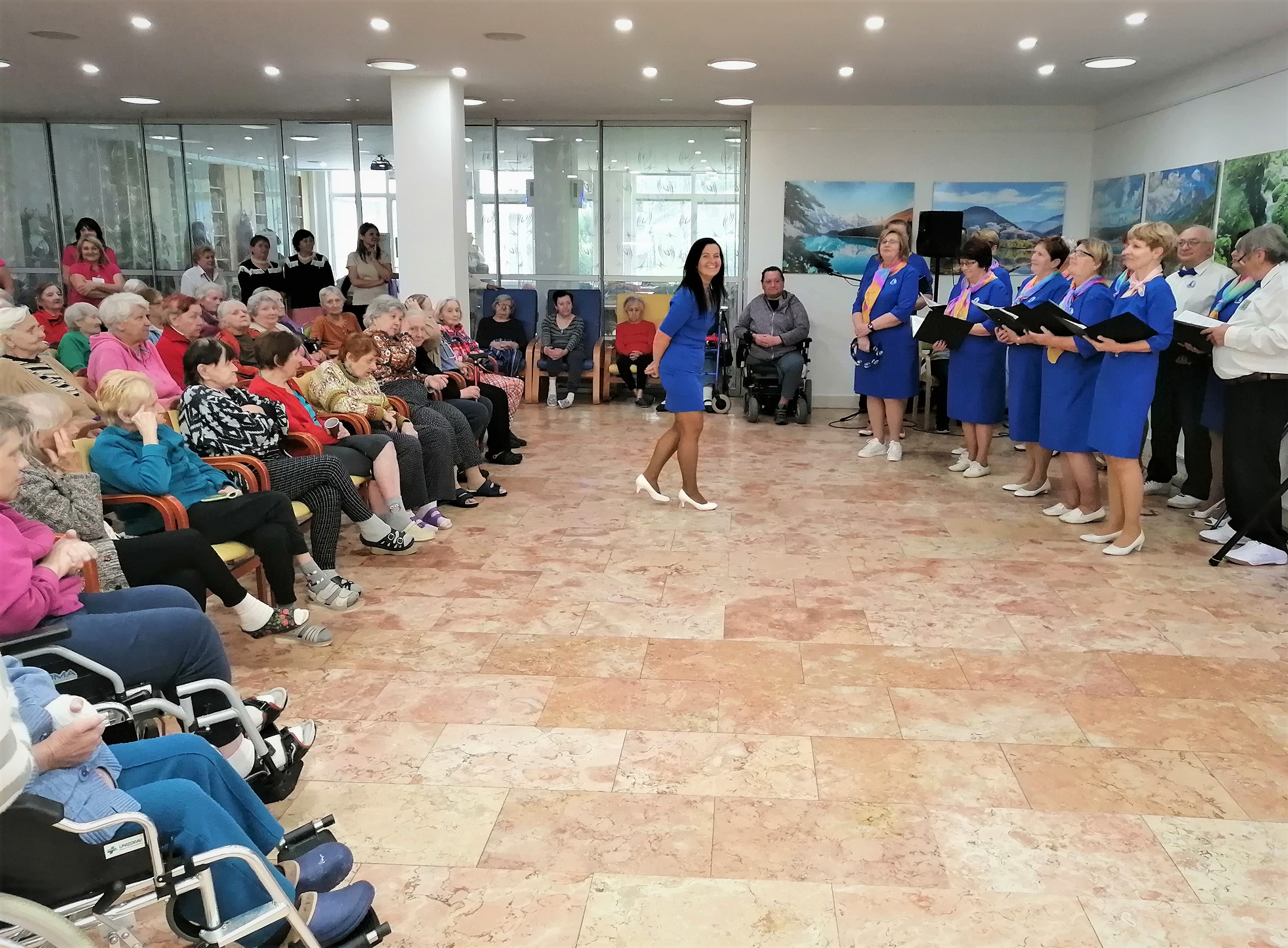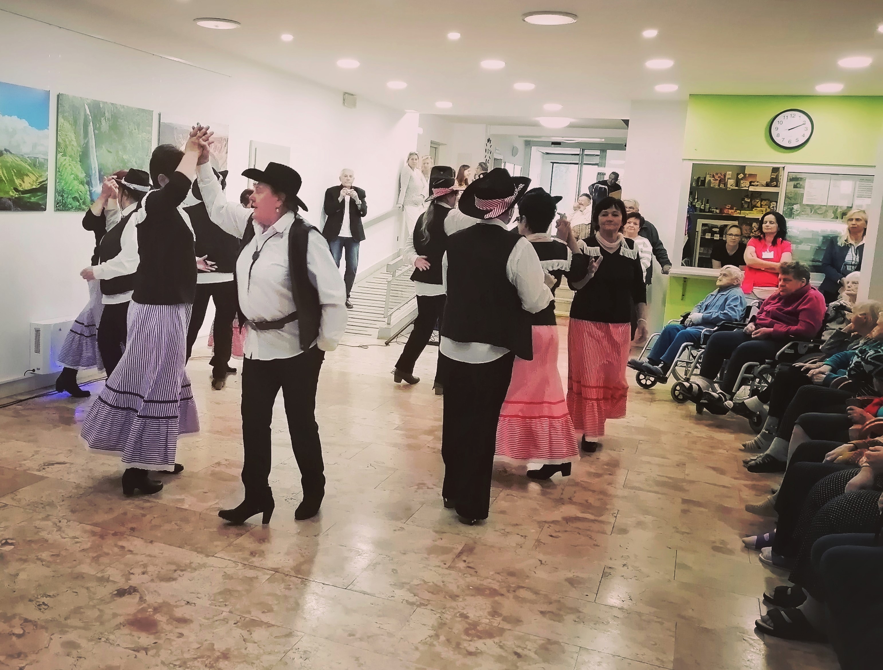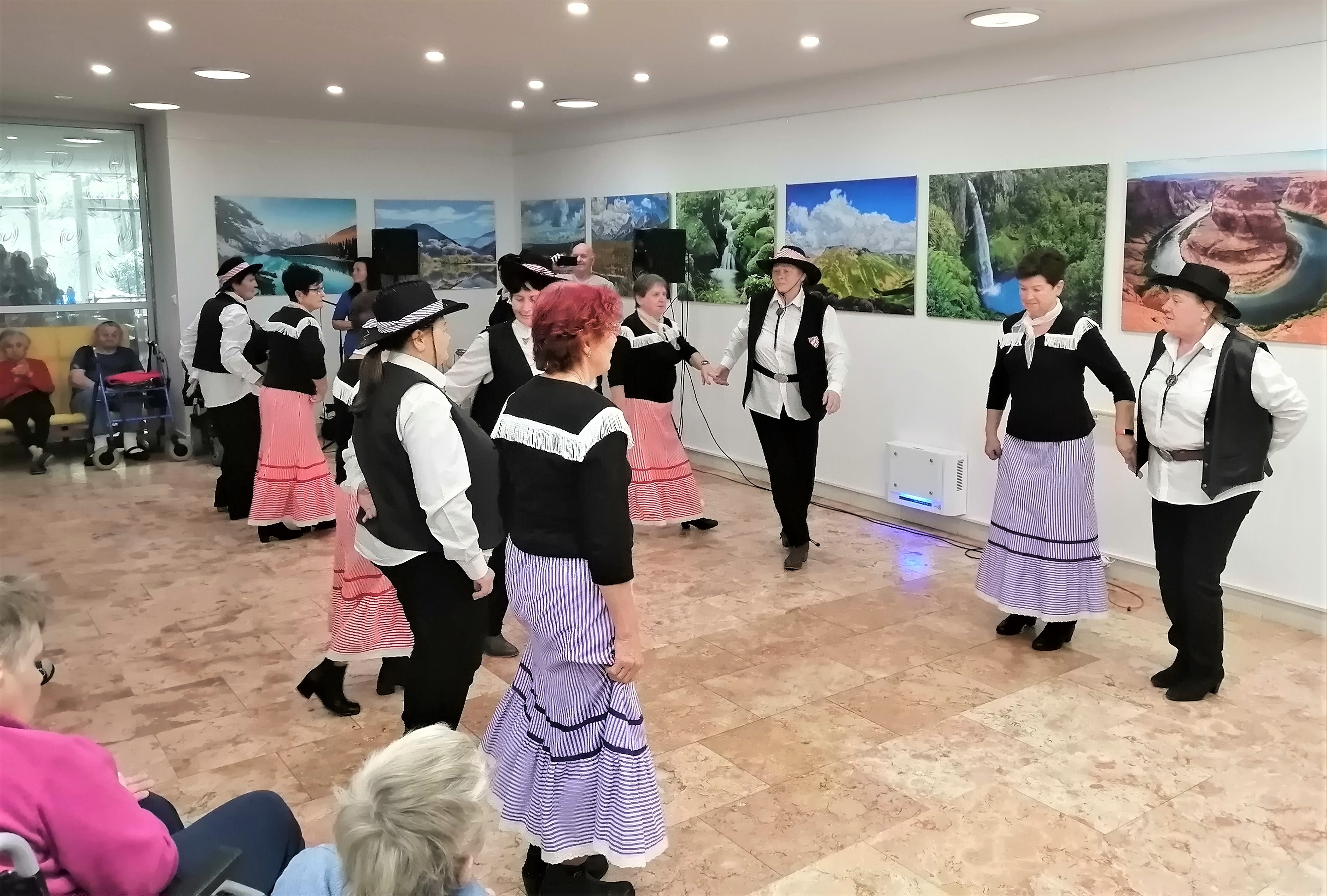 Čtvrteční odpoledne 13.10.2022 prožili naši klienti a personál nádherné emoce z vystoupení pěveckého souboru Duhový přístav a tanečního kroužku Country tance. Snad se na mě děvčata a pánové nebudou zlobit, ale cítím, že tato informace je důležitá. Členové souboru a tanečního kroužku byli v seniorském věku. Ukázali nám, že když se něčemu člověk věnuje s radostí, nadšením a láskou, tak nezáleží na tom, kolik mu je let. Pocity, které jsme všichni z vystoupení zažili, jsou slovy nepopsatelné.