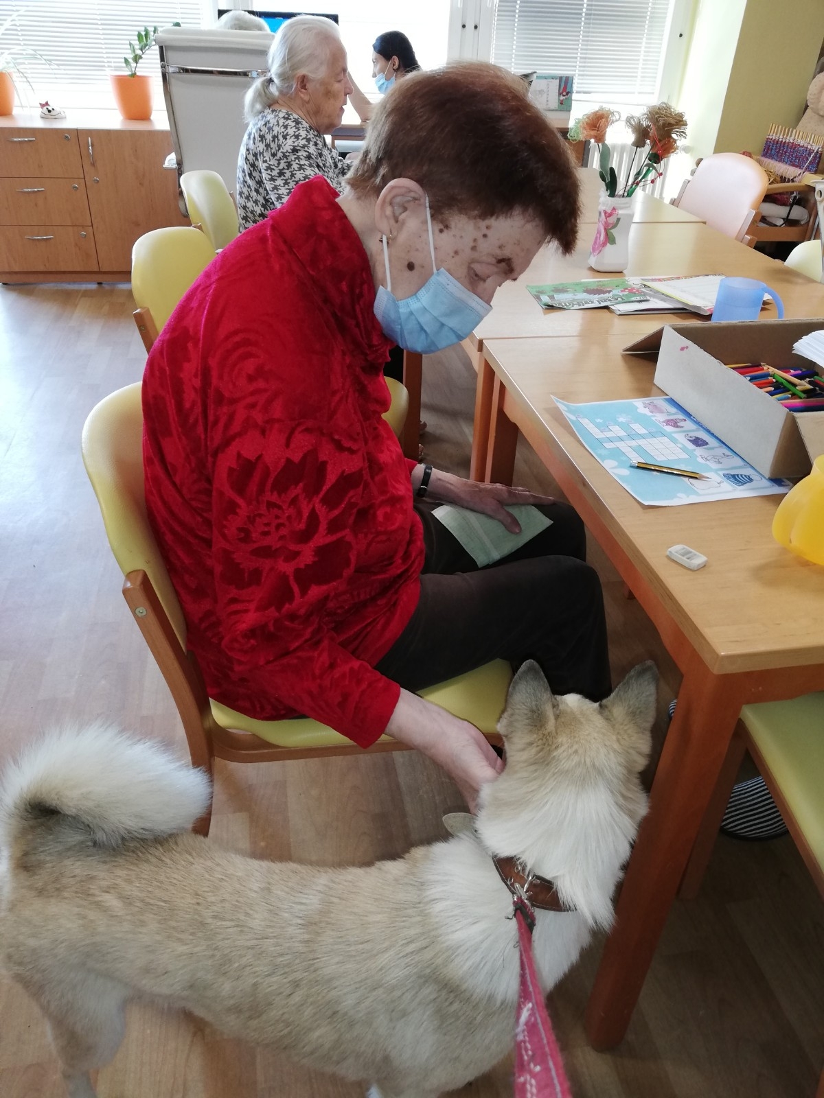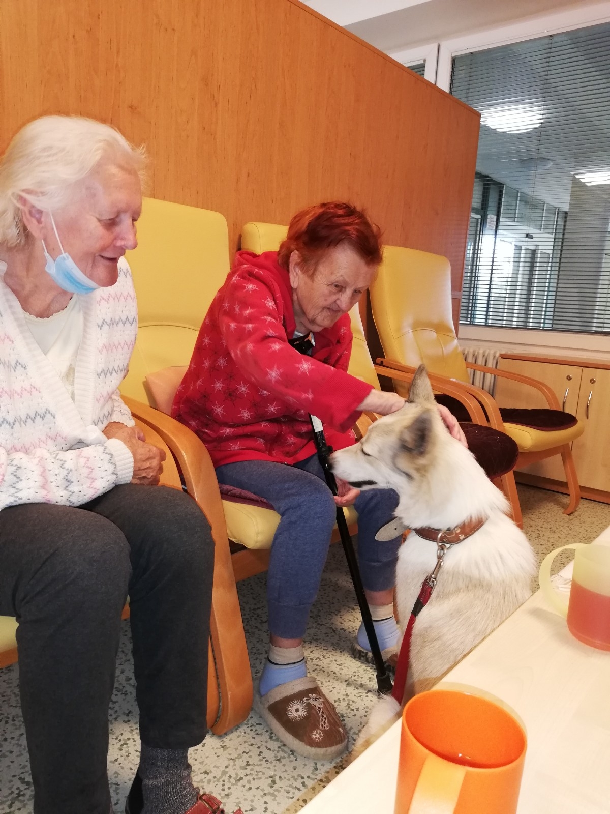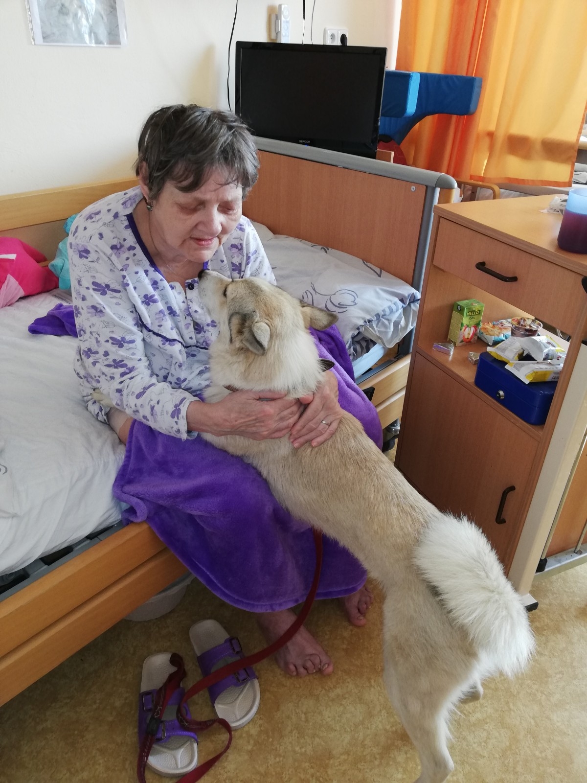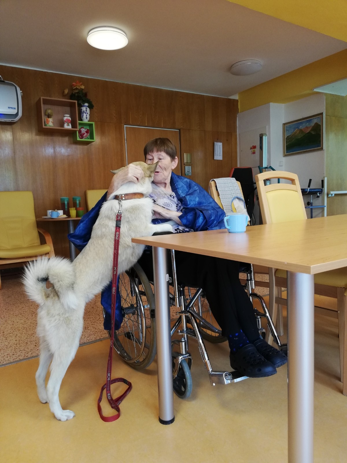 Obrovskou radost dělá našim klientům návštěva oblíbené psí kamarádky, ta klientům přináší radost a lásku a vždy je potěší.
