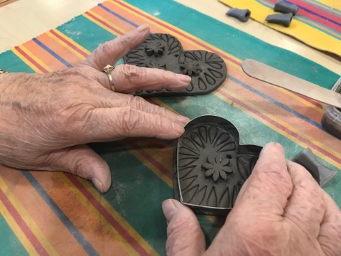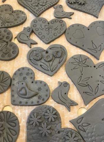 Klienti dnes tvořili keramická srdíčka, která se jim velice povedla.