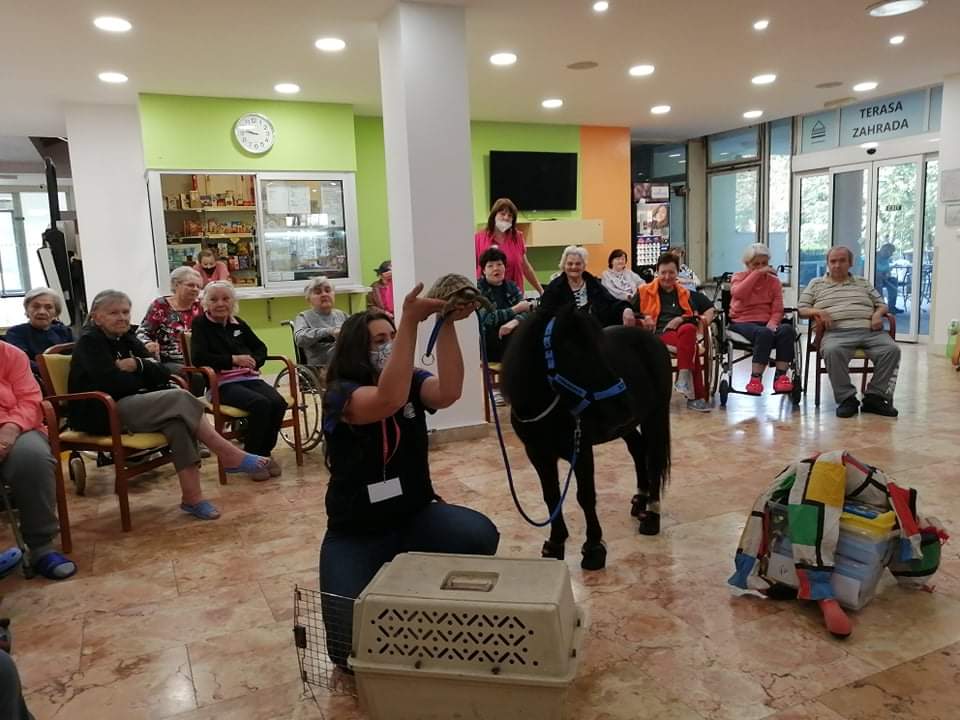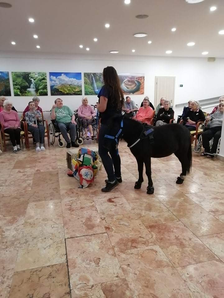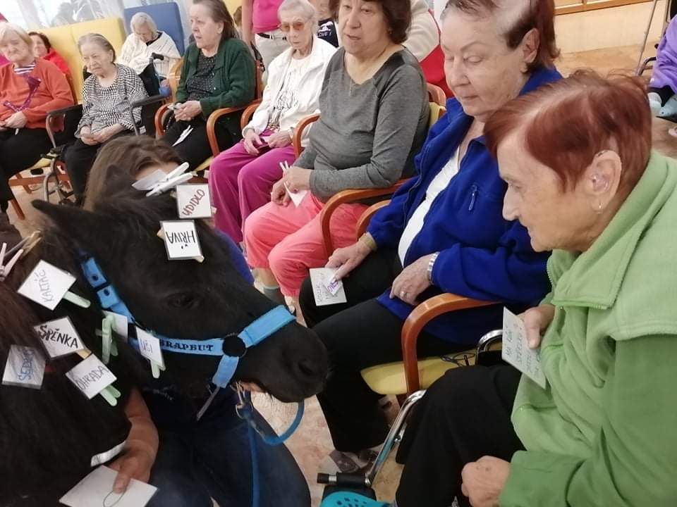 Dnes naše klienty v rámci skupinové terapie, navštívil koník Emil. Tato zajímavá návštěva byla pro klienty obohacujícím zážitkem, který byl pro ně nevšední. V příštích dnech přijde koník Emil navštívit také klienty přímo do pokojů na odděleních v rámci individuální terapie.