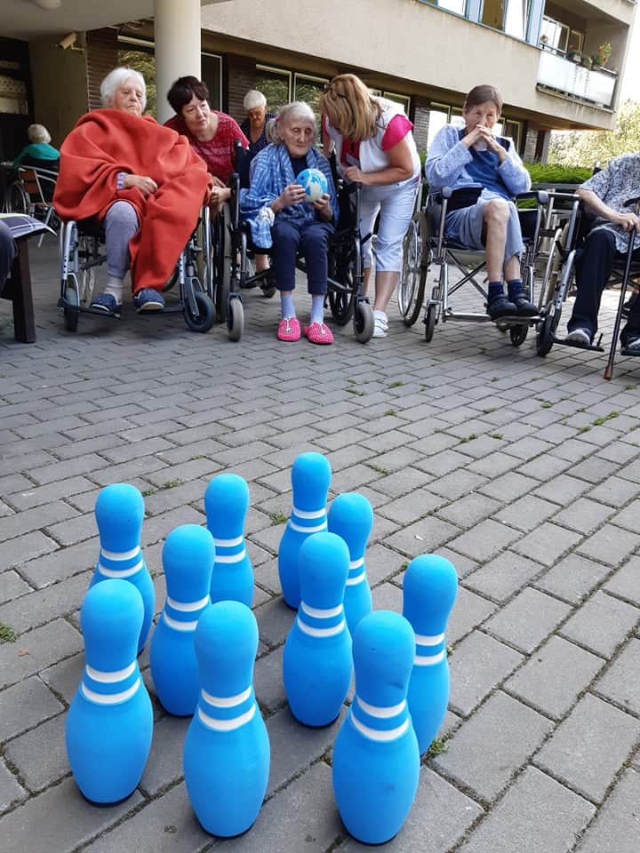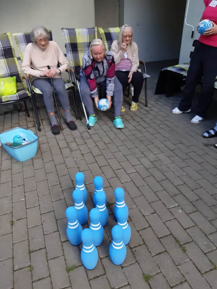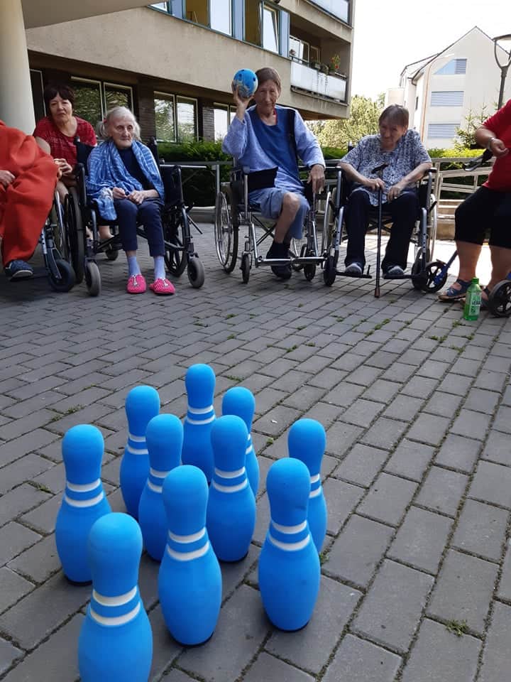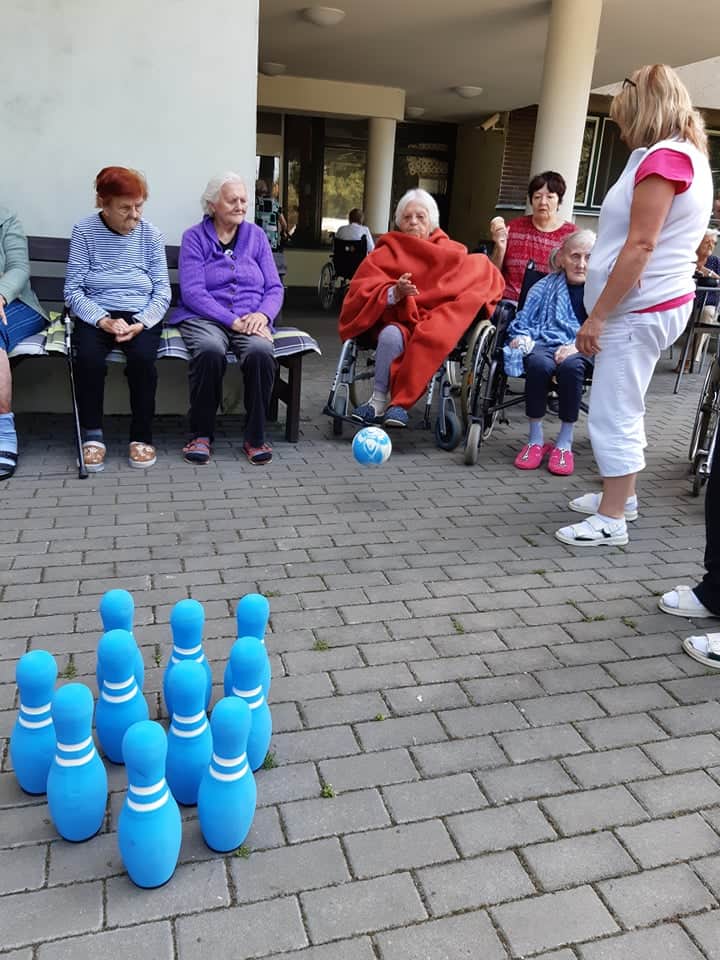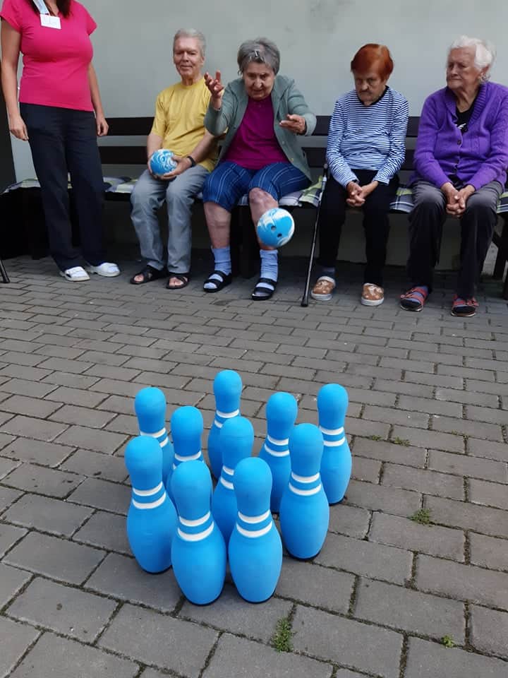Díky dobrému počasí si dnes klienti na terase zahráli kuželky, hra se jim dařila a na výbornou.