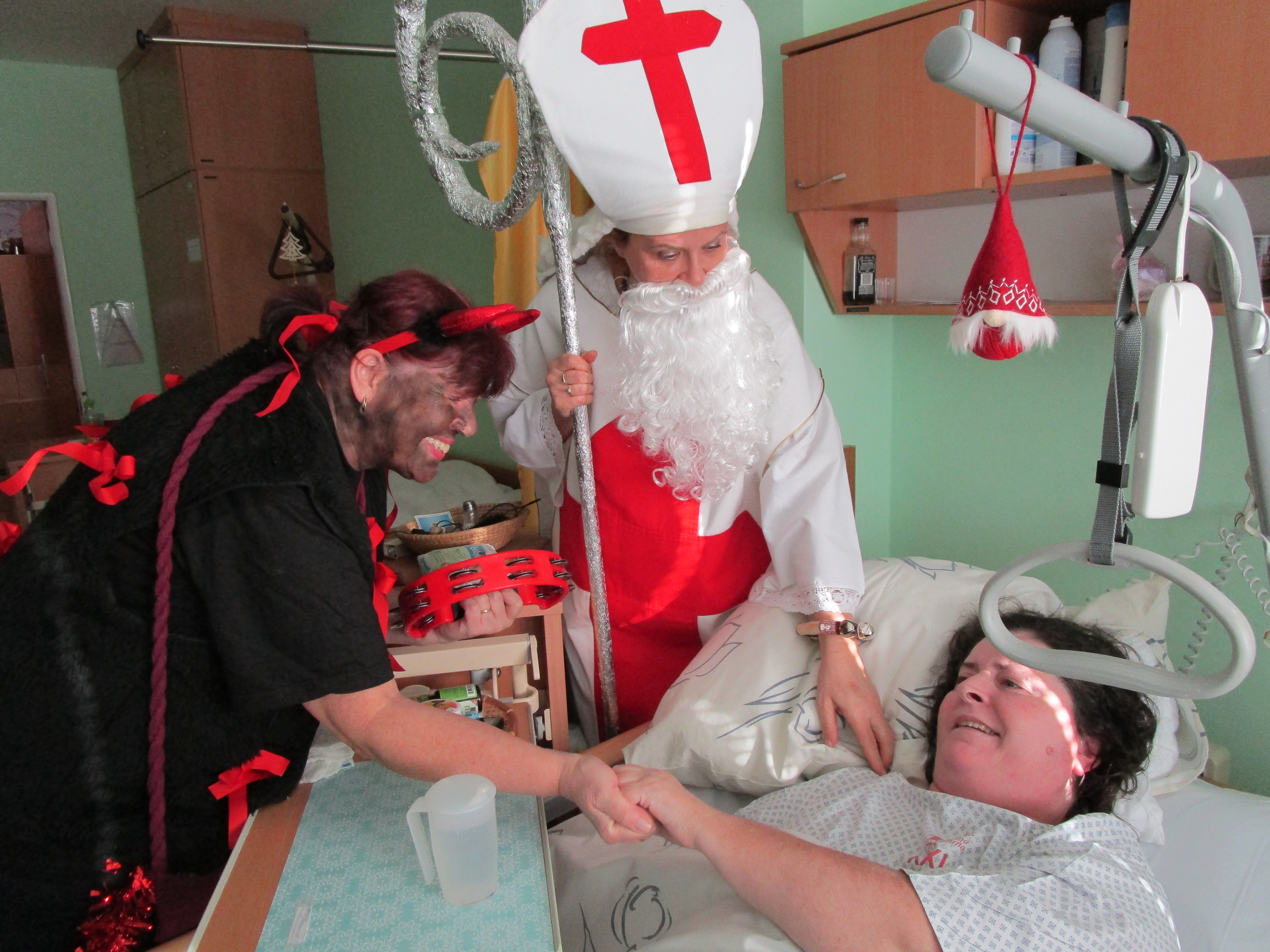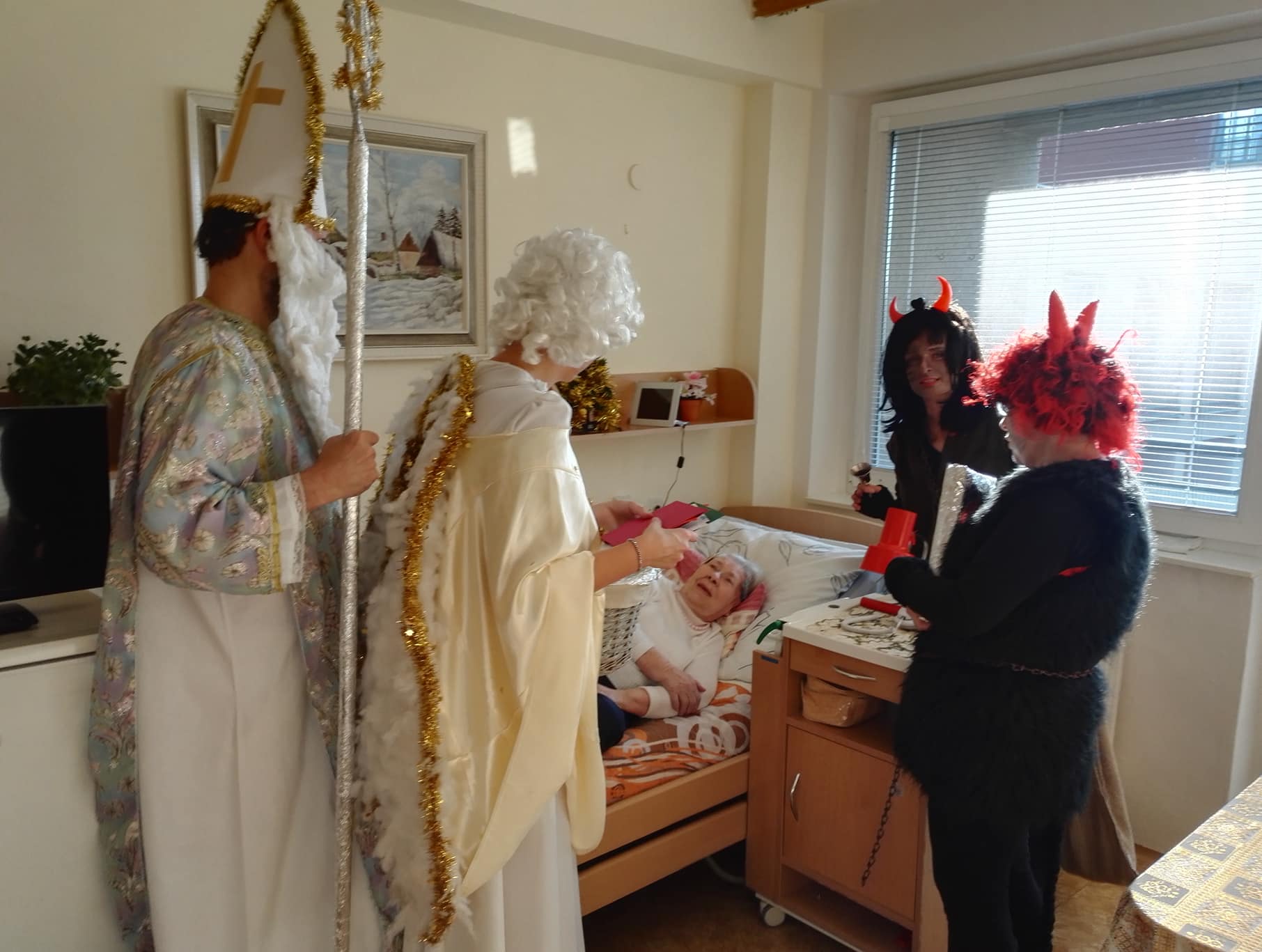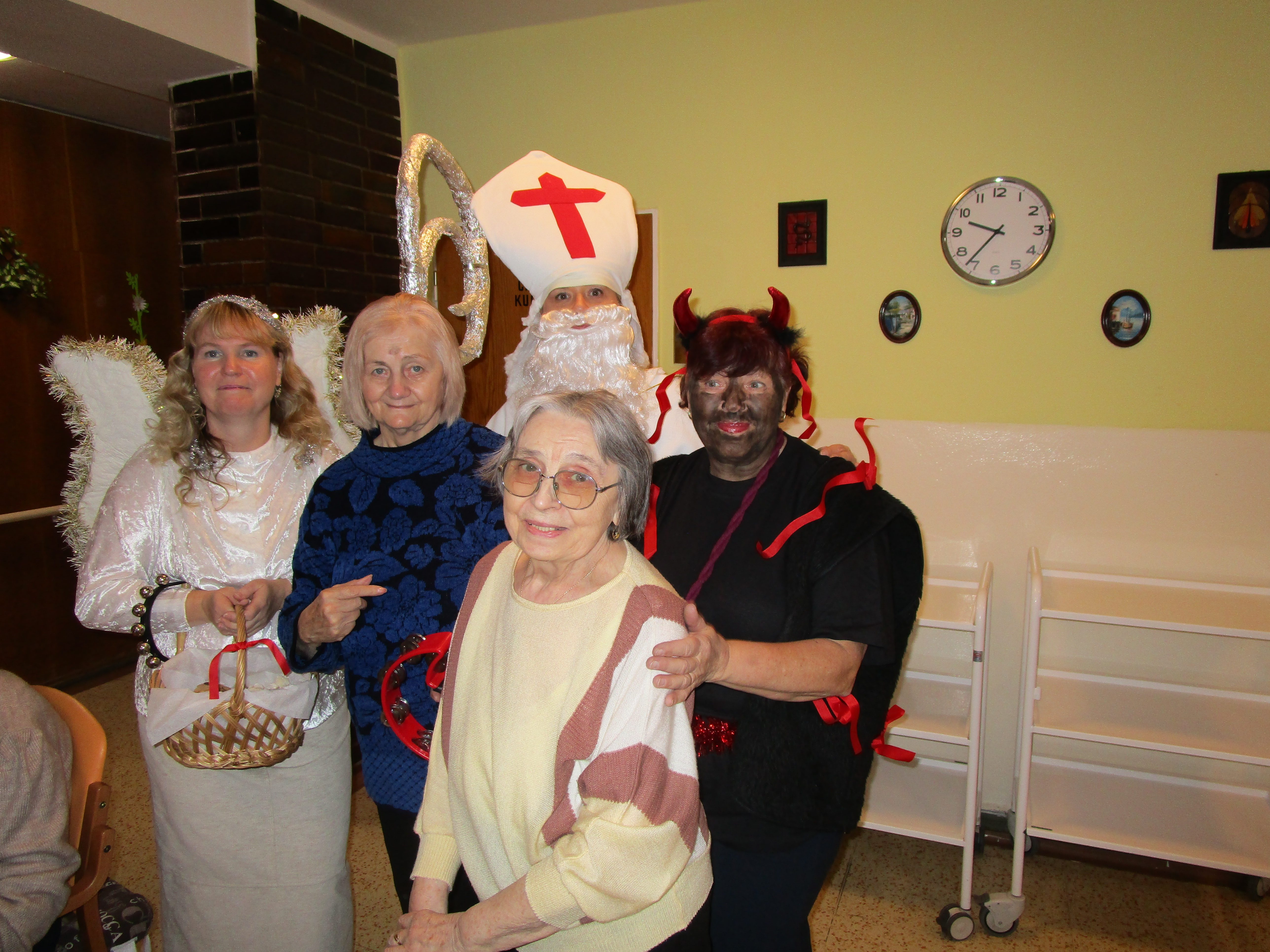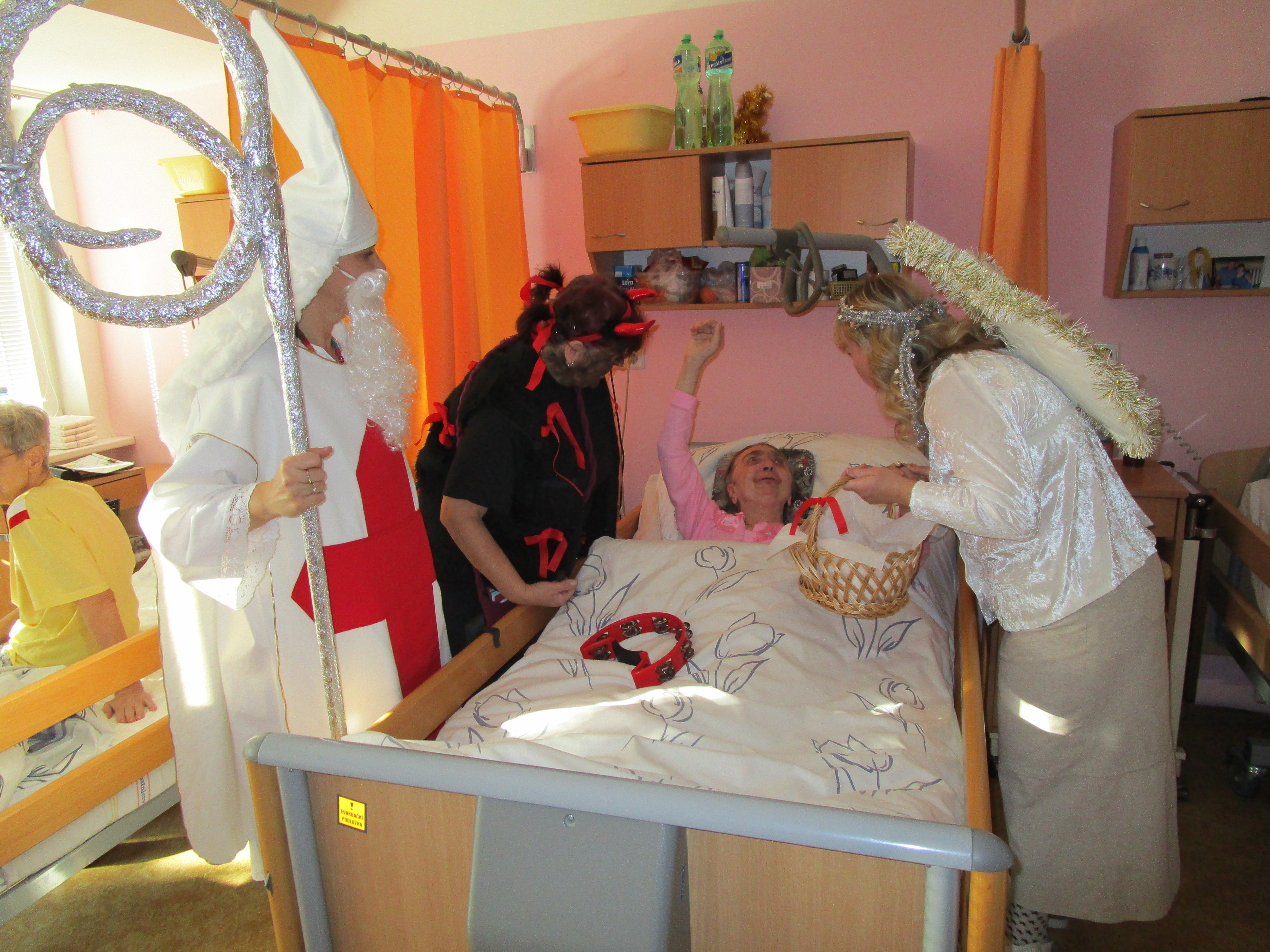 Mikuláš nezapomněl i na naše klienty, které společně s andělem a čerty potěšil svou návštěvou a nadílkou. Letos se sešly dokonce dvě skupiny, které procházely oddělení A a B. Rozdávala se přáníčka, která vytvořily děti z MŠ ve spolupráci se studentkami Masarykovy univerzity. Odpoledne si potom pro naše klienty připravily vystoupení studentky ze SZŠ Jaselská Brno. Na harmoniku zahrály naše šikovné rehabilitační pracovnice. Klienti si společně zazpívali, zatancovali a byli velmi spokojení.