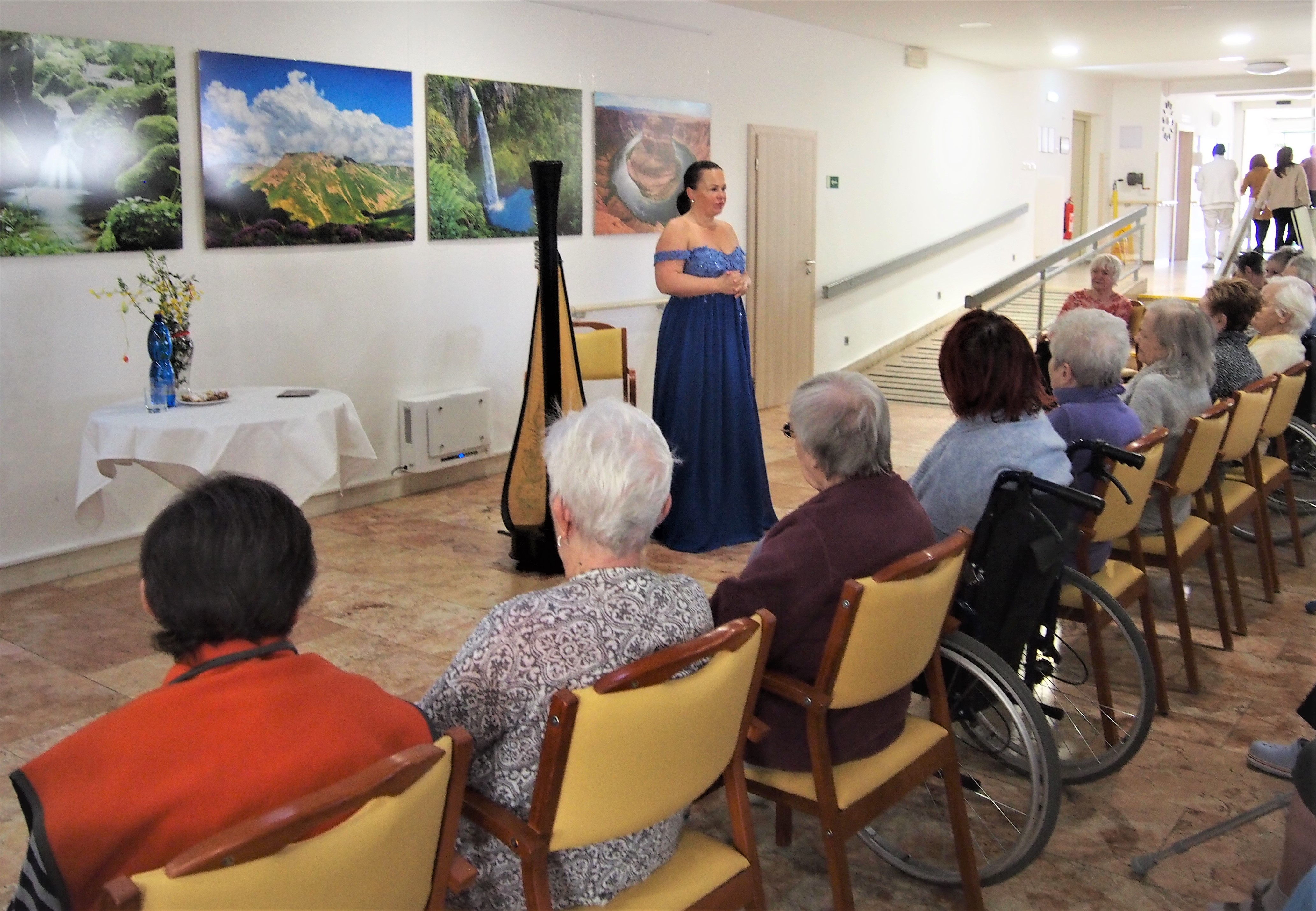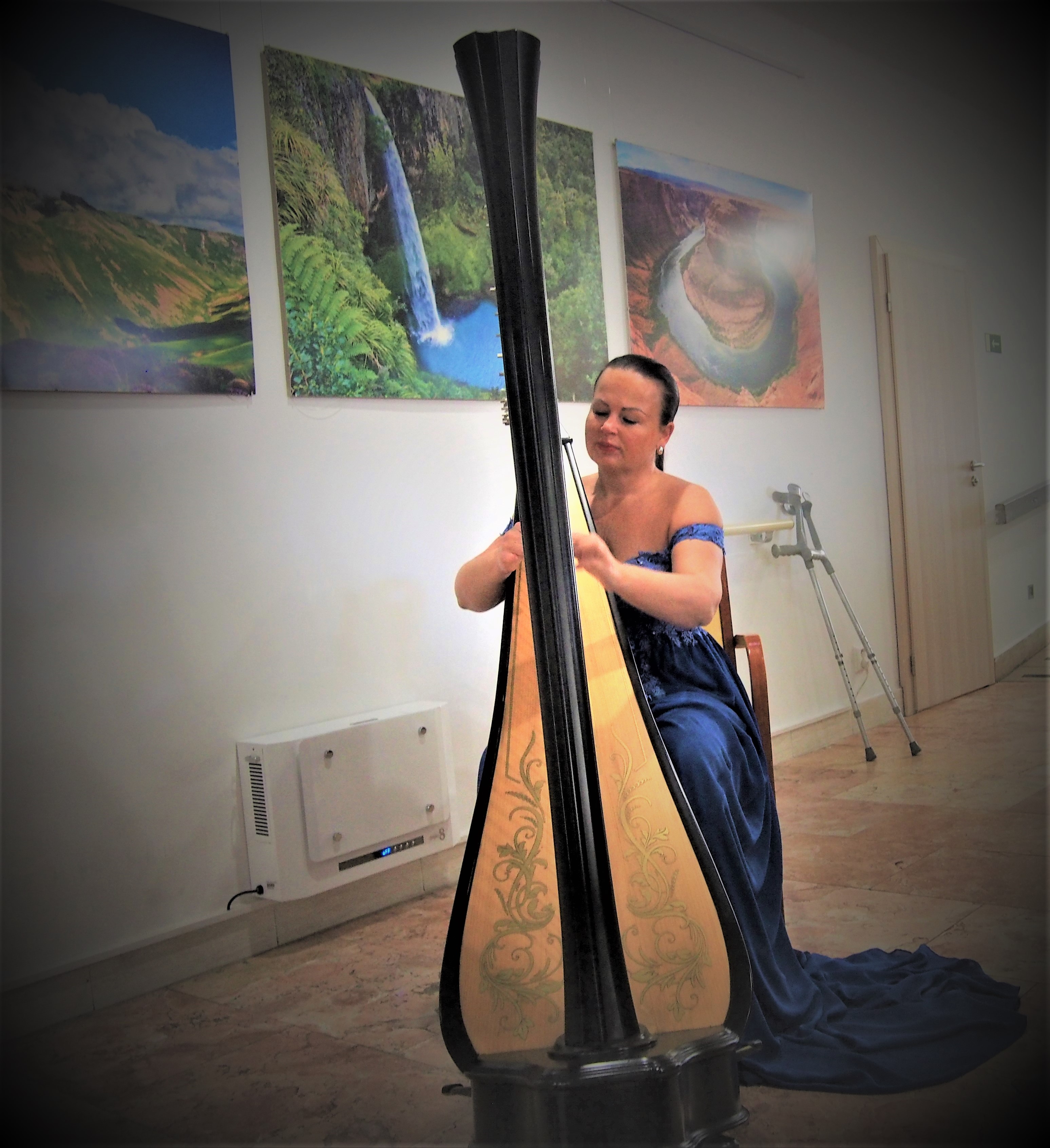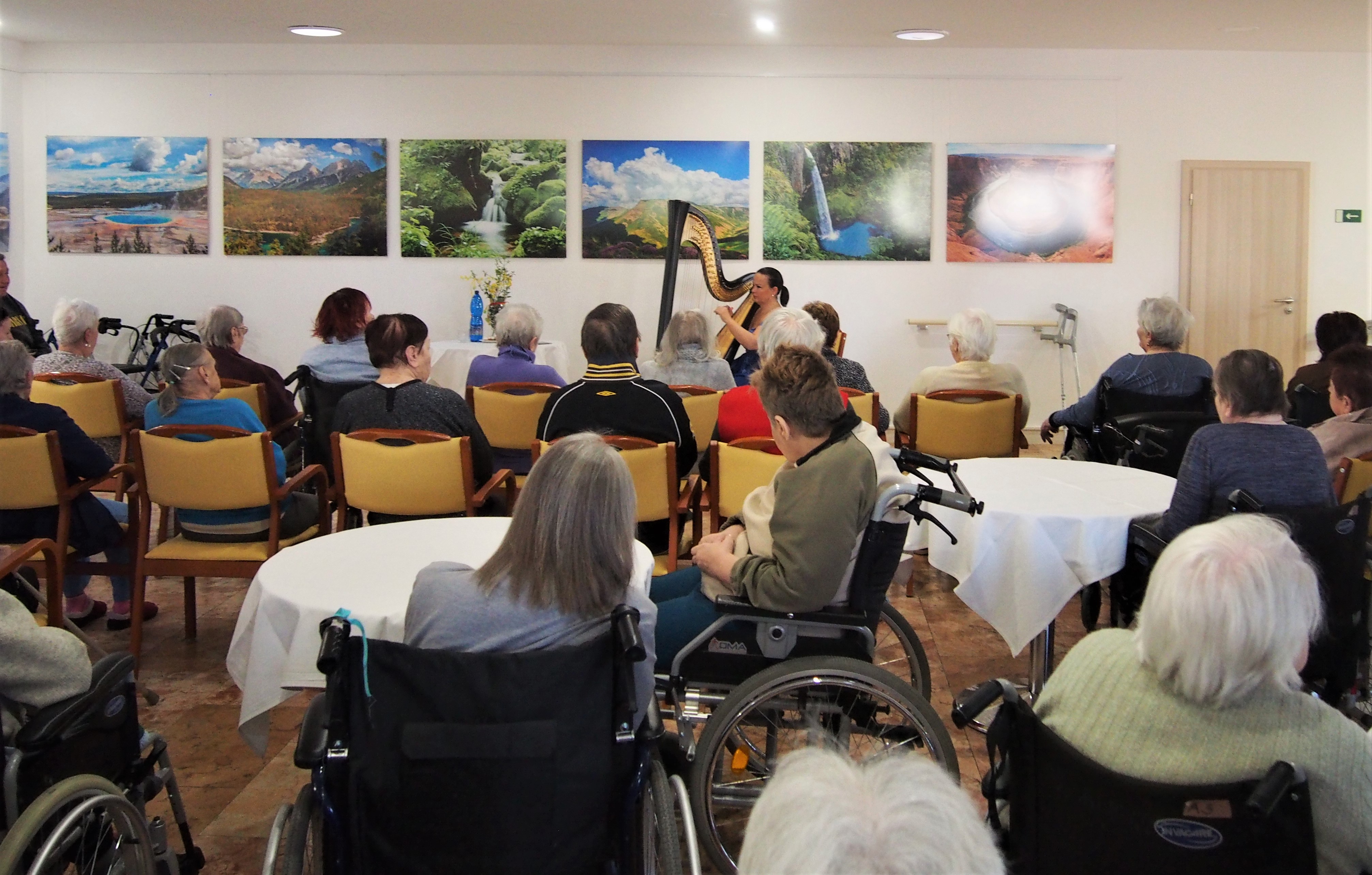 Dnešní dopoledne nám zpříjemnila paní Katarína Ševčíková, která zahrála na harfu nejen klasickou hudbu od různých interpretů, ale i známé muzikálové melodie. Podělila se s námi i o zajímavé informace o tomto královském nástroji.