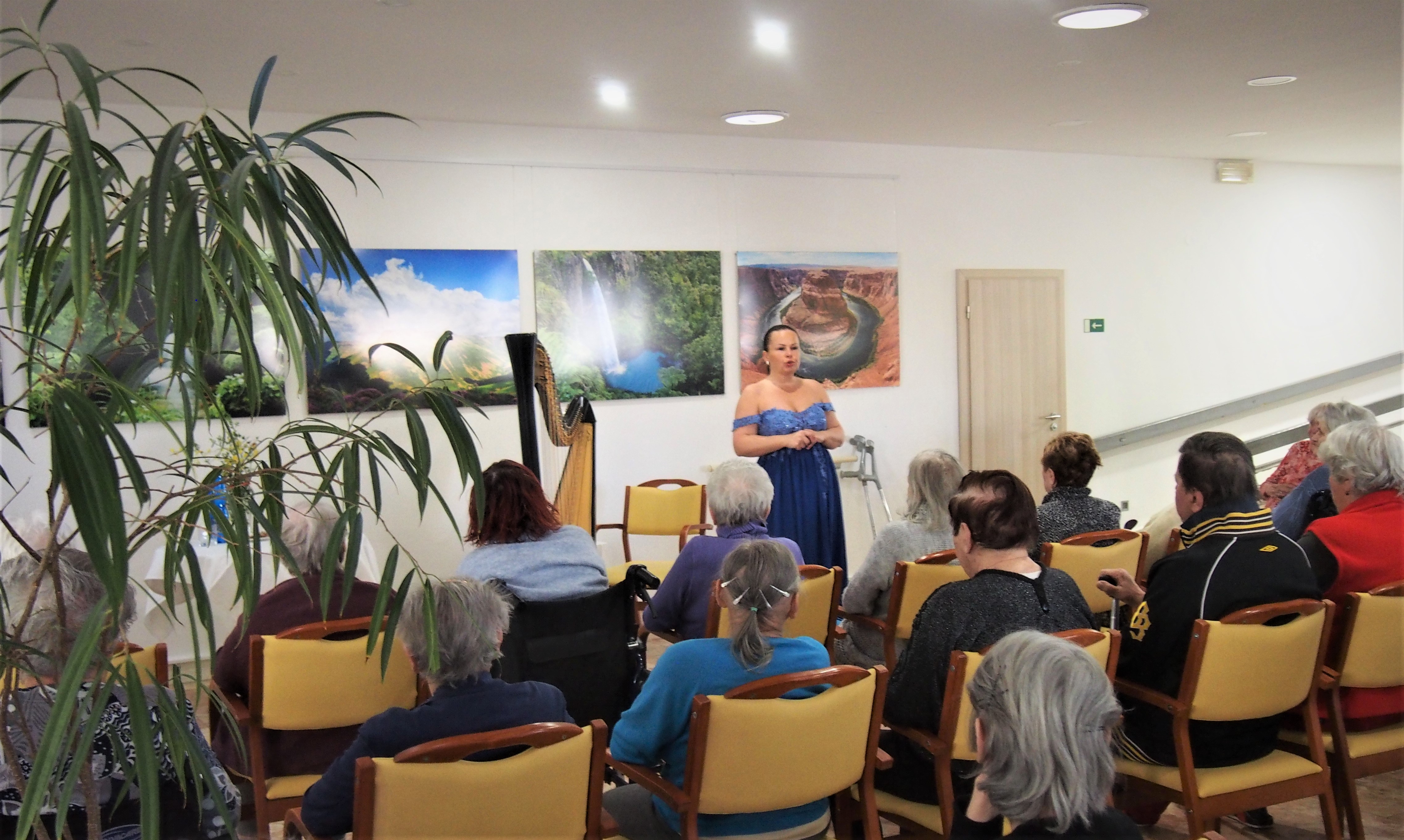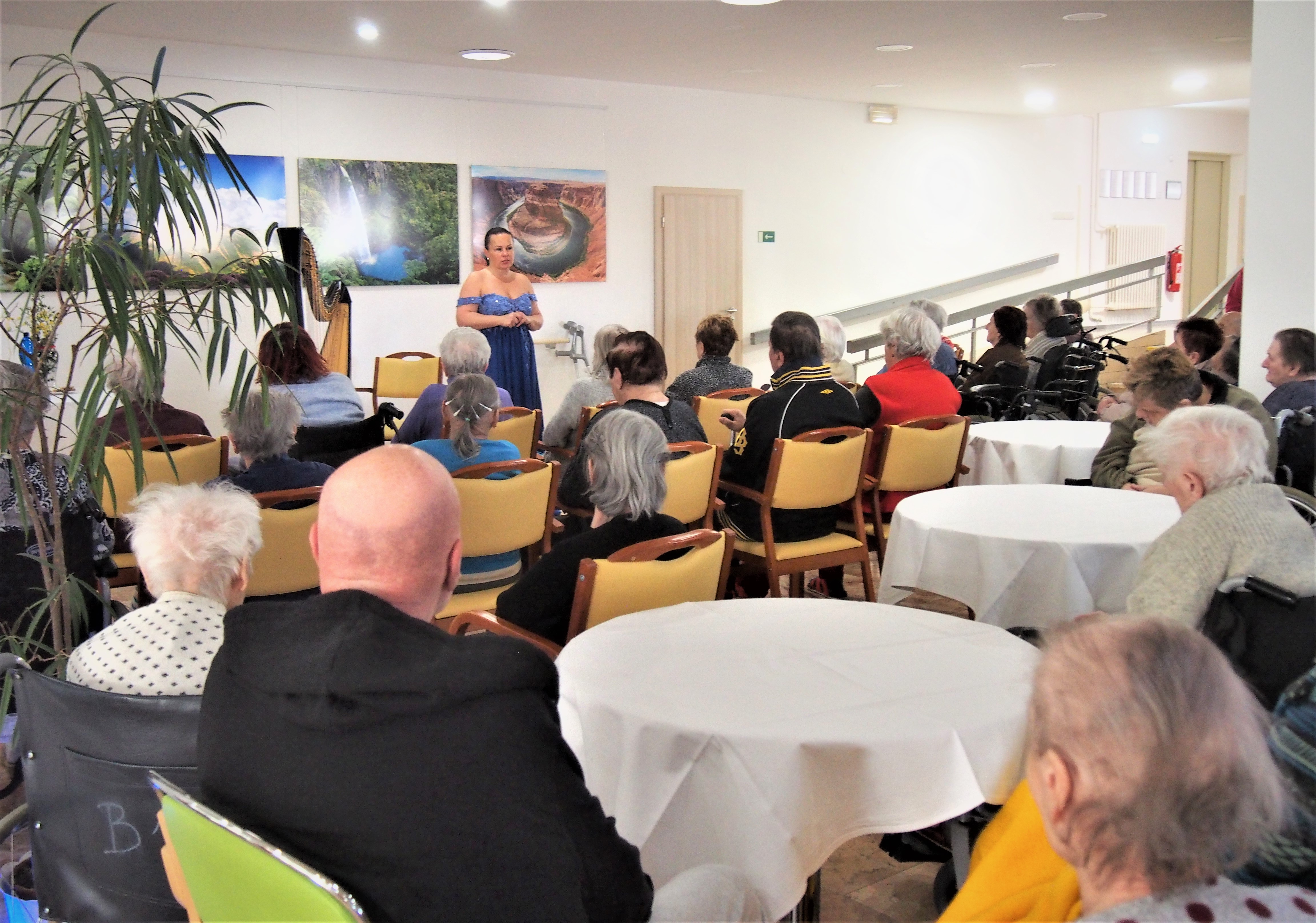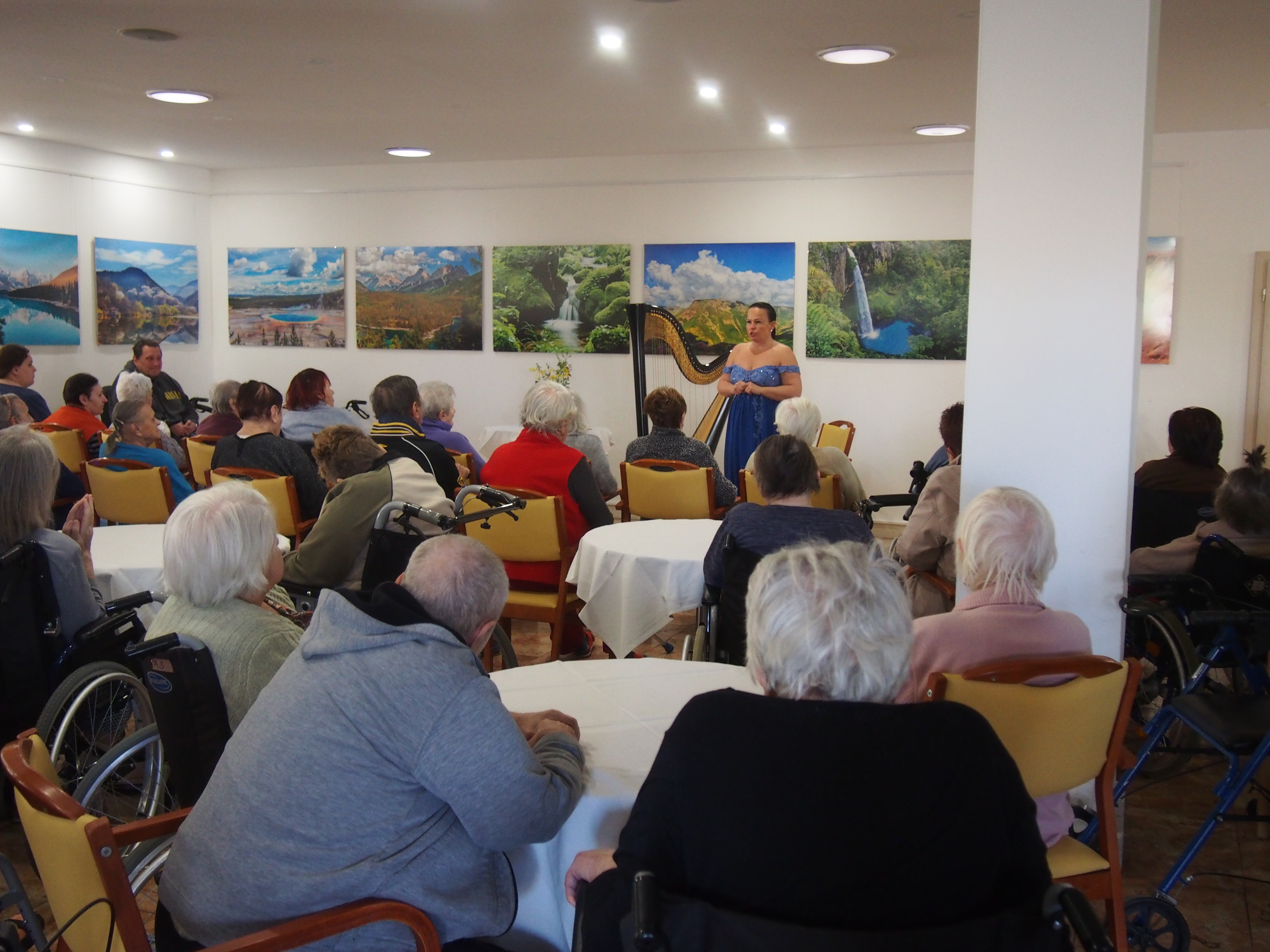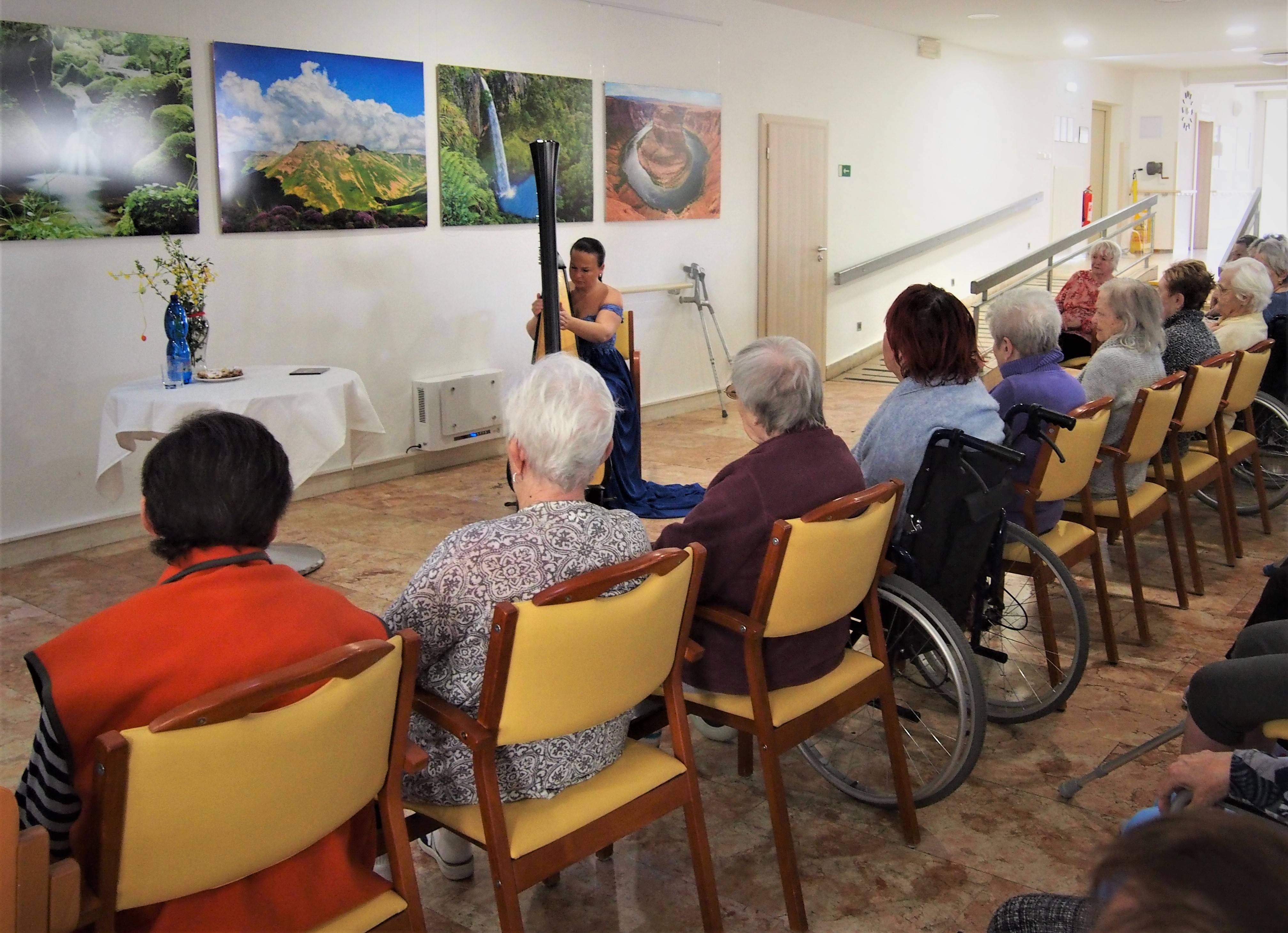 Dnešní dopoledne nám zpříjemnila paní Katarína Ševčíková, která zahrála na harfu nejen klasickou hudbu od různých interpretů, ale i známé muzikálové melodie. Podělila se s námi i o zajímavé informace o tomto královském nástroji.