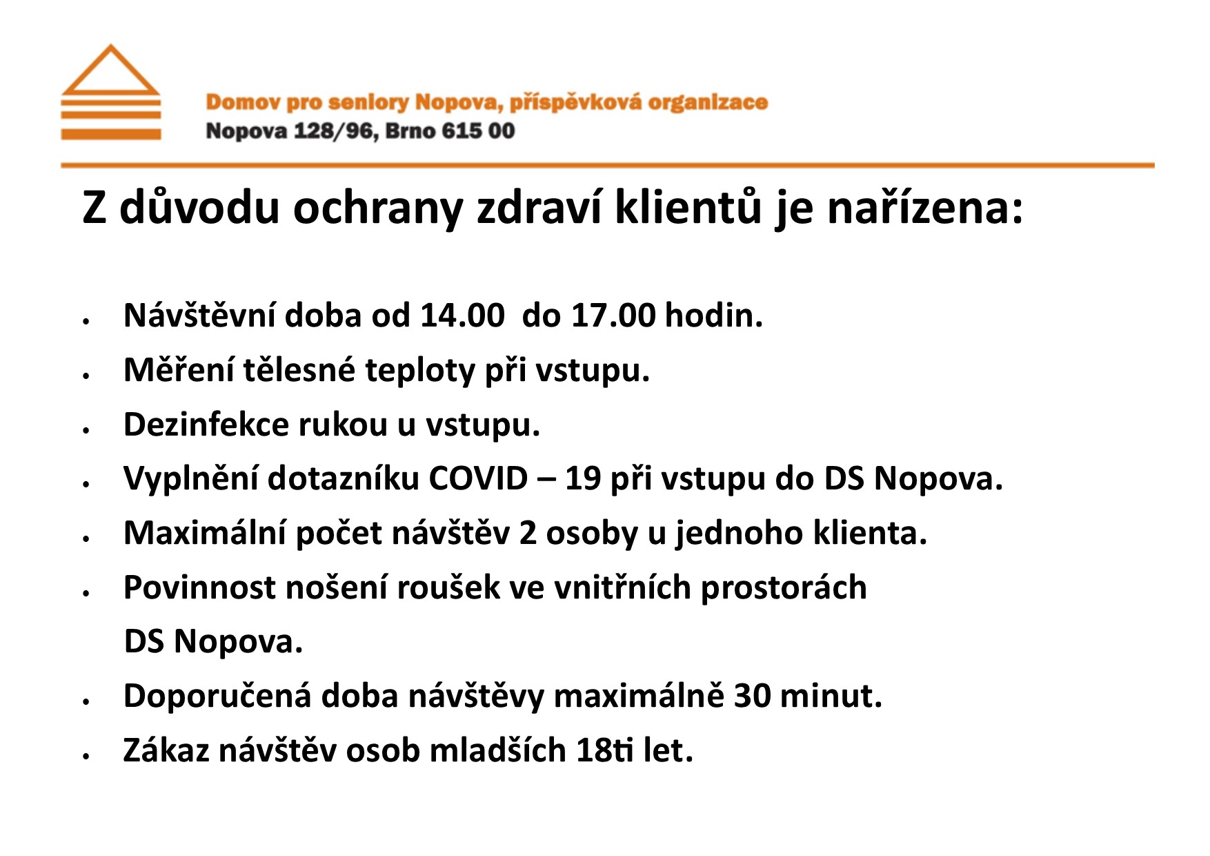 Od pondělí 31.8.2020 je odvolán zákaz návštěv v DS Nopova