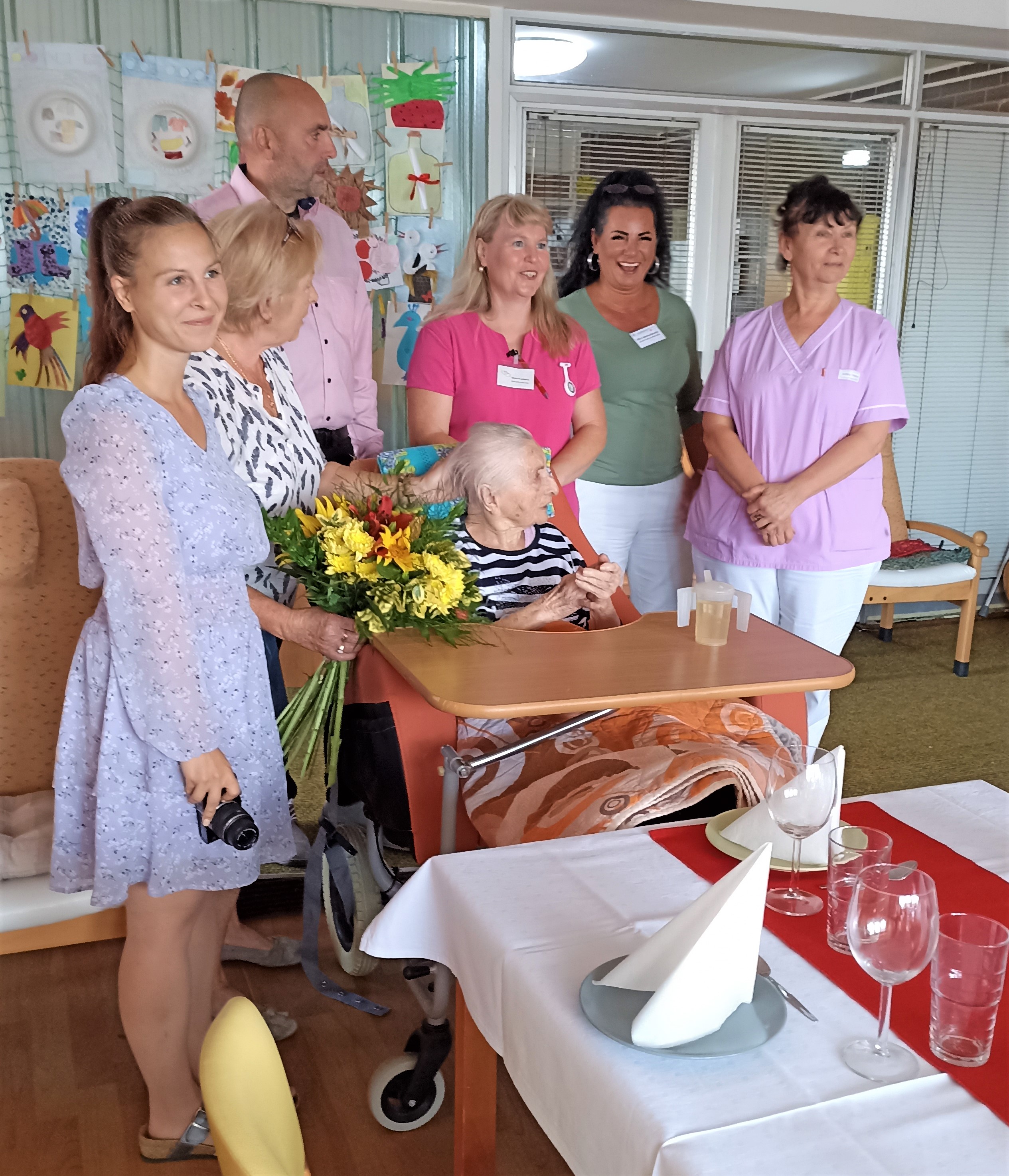 Klientka našeho domova, paní Bohuslava Filová, oslavila úctyhodných 102 let. Její narozeniny jsme oslavili za účasti jejich nejbližších. Popřát jí přišel ředitel DS Nopova, p.o., Mgr. Libor Matouš, který klientce předal velkou kytici, ze které měla oslavenkyně radost.