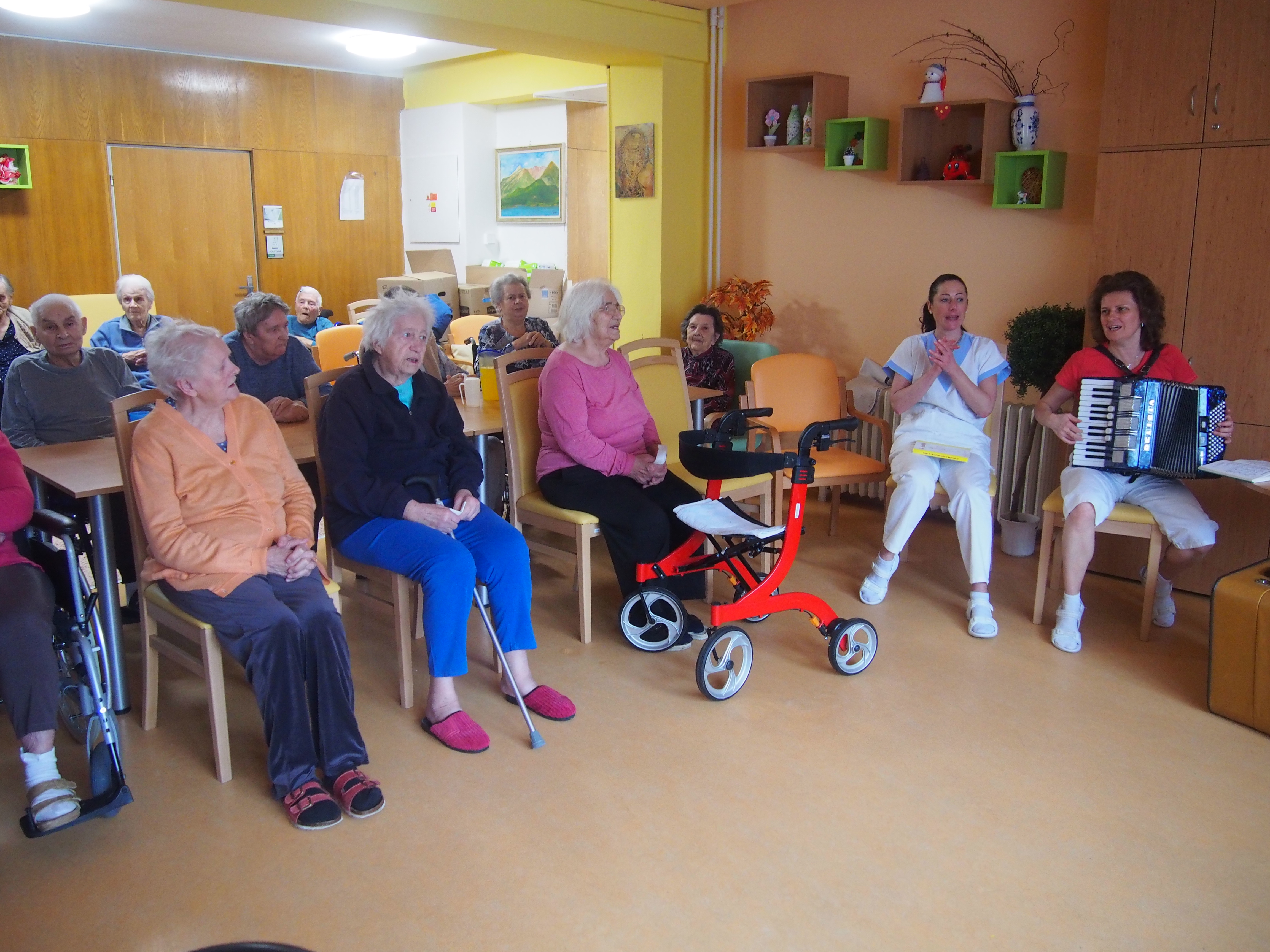 V rámci aktivizace probíhá pravidelně každý týden společné cvičení. První pondělí v měsíci se klienti můžou těšit na muzikoterapii, kdy si mohou zahrát na hudební nástroje. Mimo to se na jednotlivých odděleních zpívá, případně i tancuje, za doprovodu harmoniky. Klienti se rádi zapojují do tkaní koberců a zručnější mohou využít své znalosti na interaktivním dotykovém stole, který je speciálně přizpůsoben potřebám seniorům.
