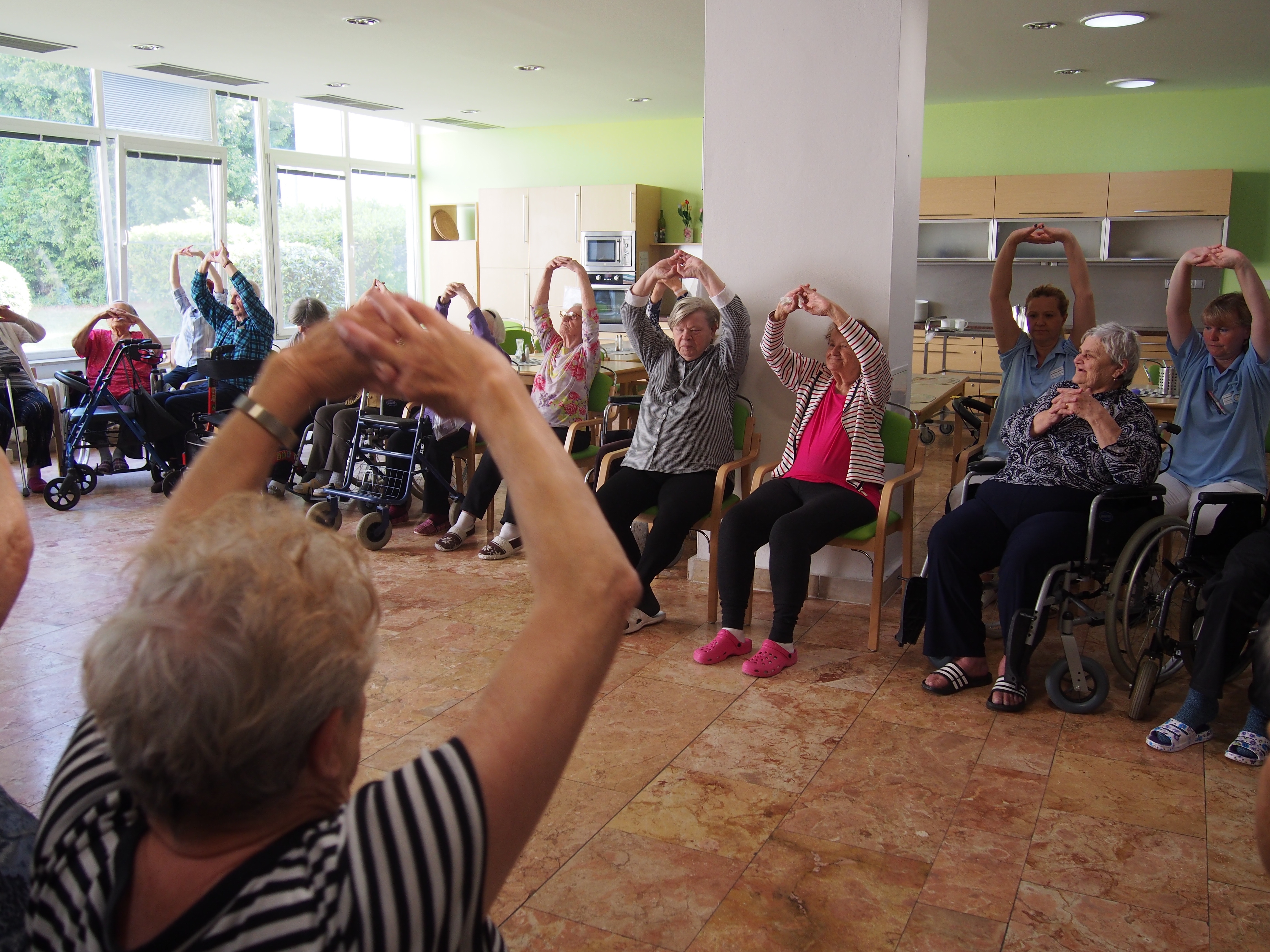 Klienti se pravidelně účastní relaxačního cvičení, jejímž účelem je také společné zpívání oblíbených písní.