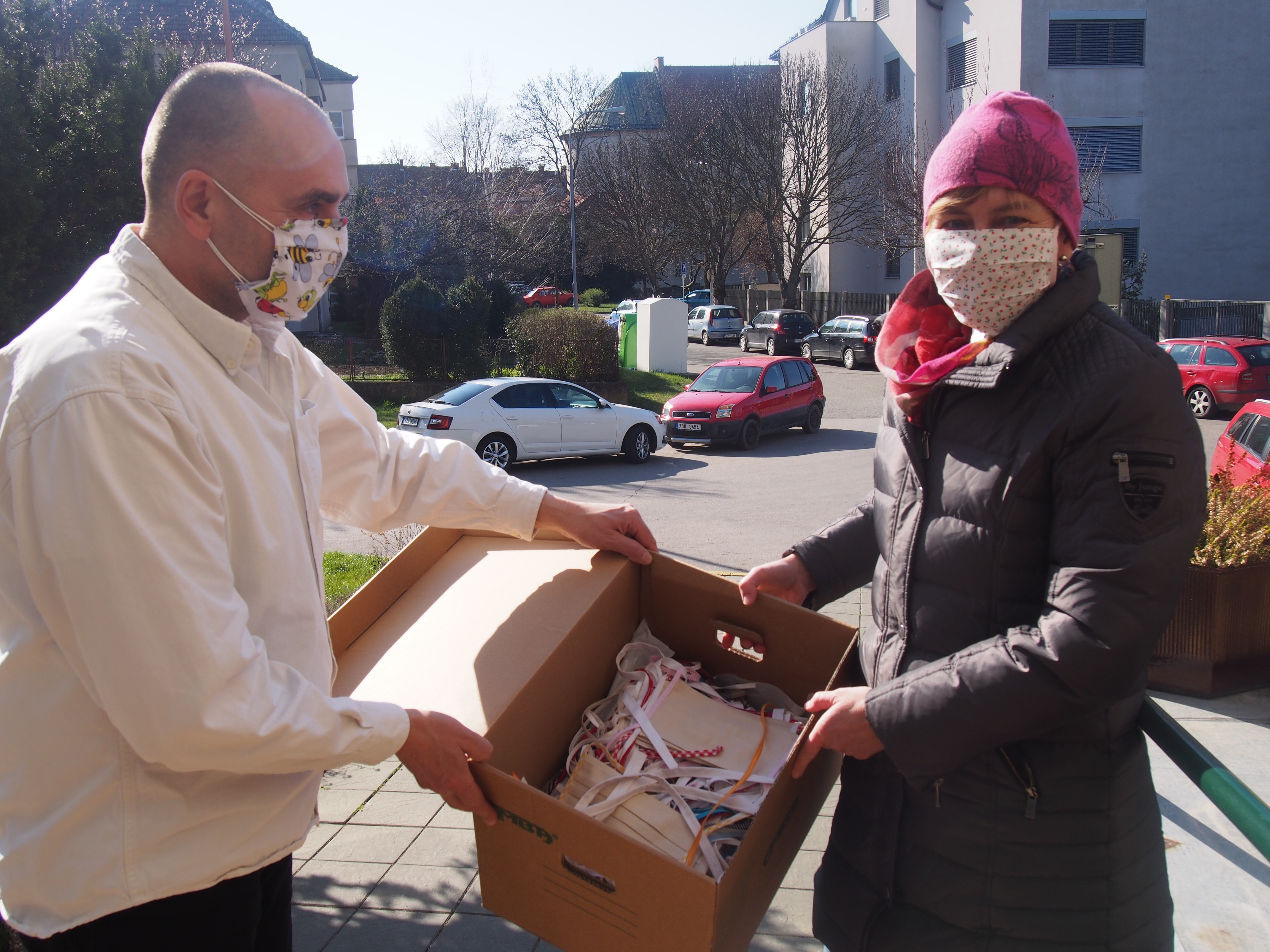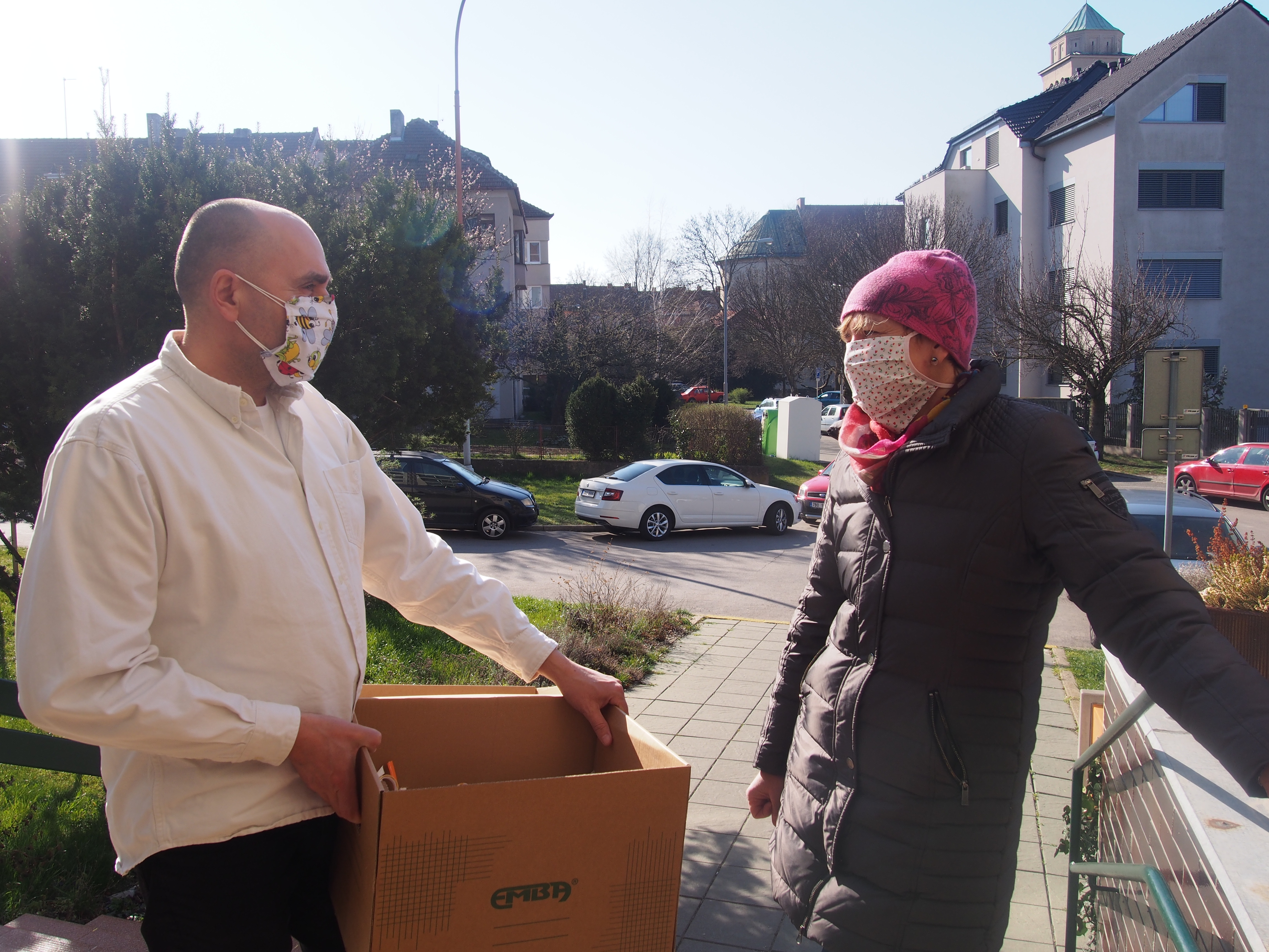 Dnes nám paní Ing. Veronika Marušková ze společnosti ARTISSIMO přinesla 105 Ks ušitých roušek. Které nám předala jako dar.