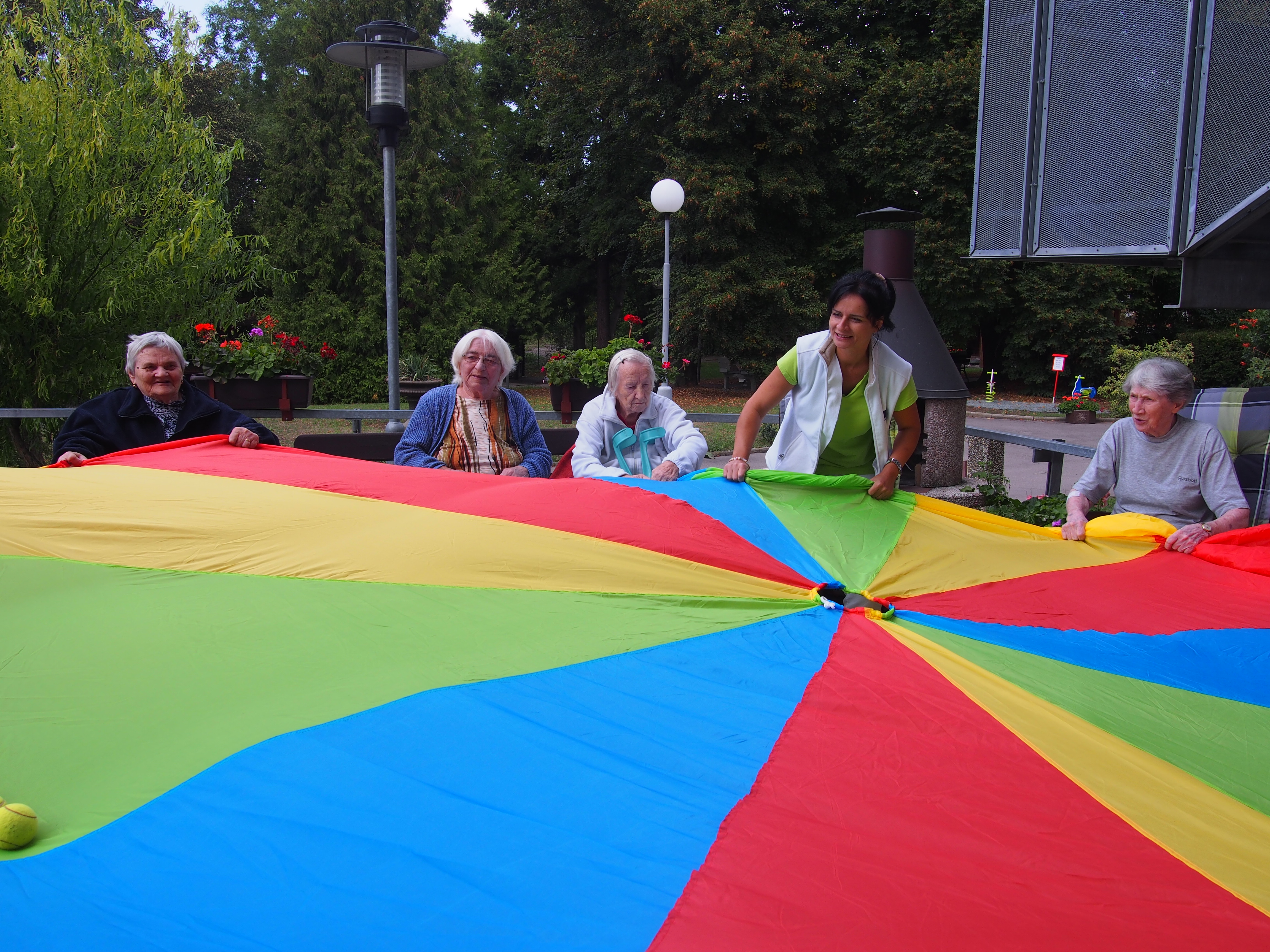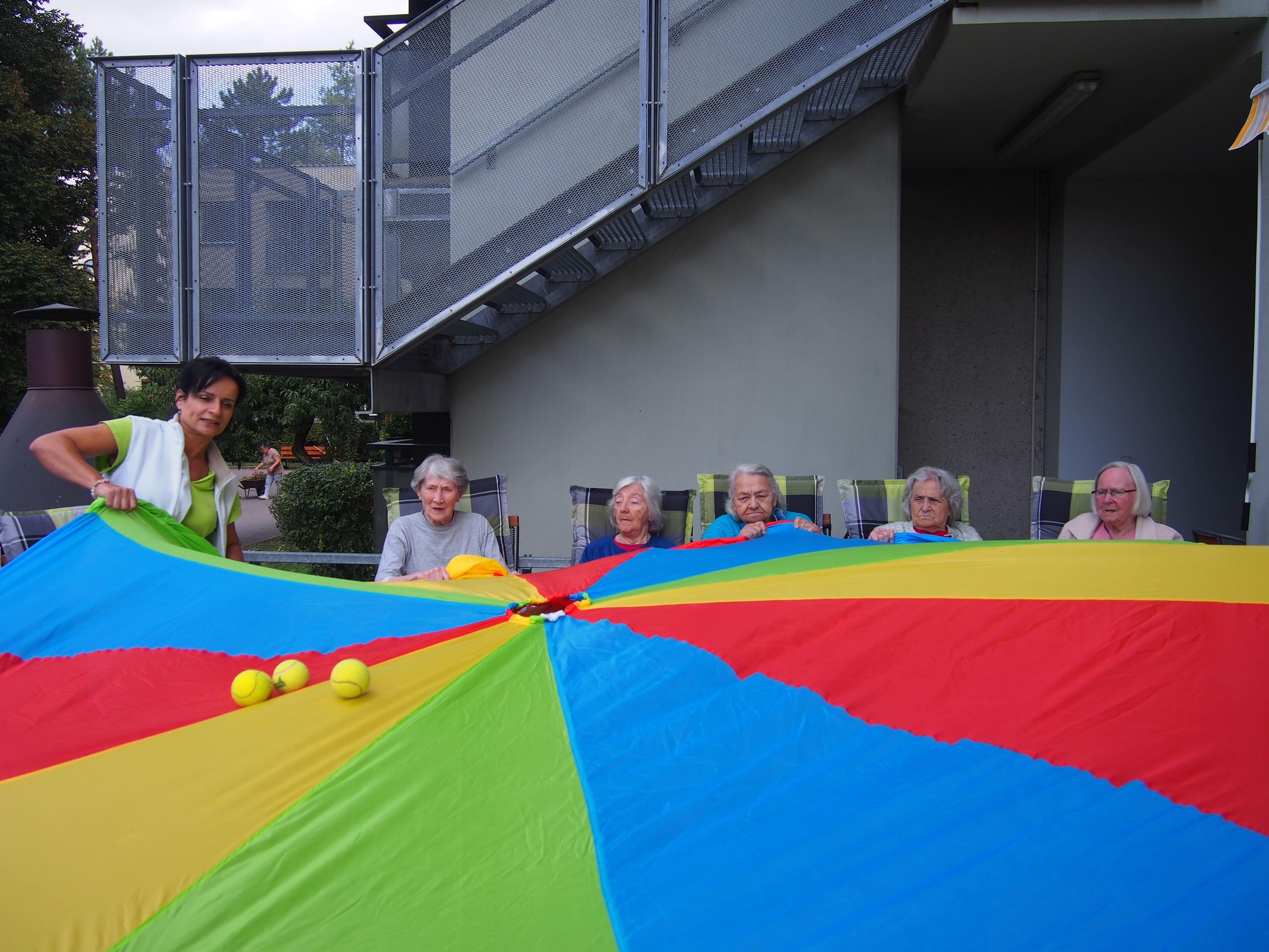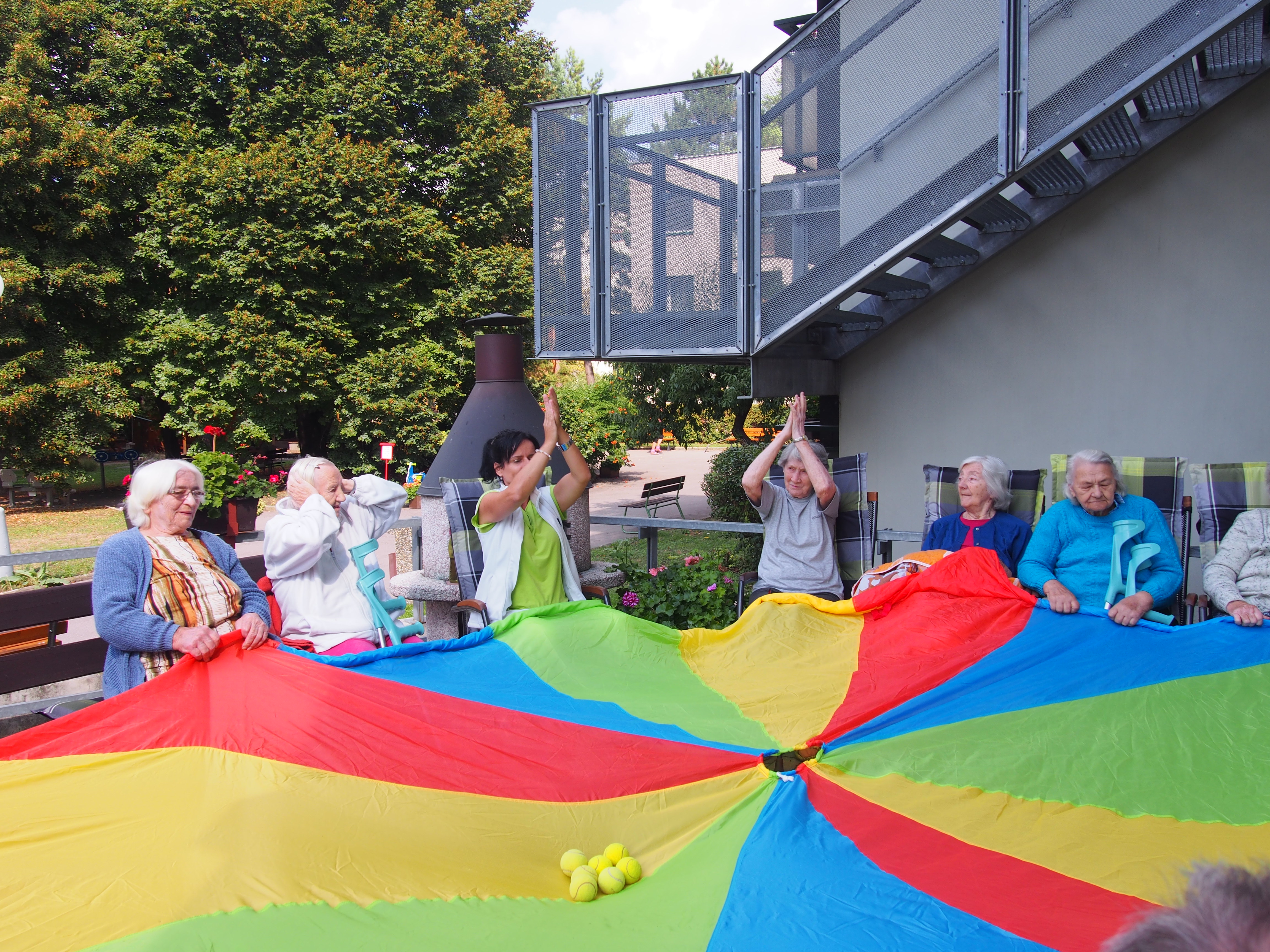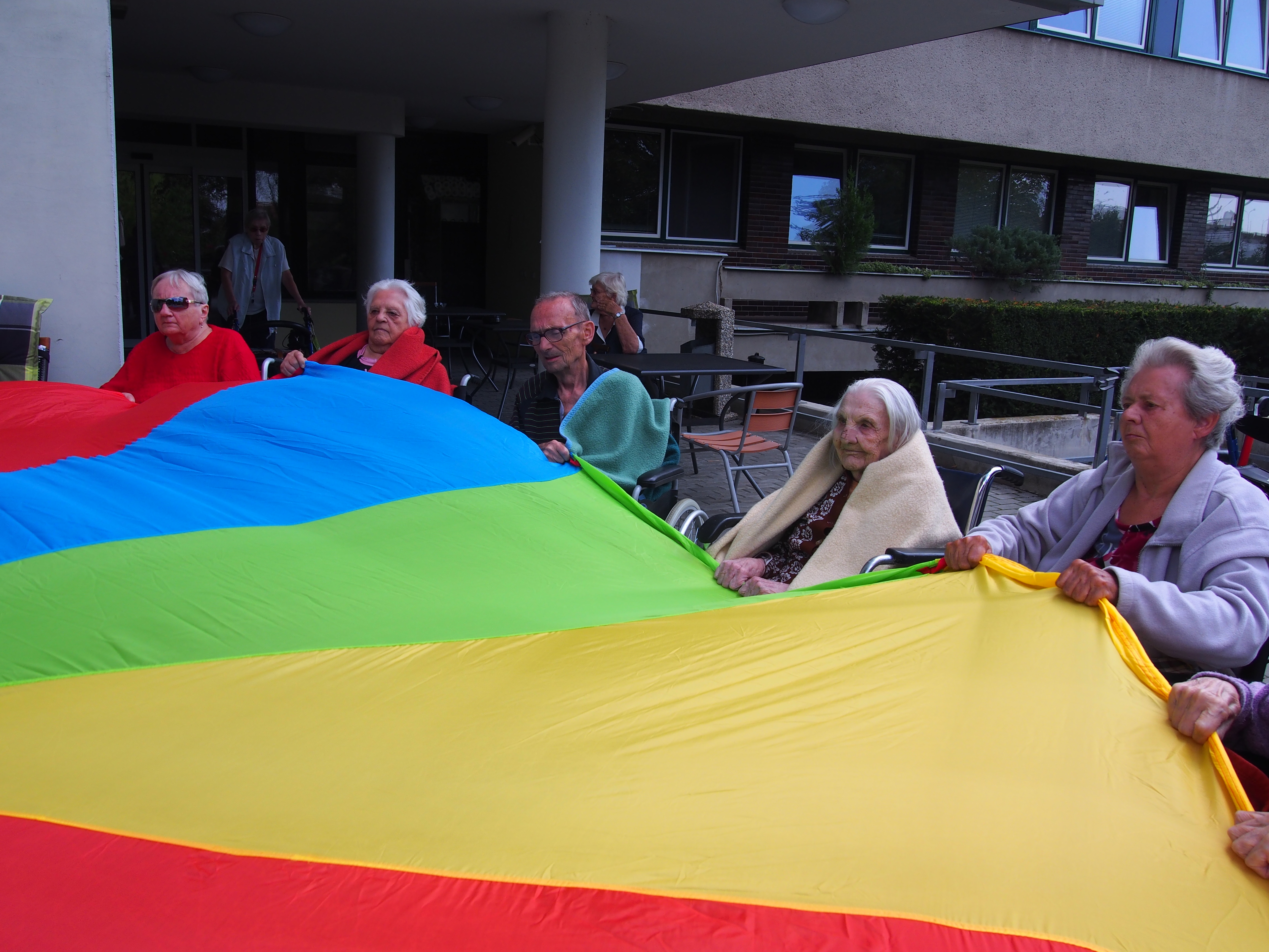 Využili jsme pěkného počasí a zacvičili jsme si s padákem.
