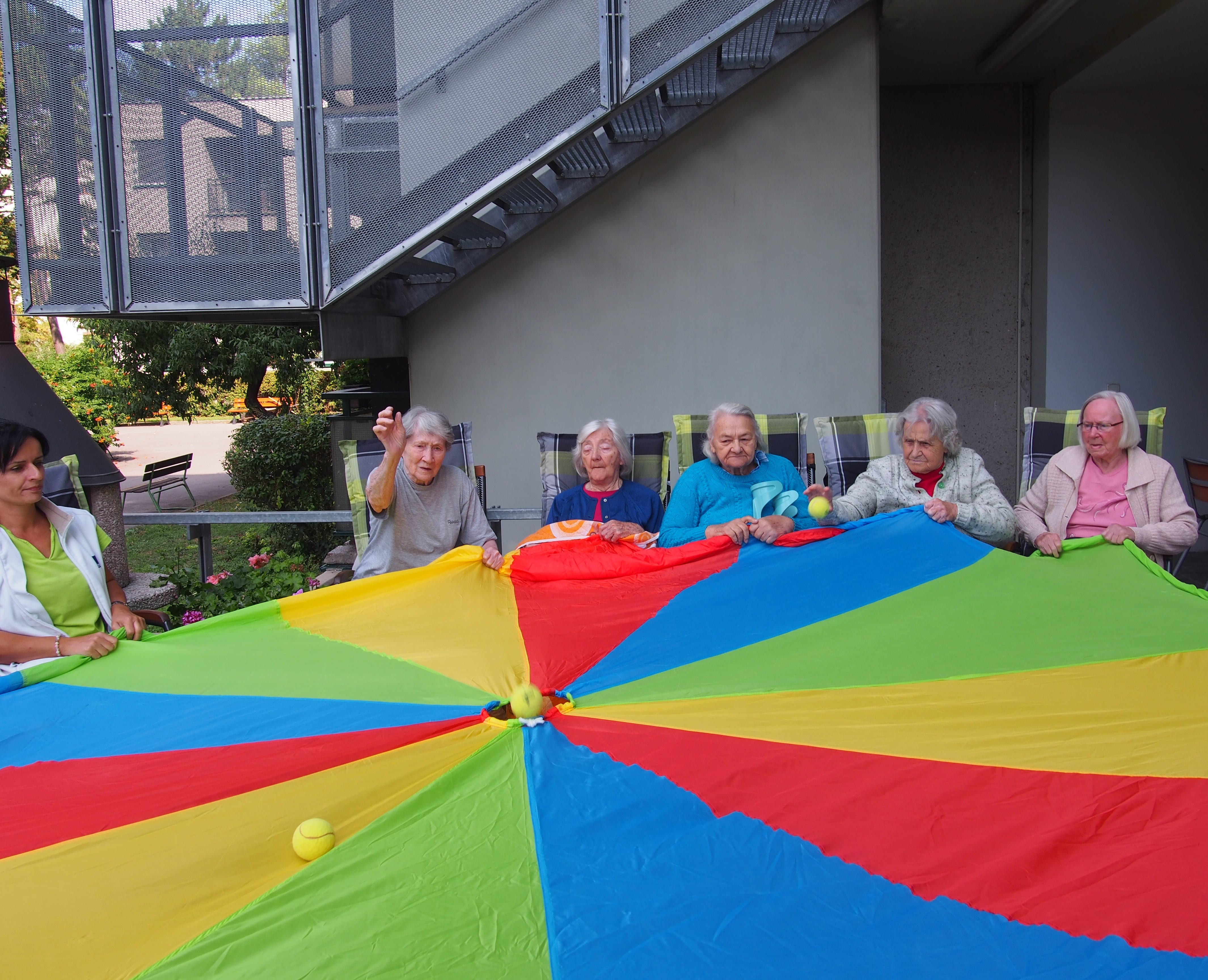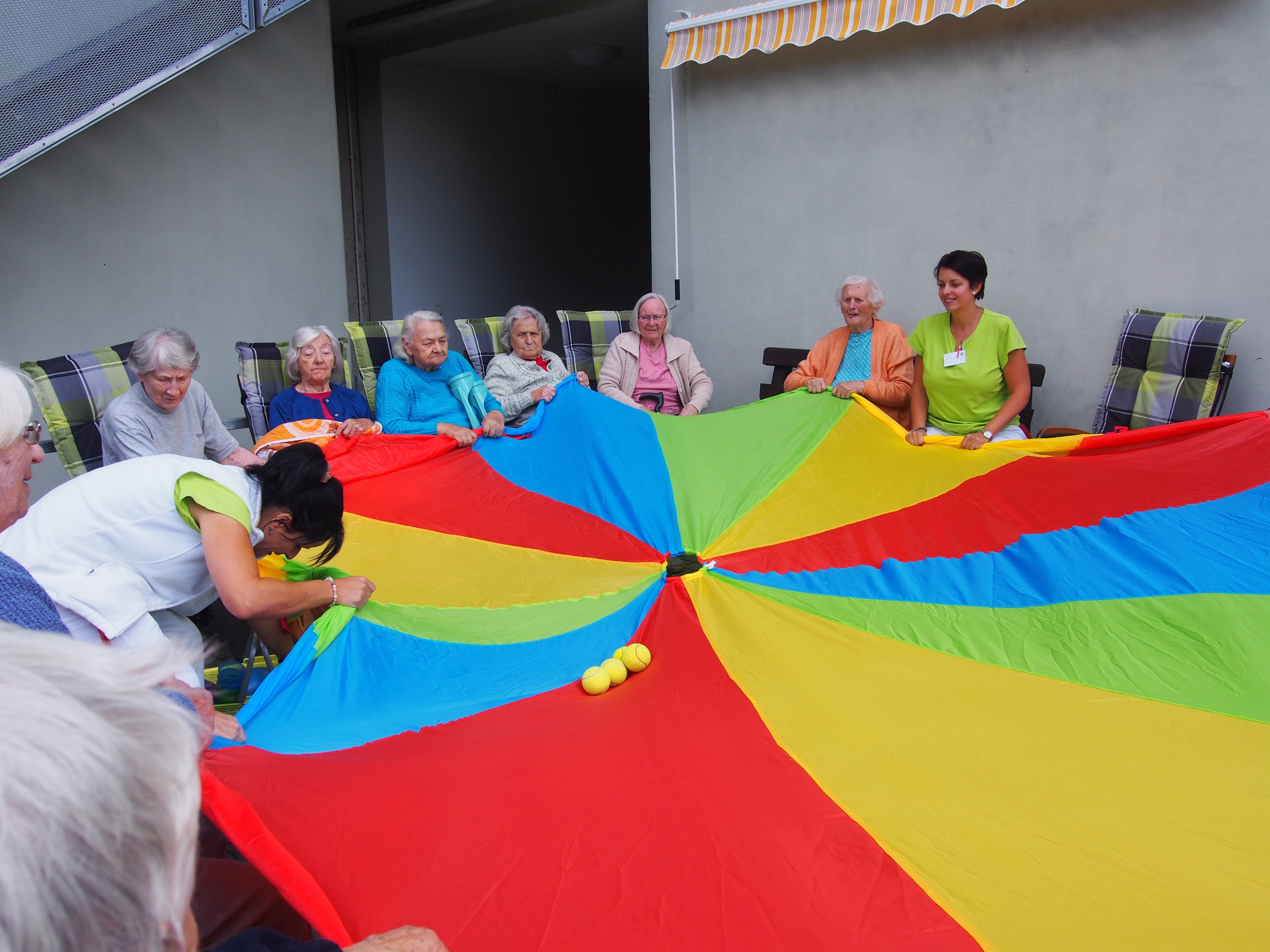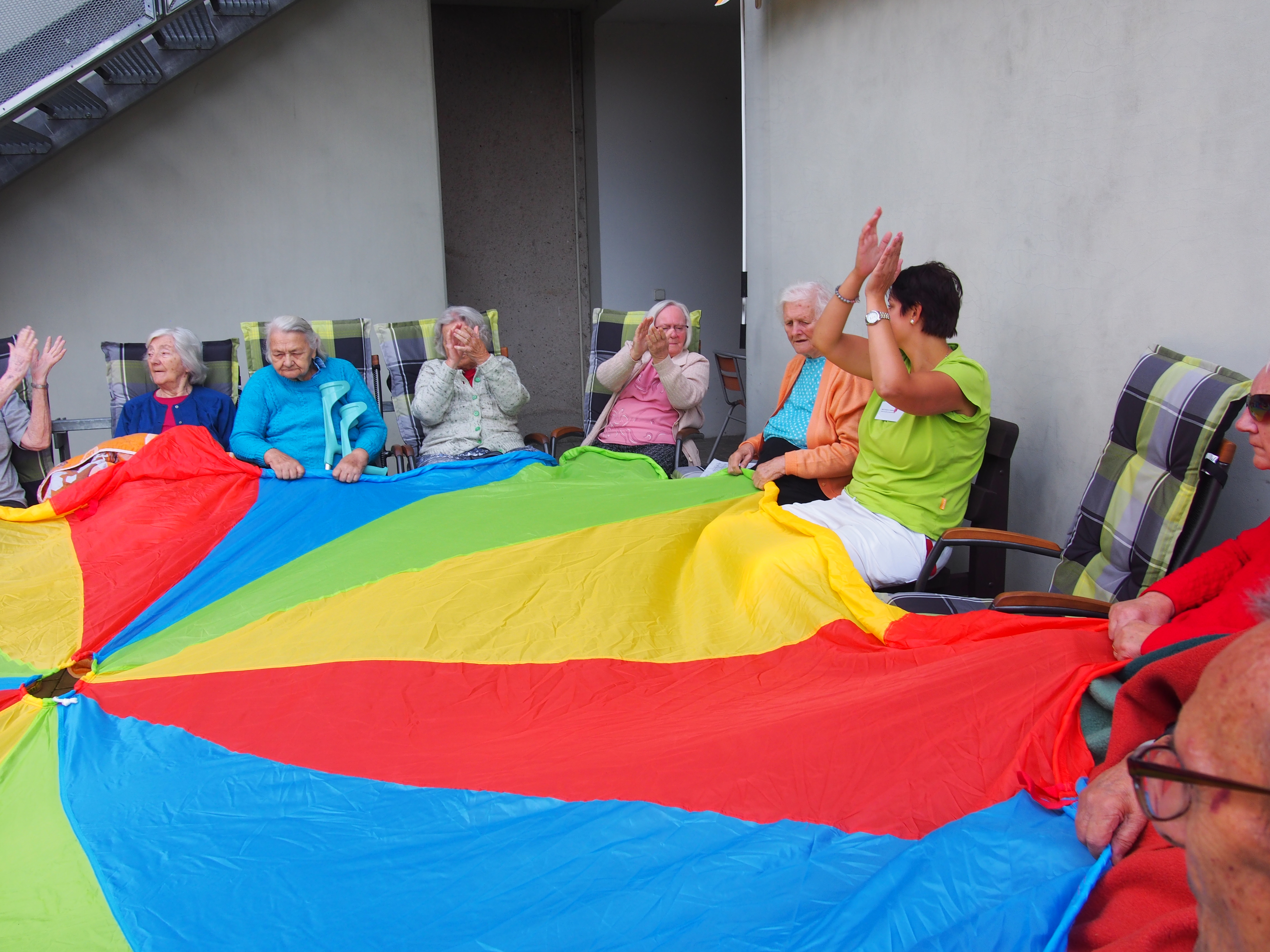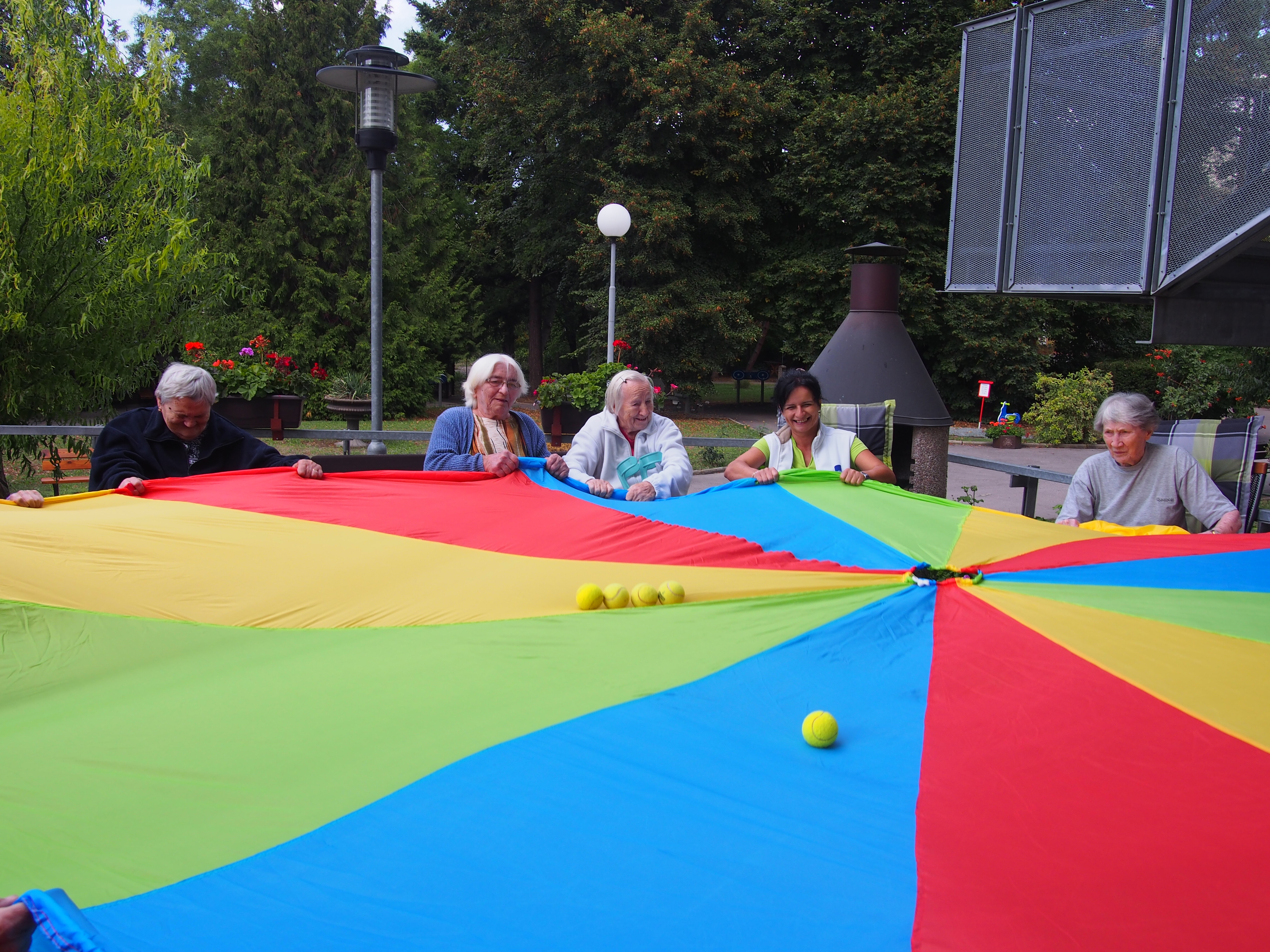 Využili jsme pěkného počasí a zacvičili jsme si s padákem.