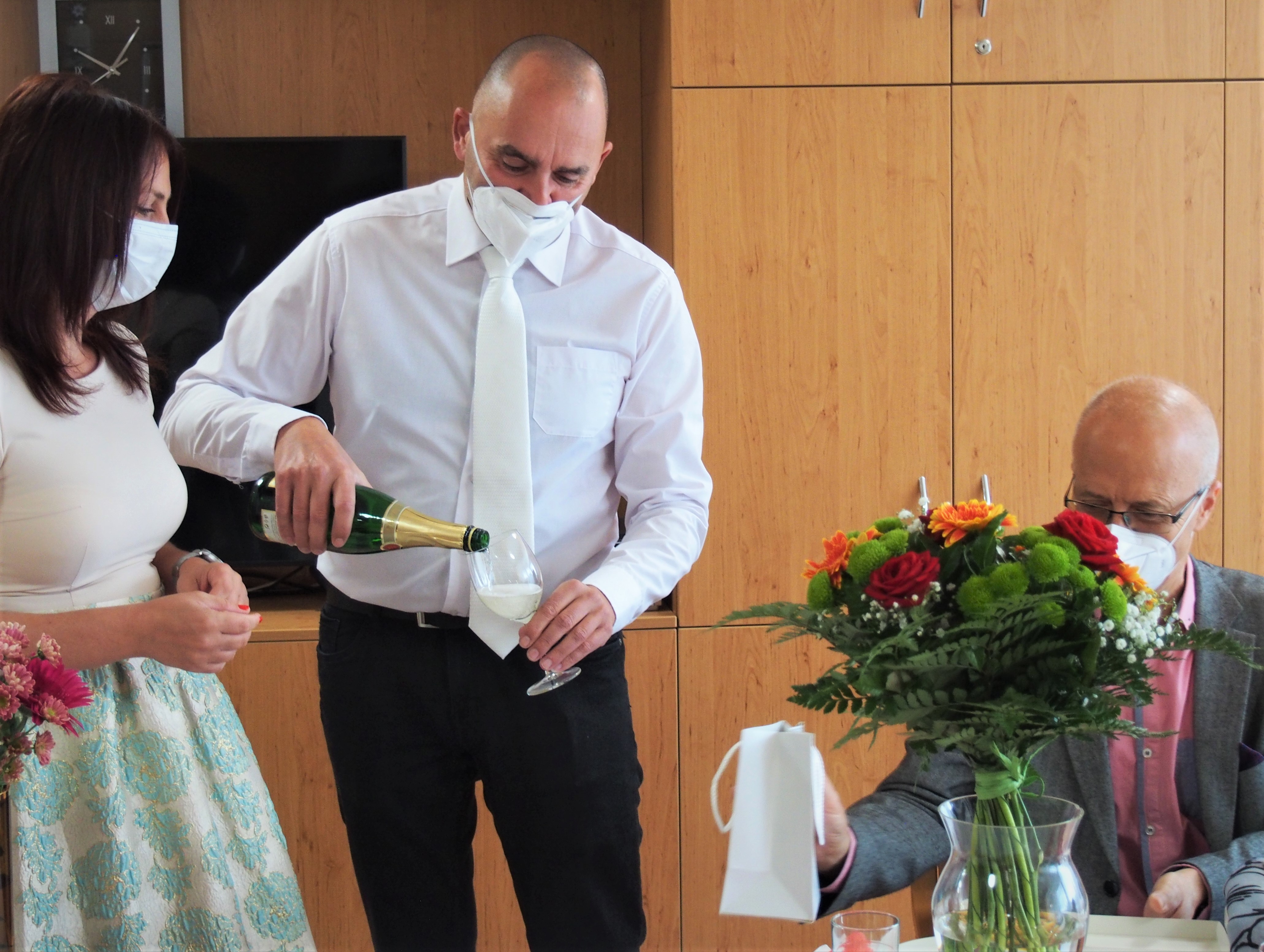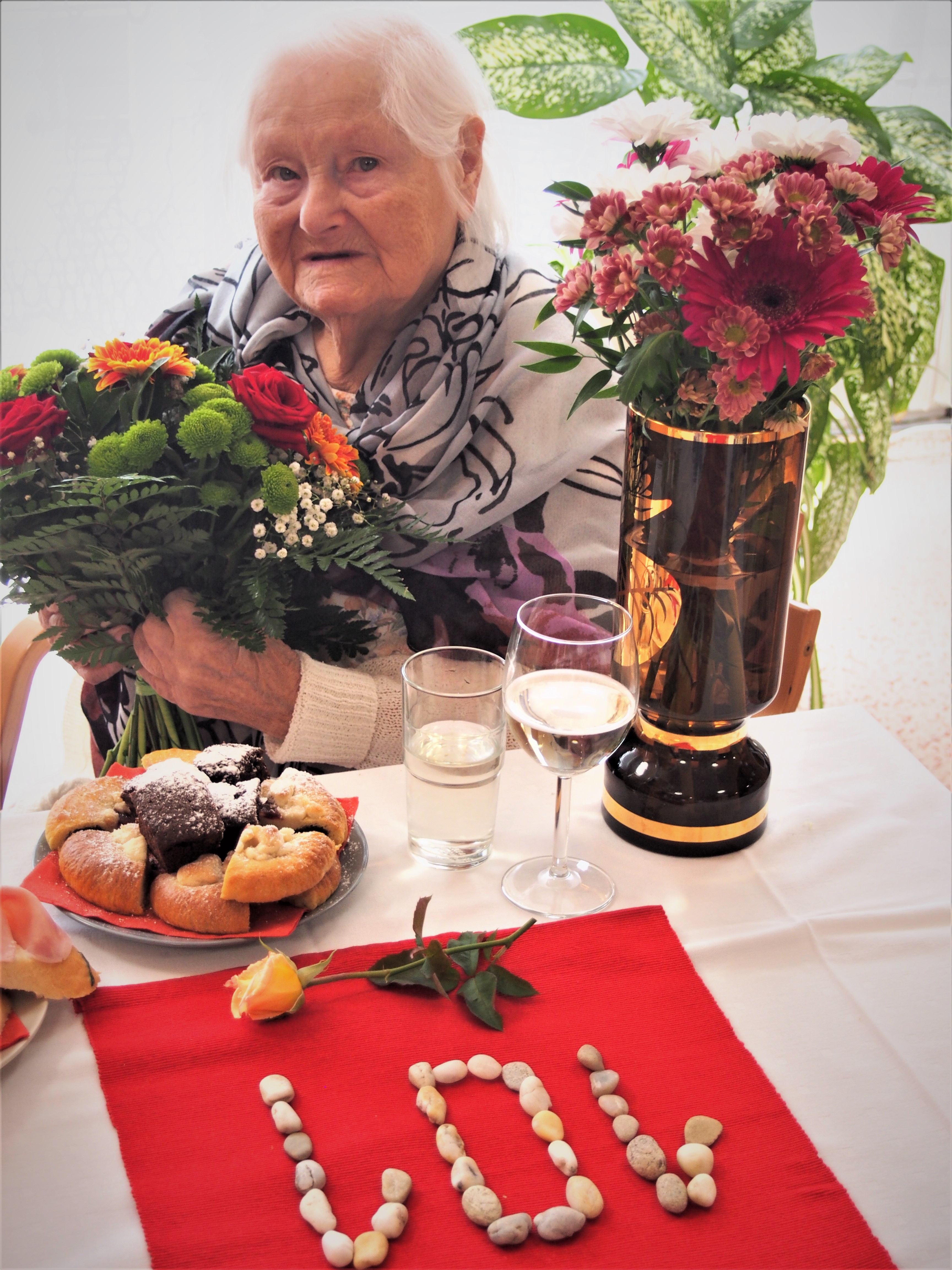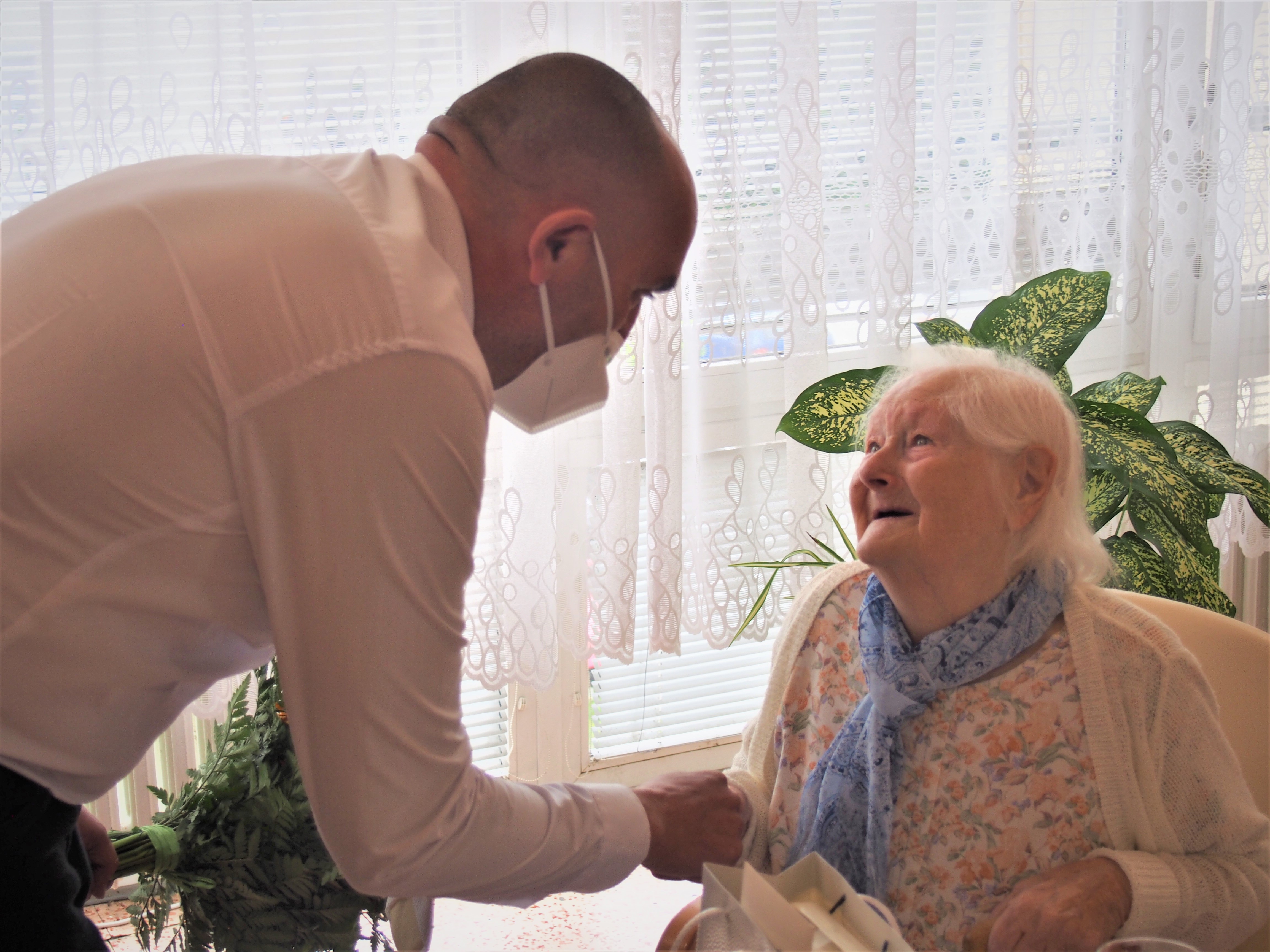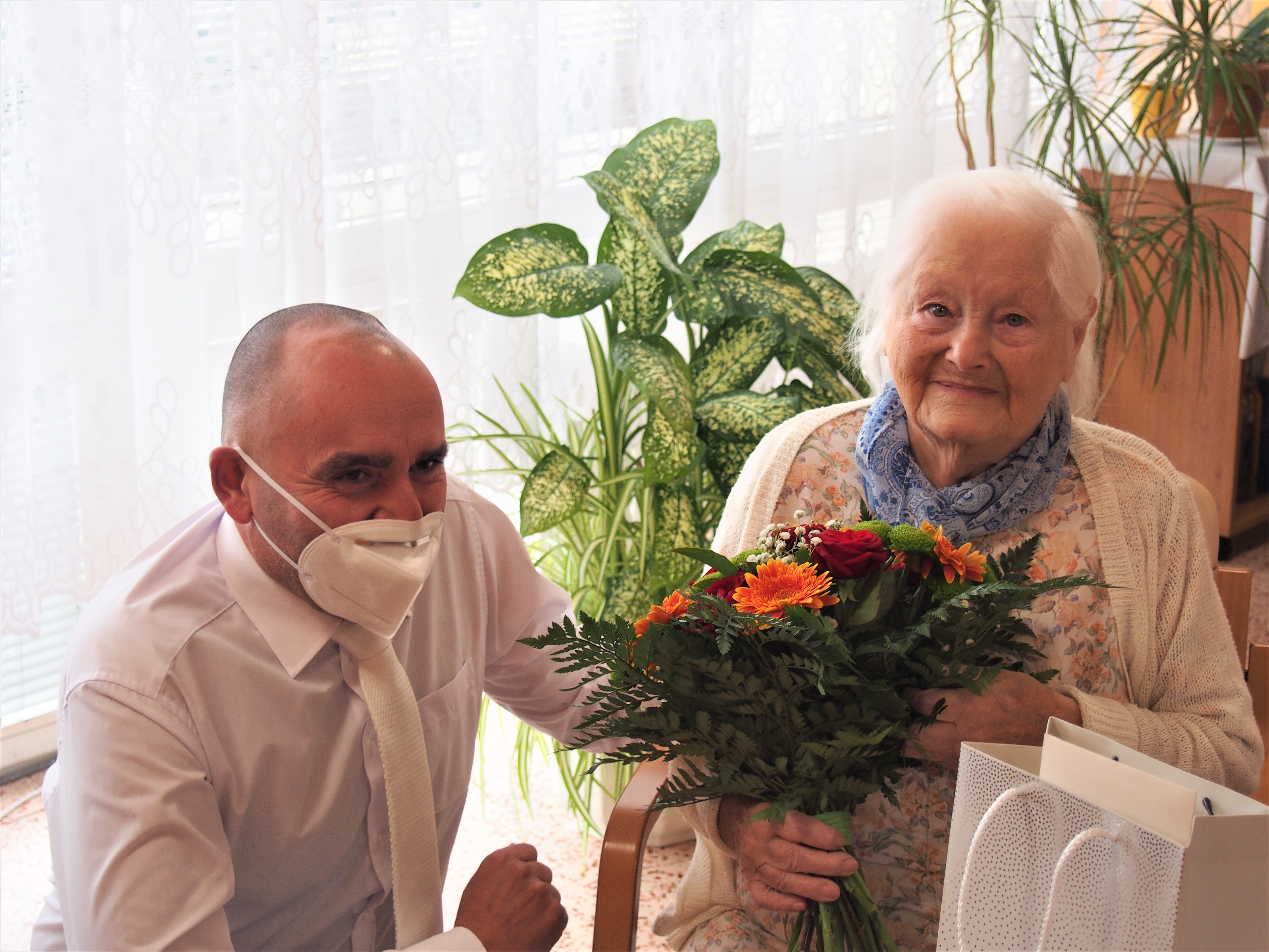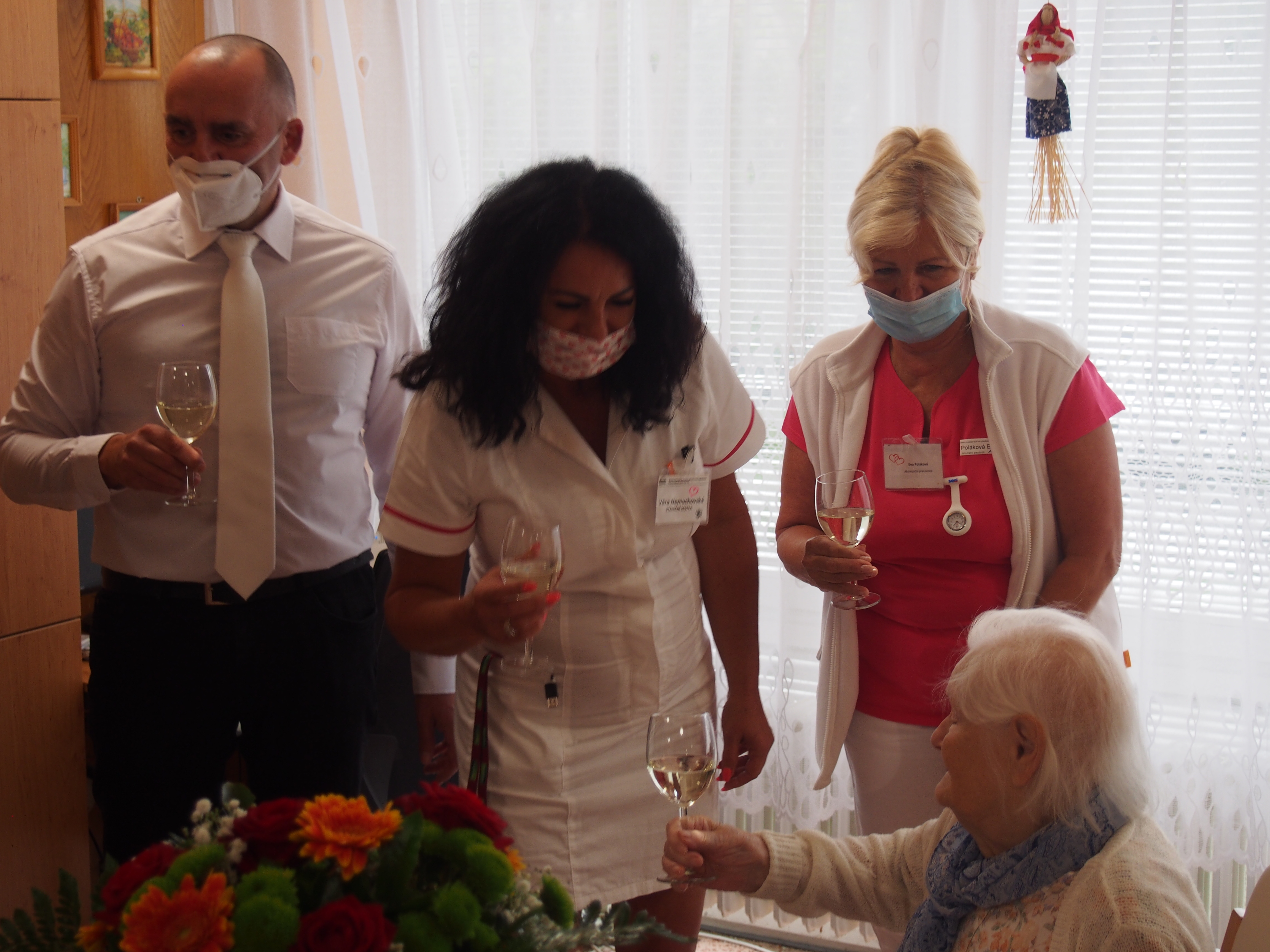 Dnes proběhla oslava 101. narozenin naší klientky, paní Karolíny Králové. Za Magistrát města Brna ji přišel pogratulovat pan PaedDr. Jan Polák, CSc. a předal také gratulaci a dárek od paní primátorky města Brna JUDr. Markéty Vaňkové. Paní Králová měla z oslavy velkou radost a se všemi si připila na zdraví.