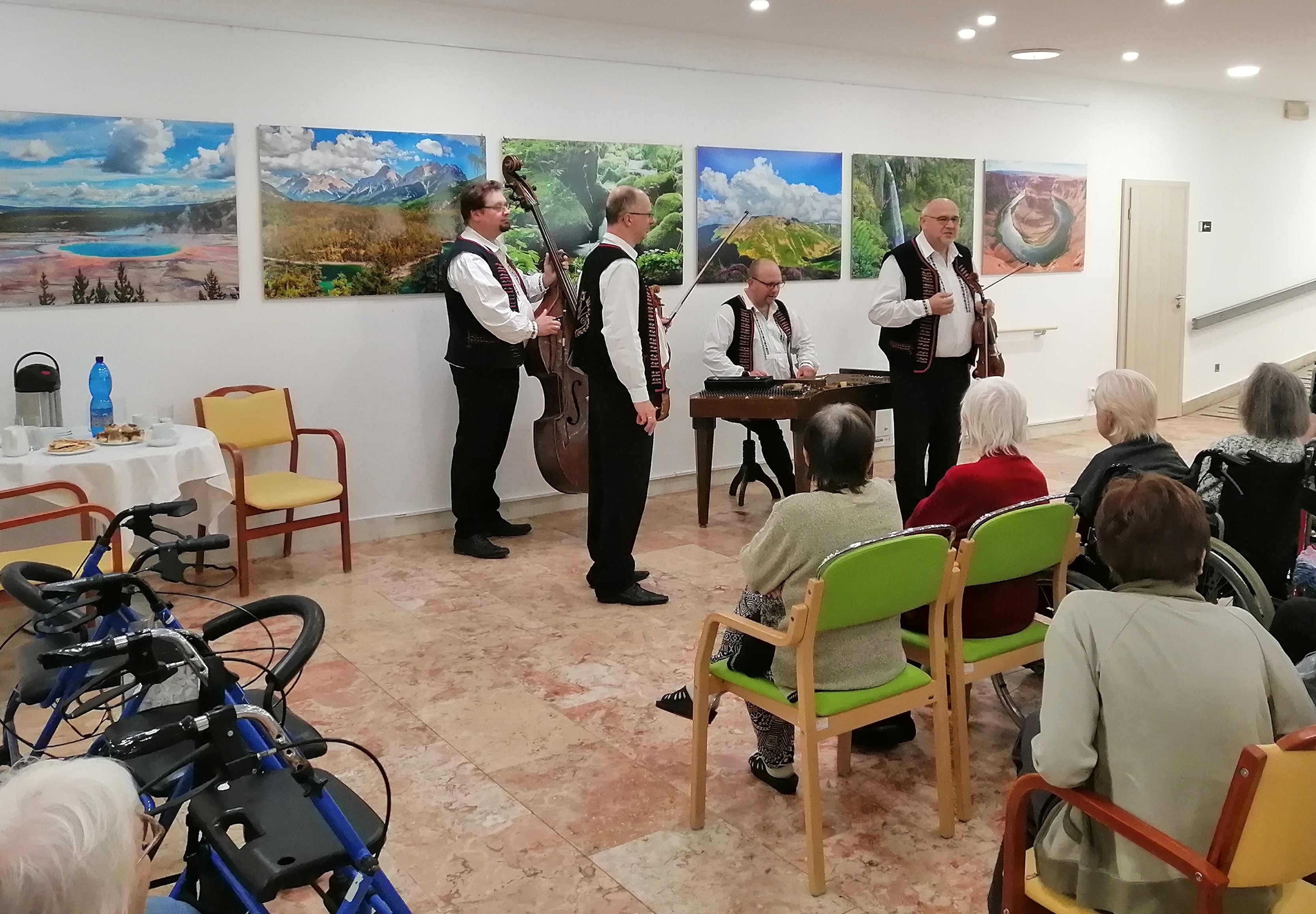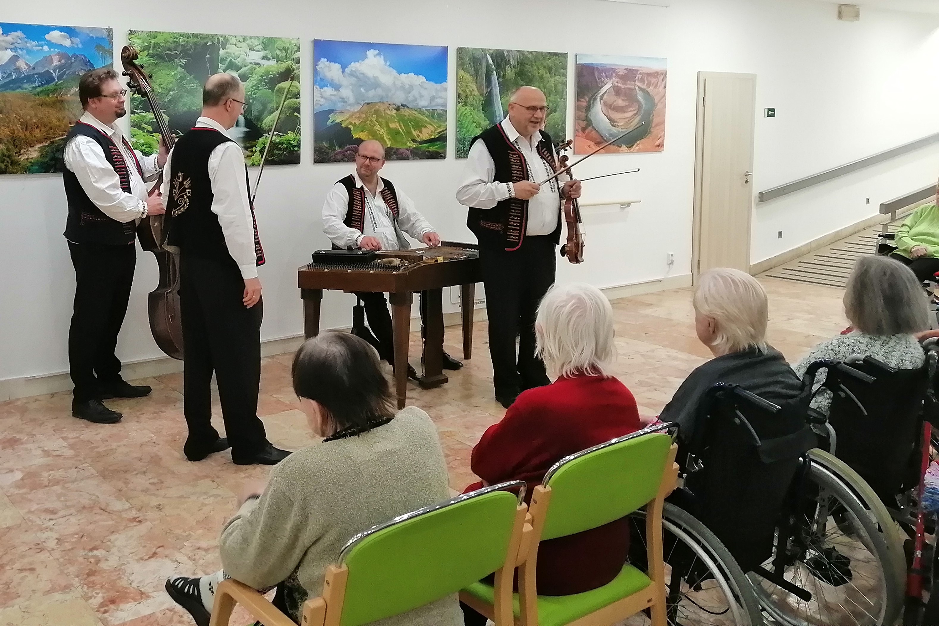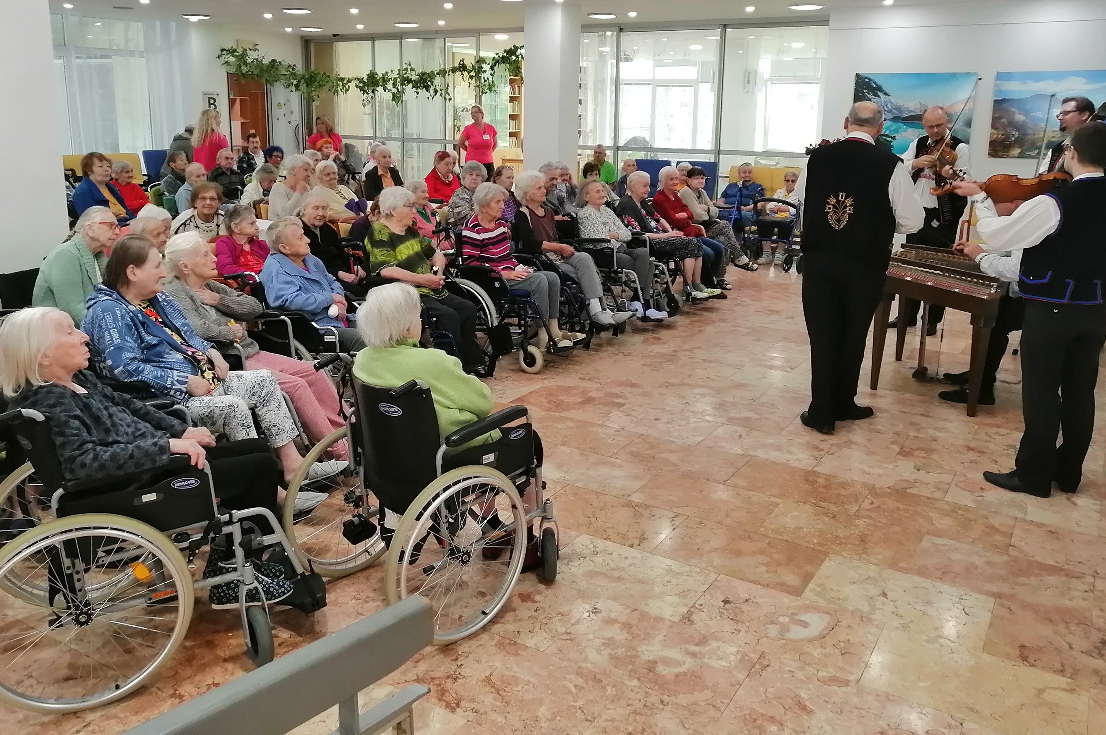 Dnes se jako každoročně konala společenská akce vinobraní. Při této příležitosti nám zahrála cimbálová muzika Aleše Smutného. Klienti si zazpívali, zatančili a pochutnali na občerstvení, které pro ně bylo připraveno. Tato akce se jim velice líbila. Tímto děkujeme všem členům z cimbálové muziky za krásný zážitek.
