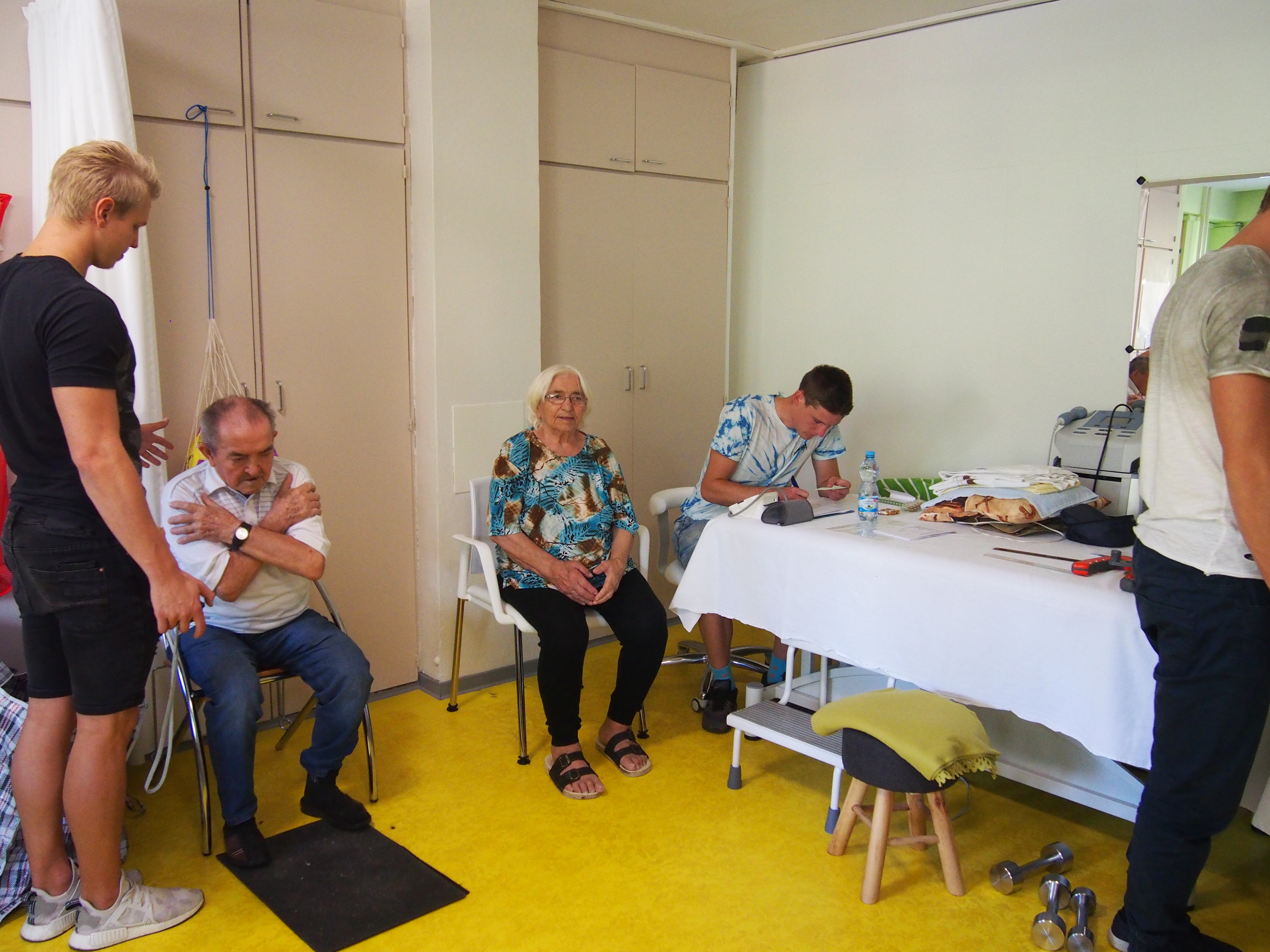Studenti Fakulty sportovních studií Masarykovy univerzity v našem domově realizovali výzkum na téma Pohybová aktivita, vybrané aspekty zdatnosti a rizikovost pádů seniorů v moravském regionu. Celý výzkum absolvuje 13 klientů z našeho zařízení. V první části naši klienti obdrželi akcelerometry a ve druhé části studenti provedli dotazníkové šetření s klienty a zároveň jim odebrali obdržené akcelerometry. Klienti se s nadšením výzkumu zúčastnili.