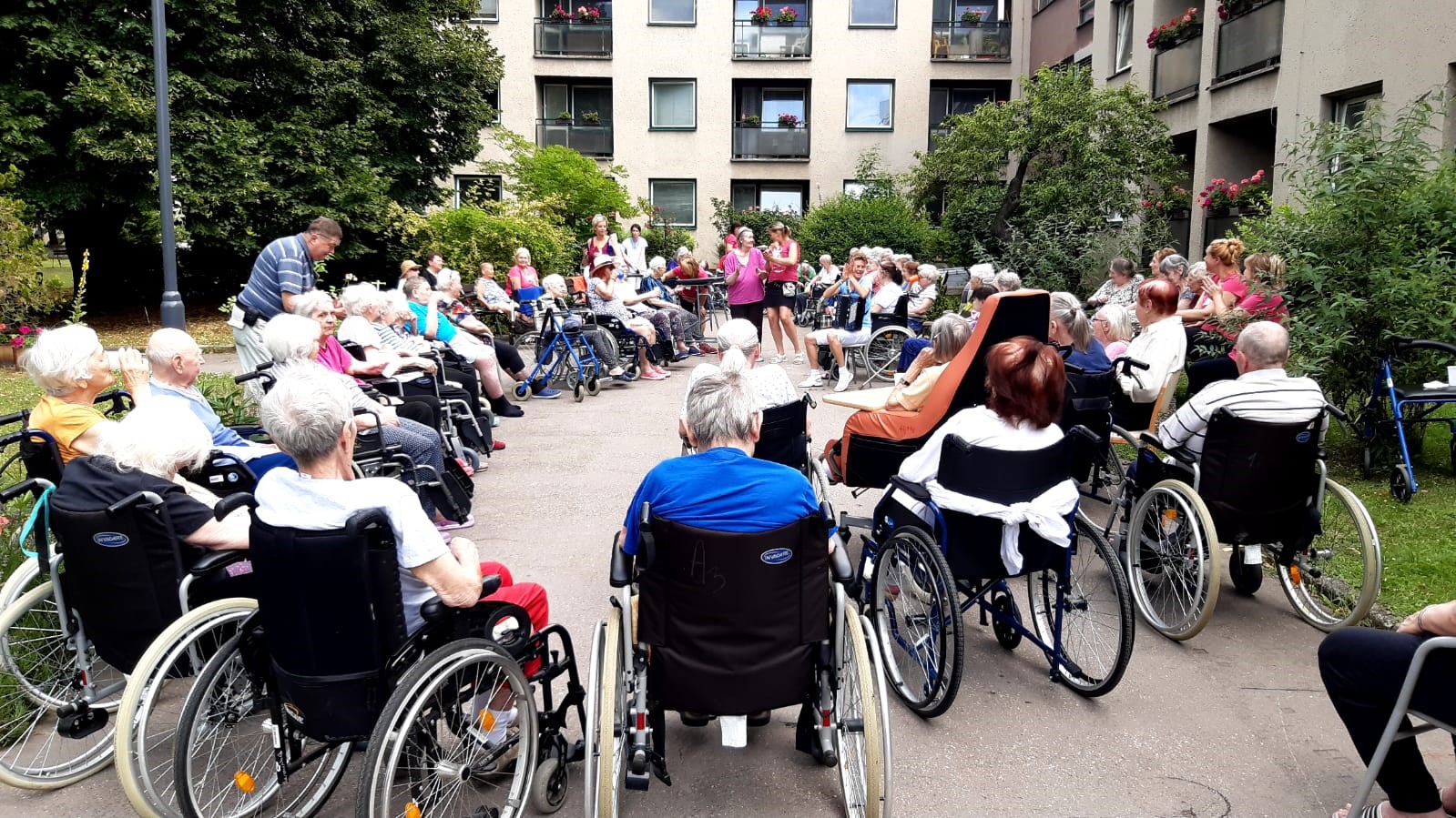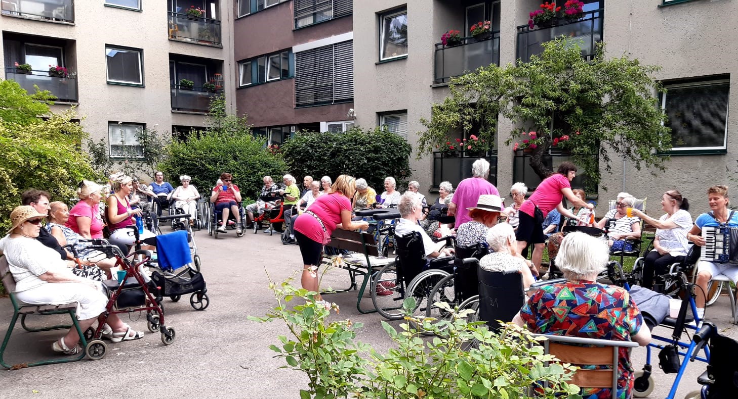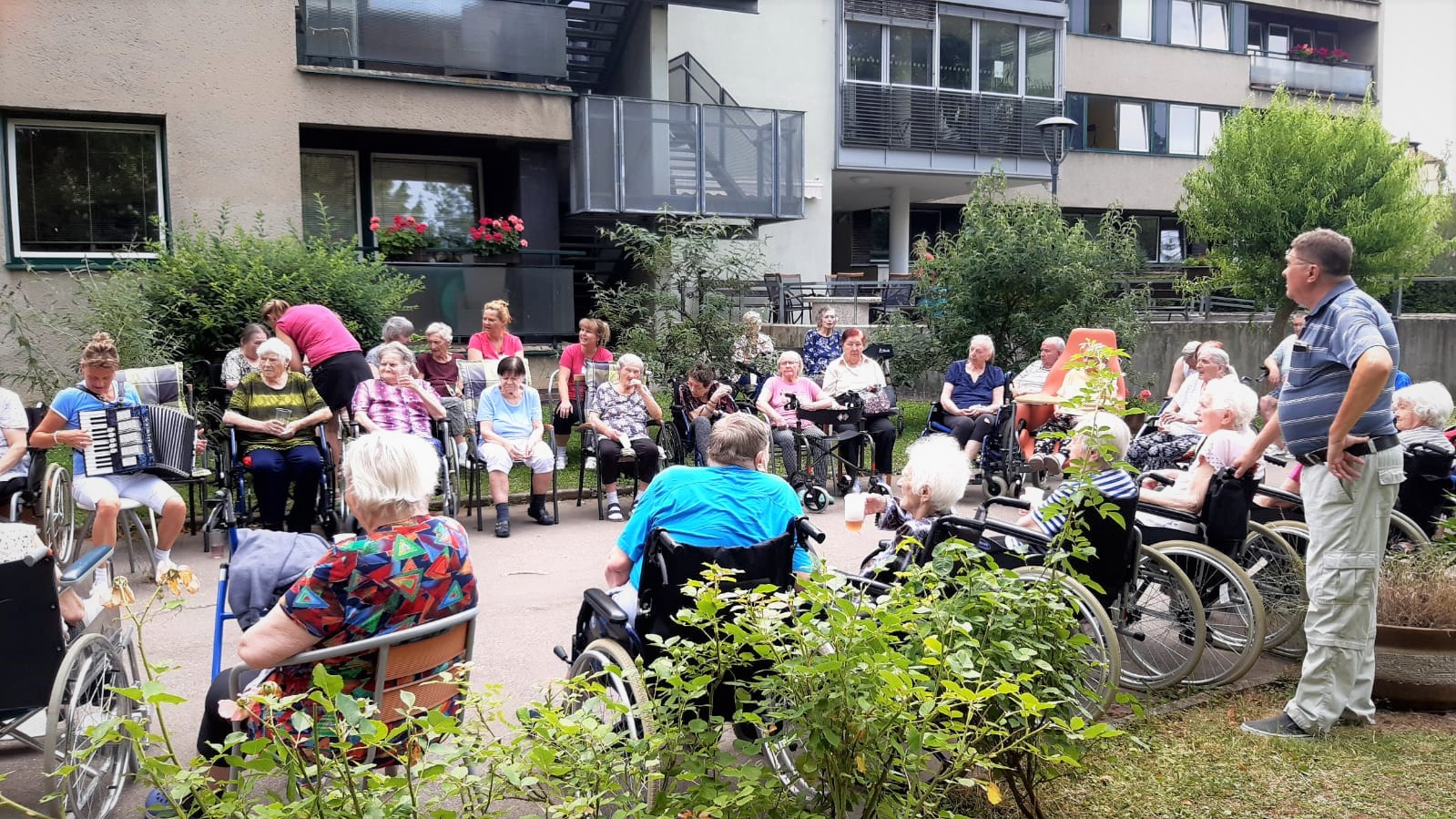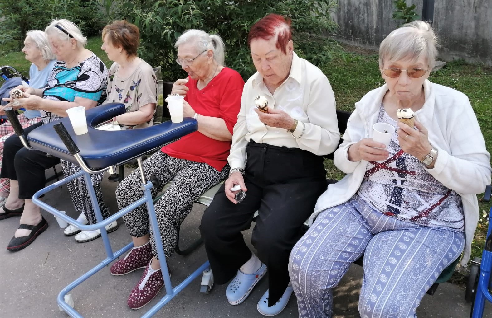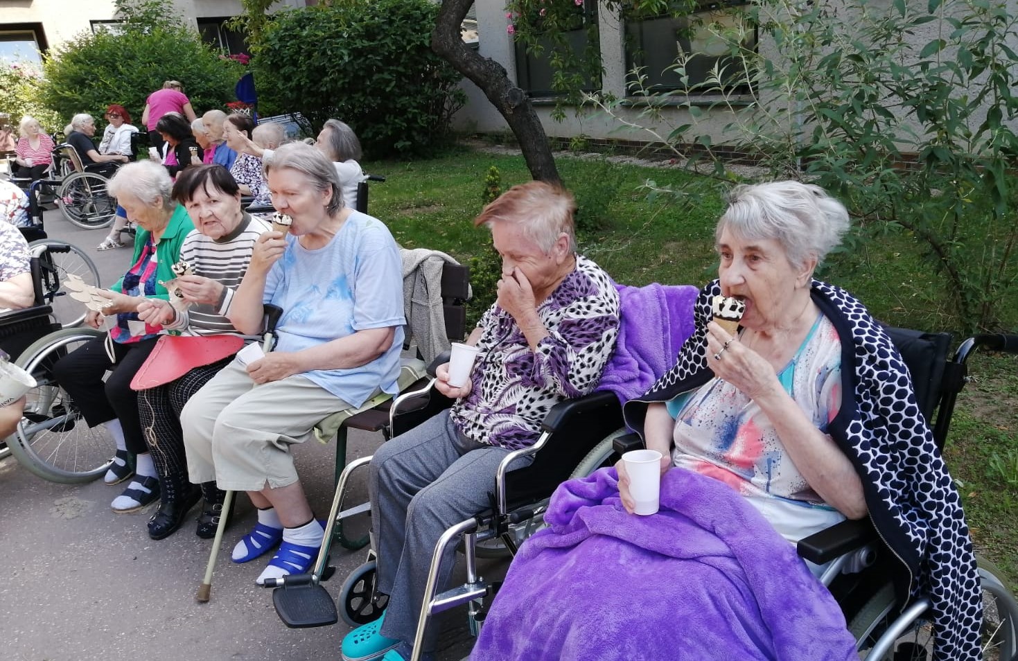 Příjemné letní dopoledne strávili klienti na zahradě. Za zvuku harmoniky si pochutnali na zmrzlině, která všechny příjemně osvěžila.