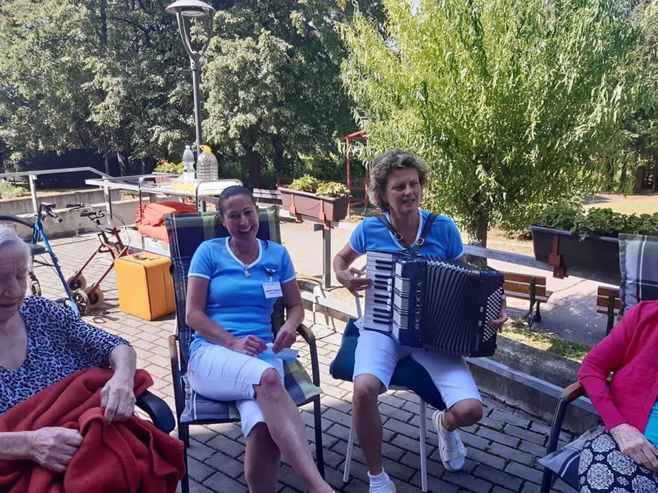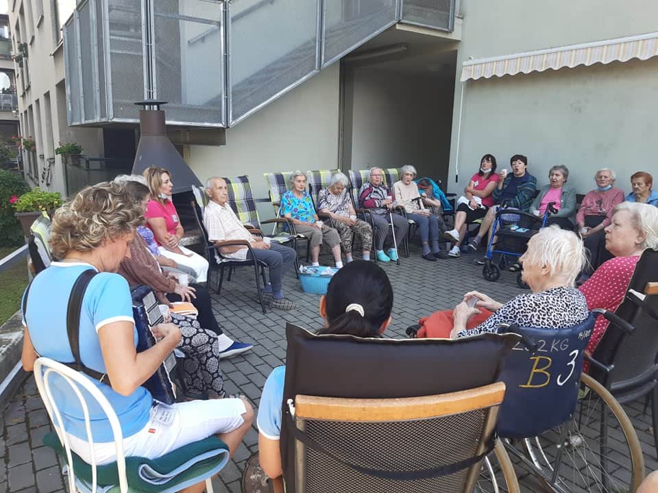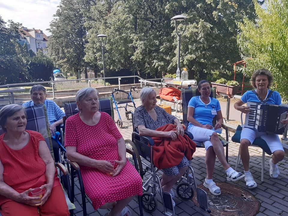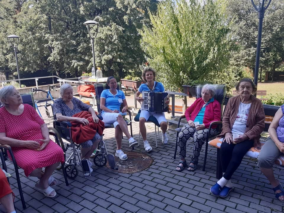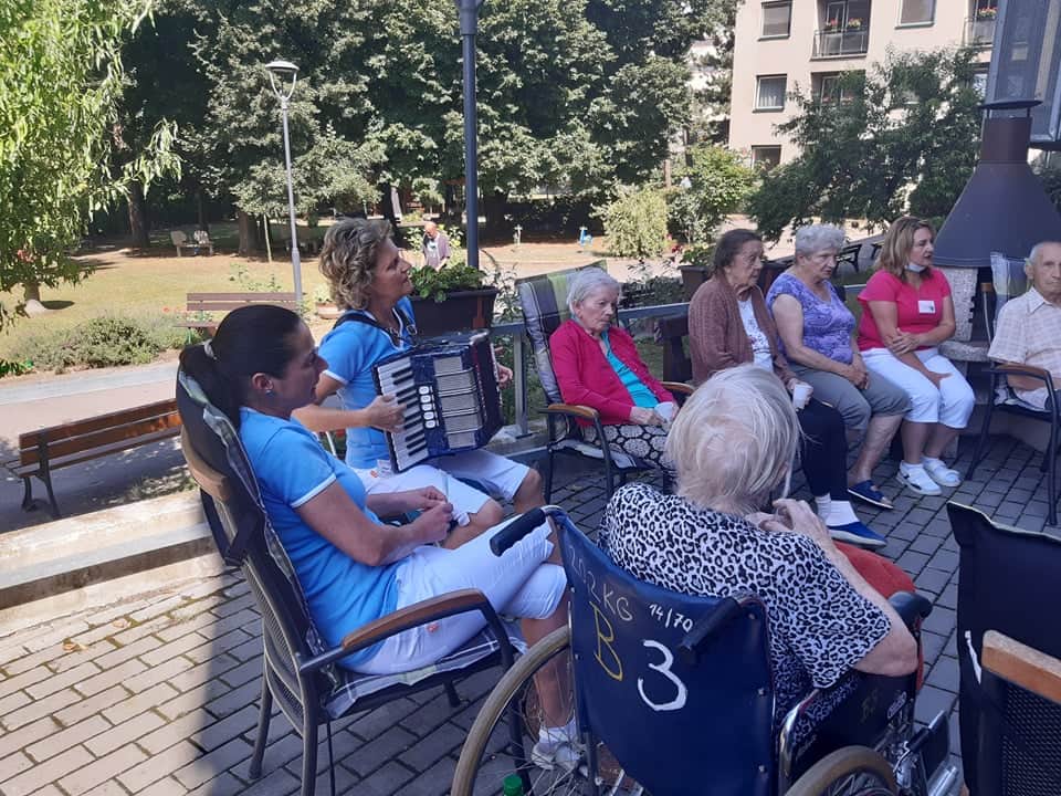 Své oblíbené písničky si dnes klienti za doprovodu harmoniky zazpívali na terase.
