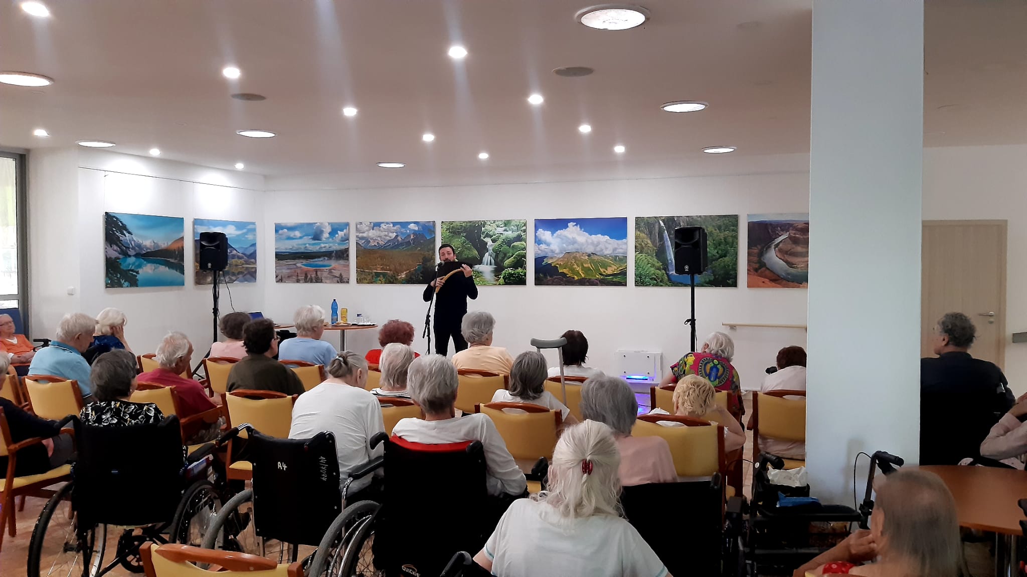 Dne 11.7.2023 nám zpříjemnil letní dopoledne pan Petr Tomeček hrou na Panovu Flétnu.
