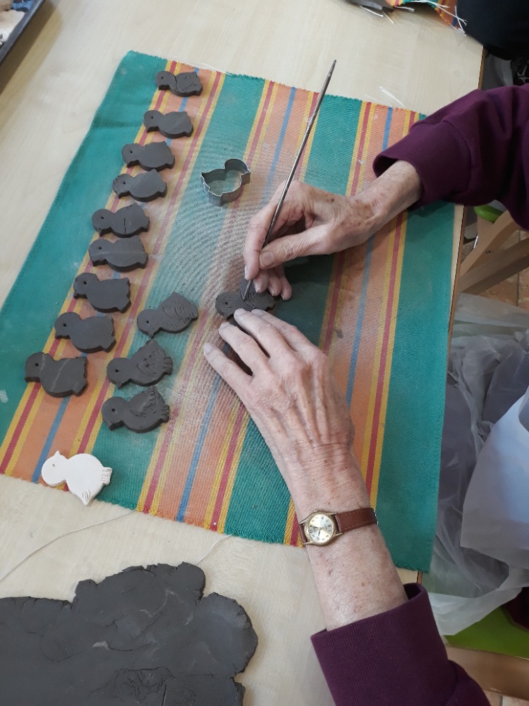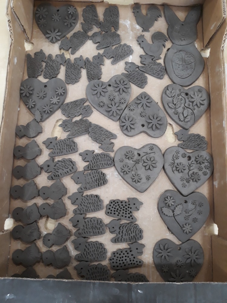Naši šikovní klienti se již připravují na Velikonoce. Z hlíny modelovali výrobky s jarními a velikonočními motivy.