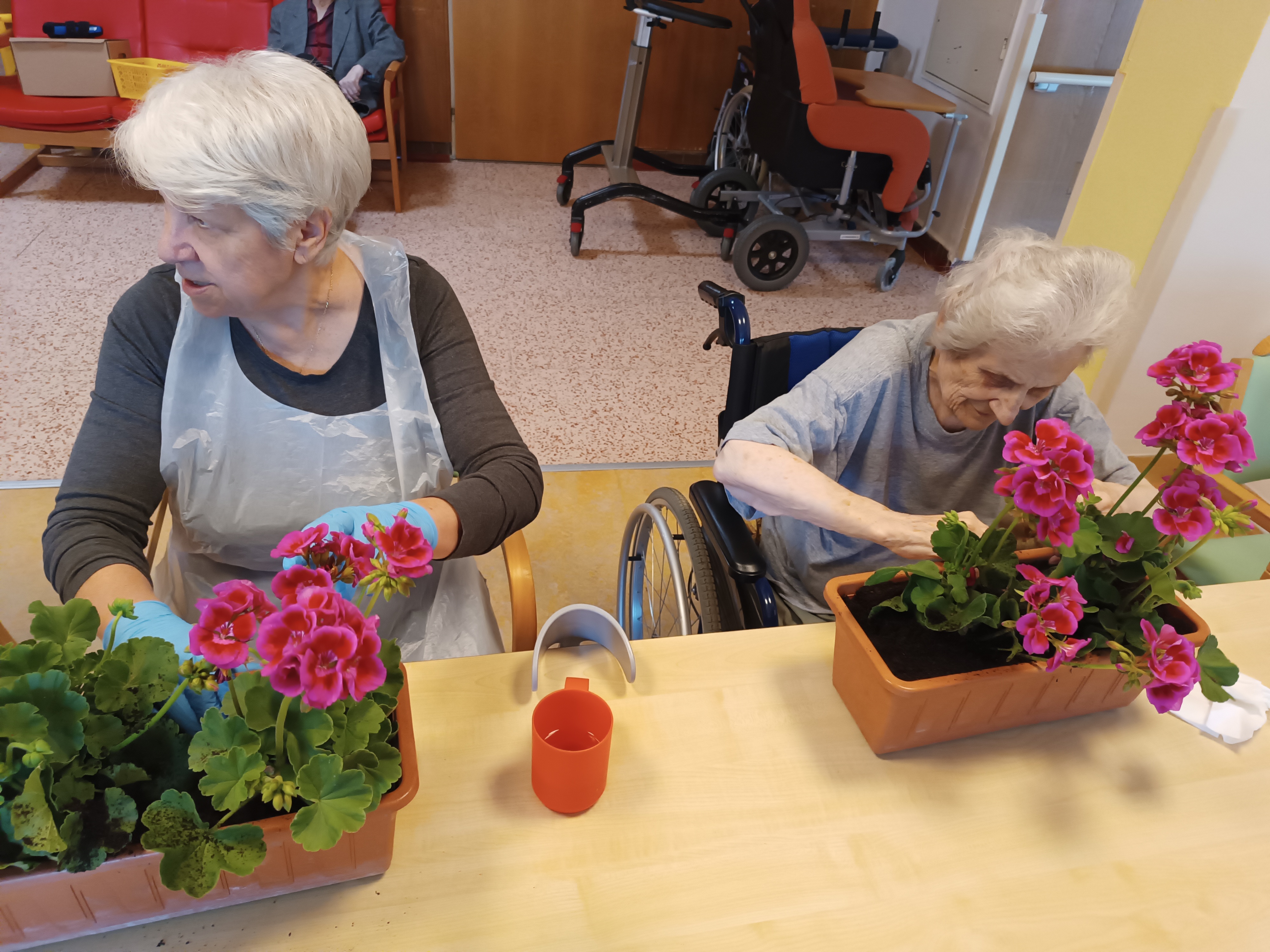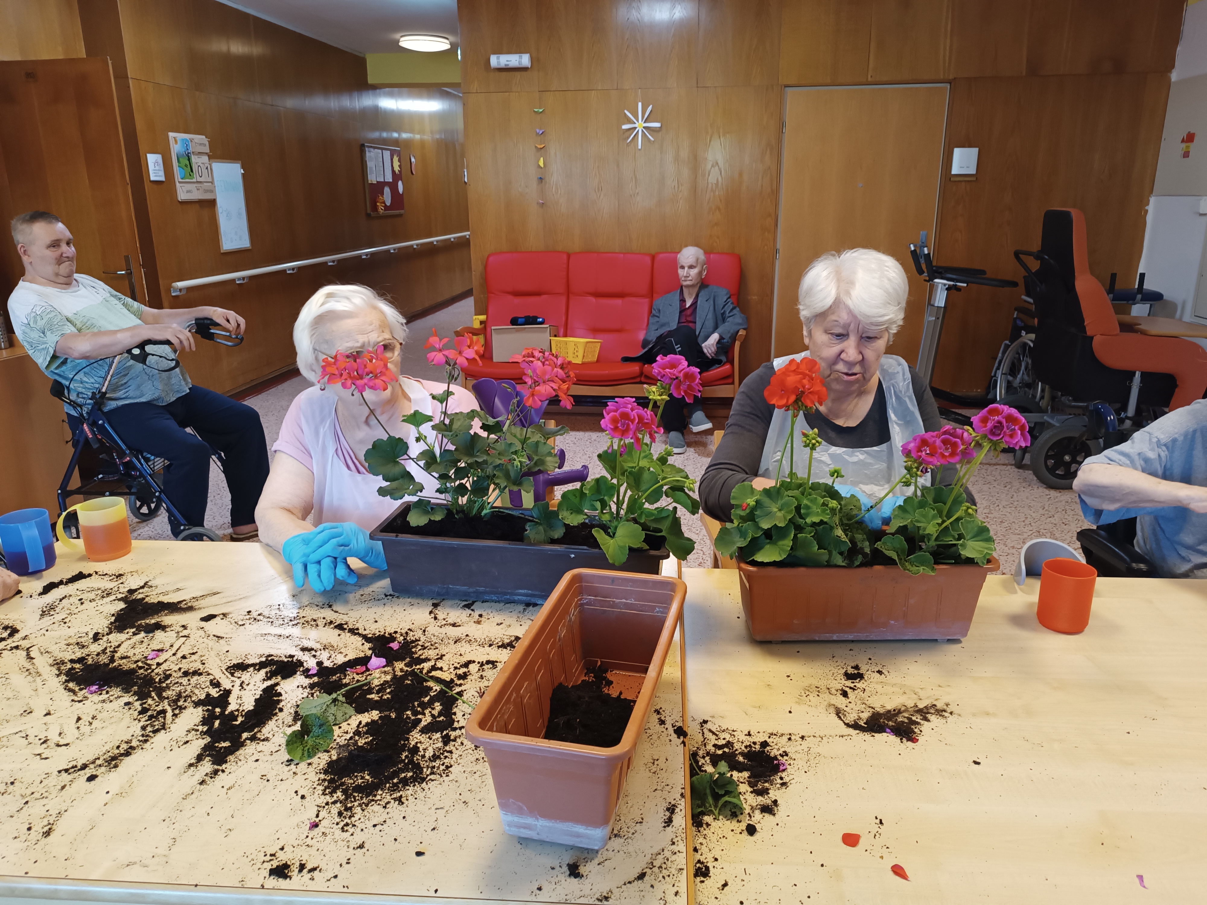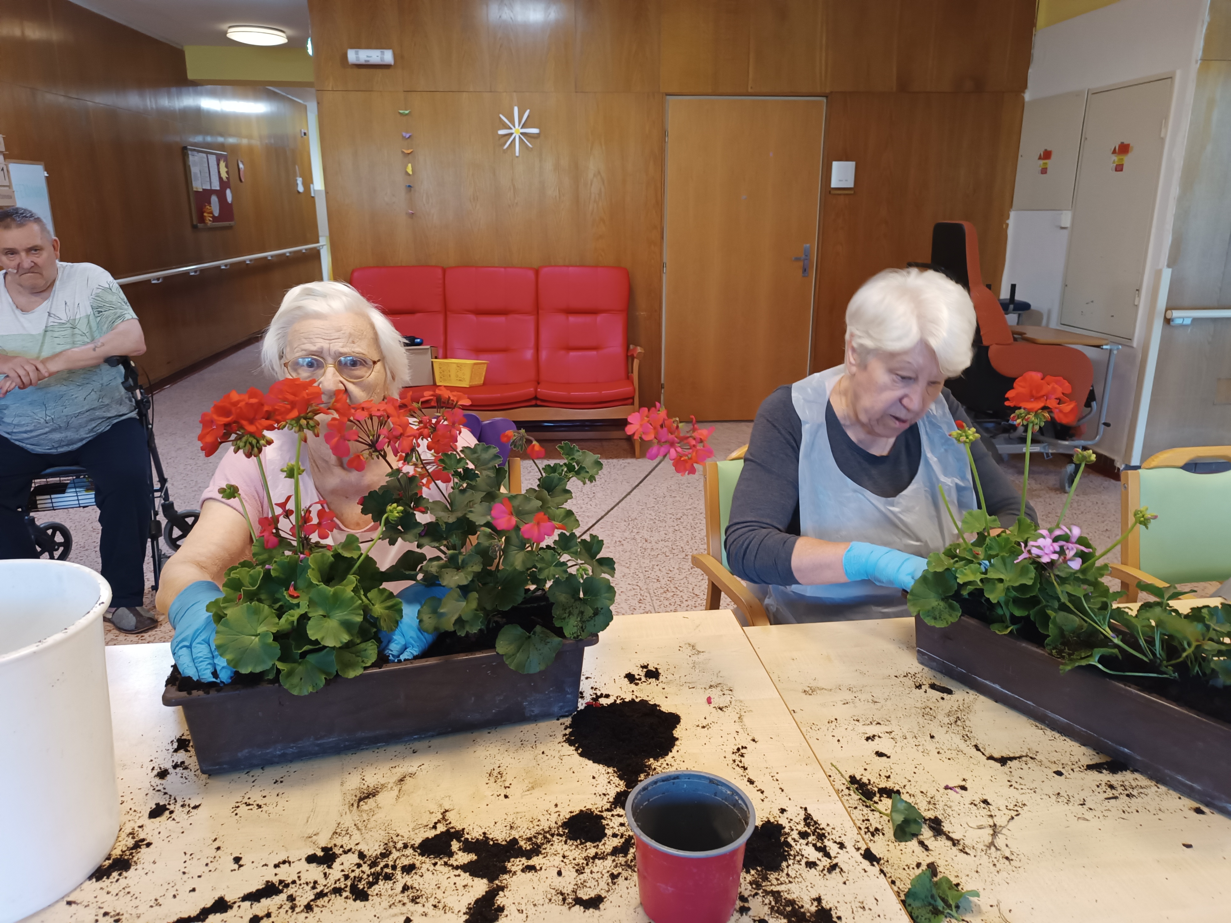 Celý rok se naši klienti těší na výzdobu balkonů krásnými muškáty. Vždy se rádi zapojí do osazování truhlíků.