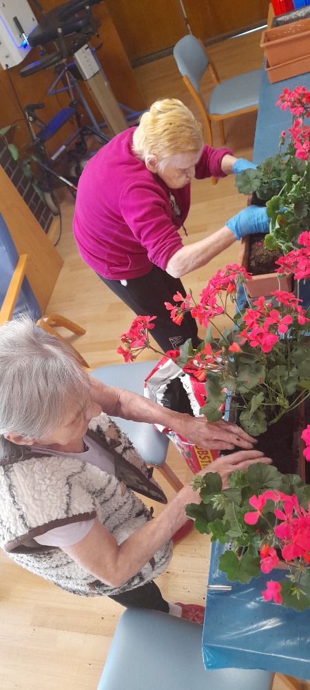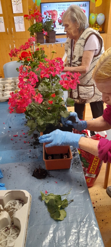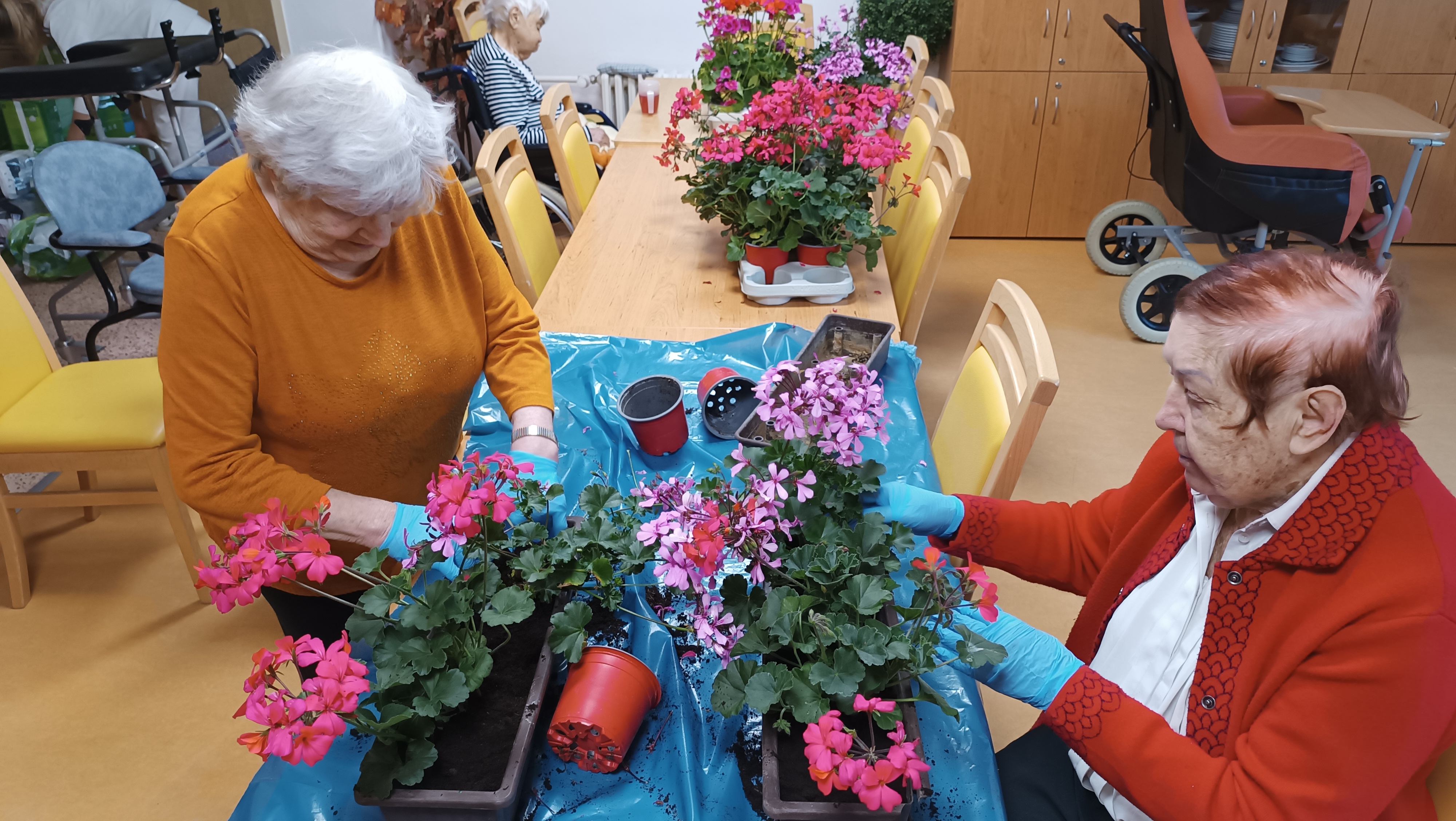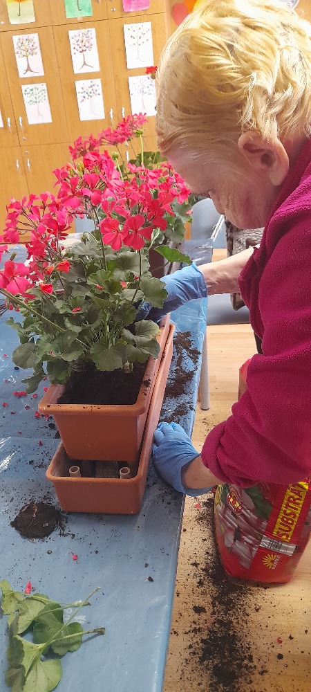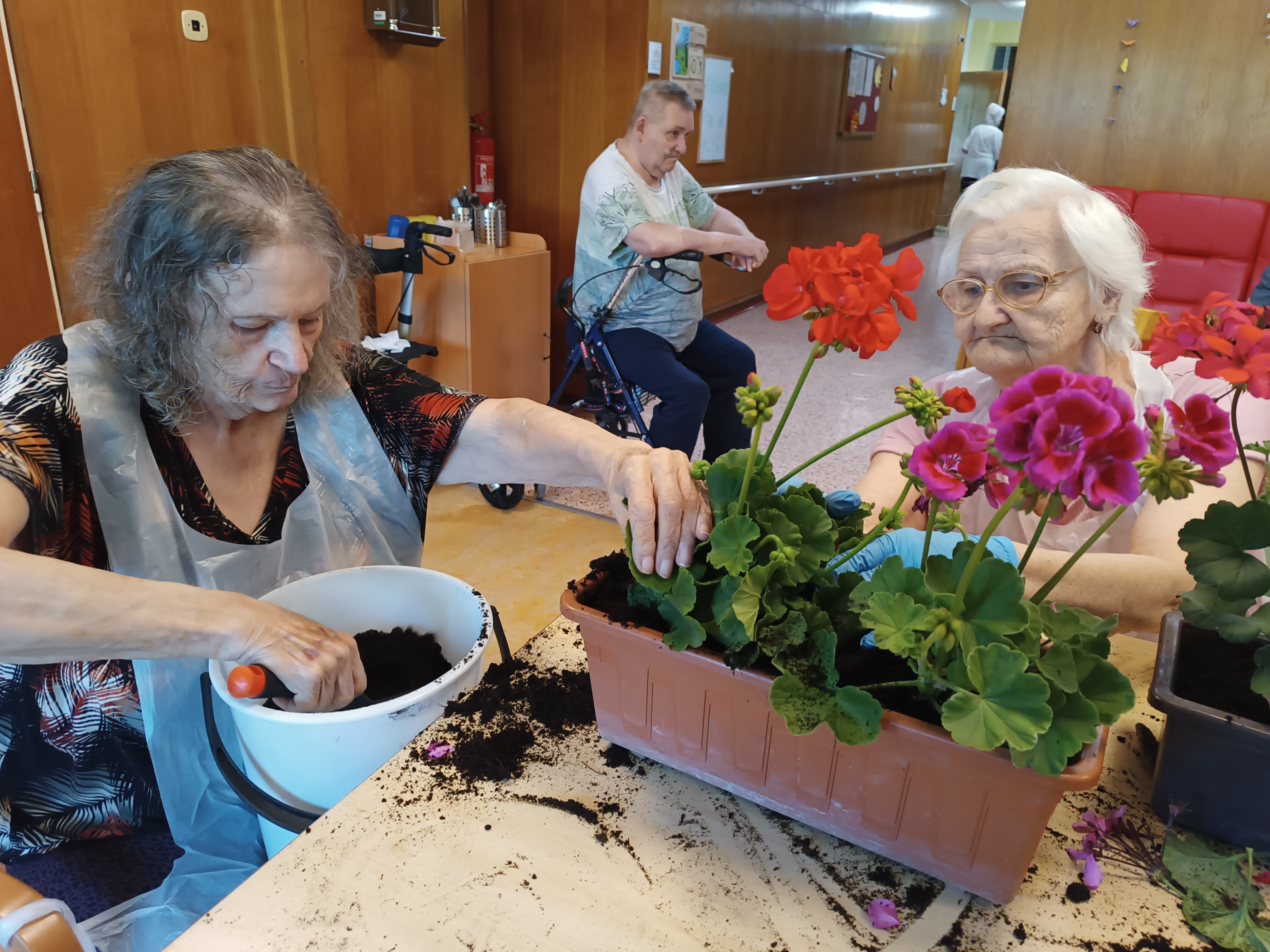 Celý rok se naši klienti těší na výzdobu balkonů krásnými muškáty. Vždy se rádi zapojí do osazování truhlíků.