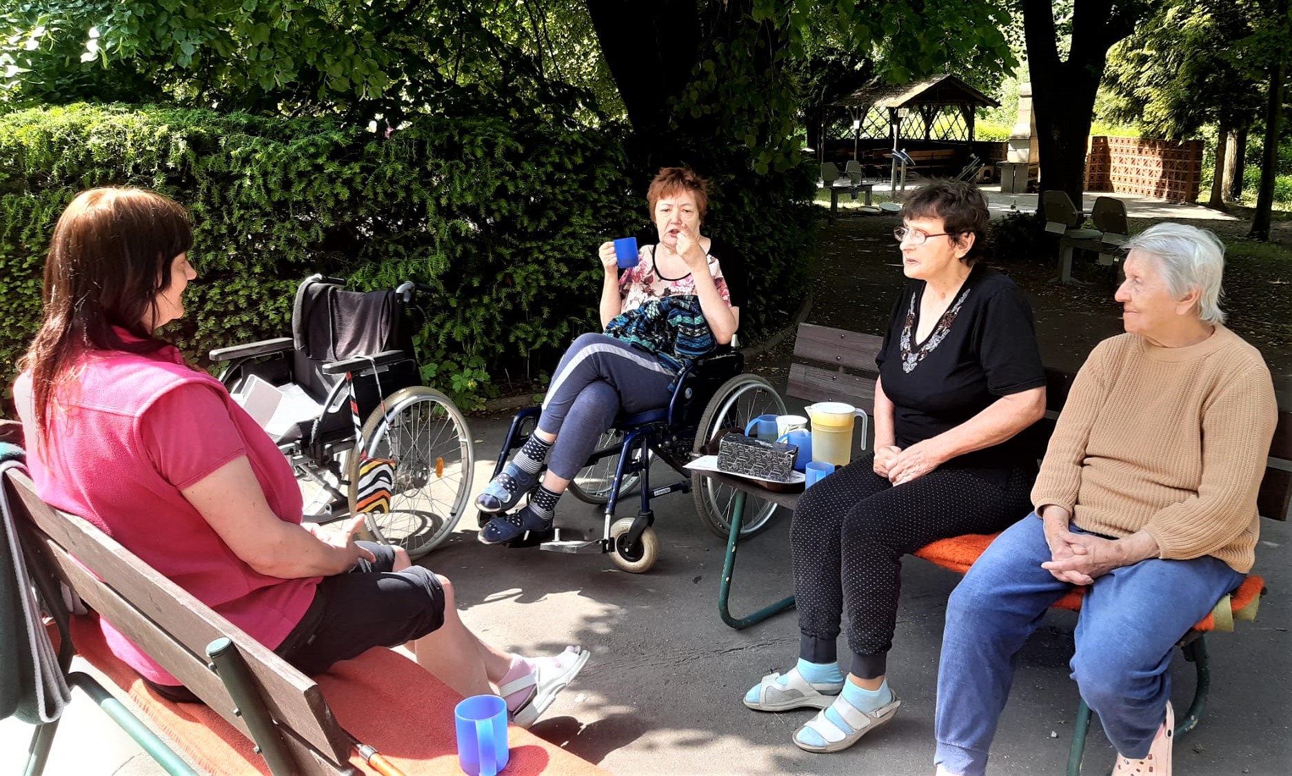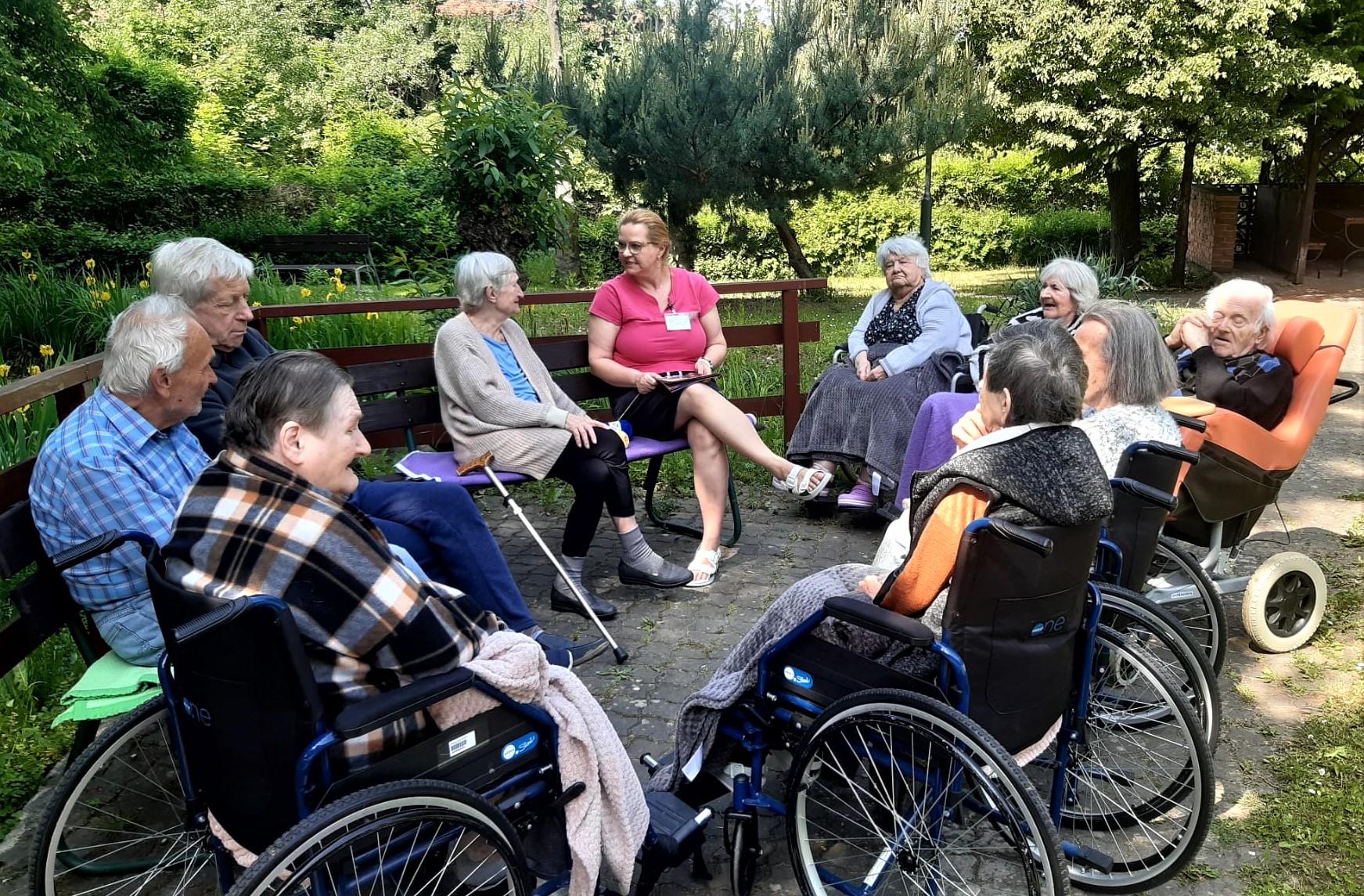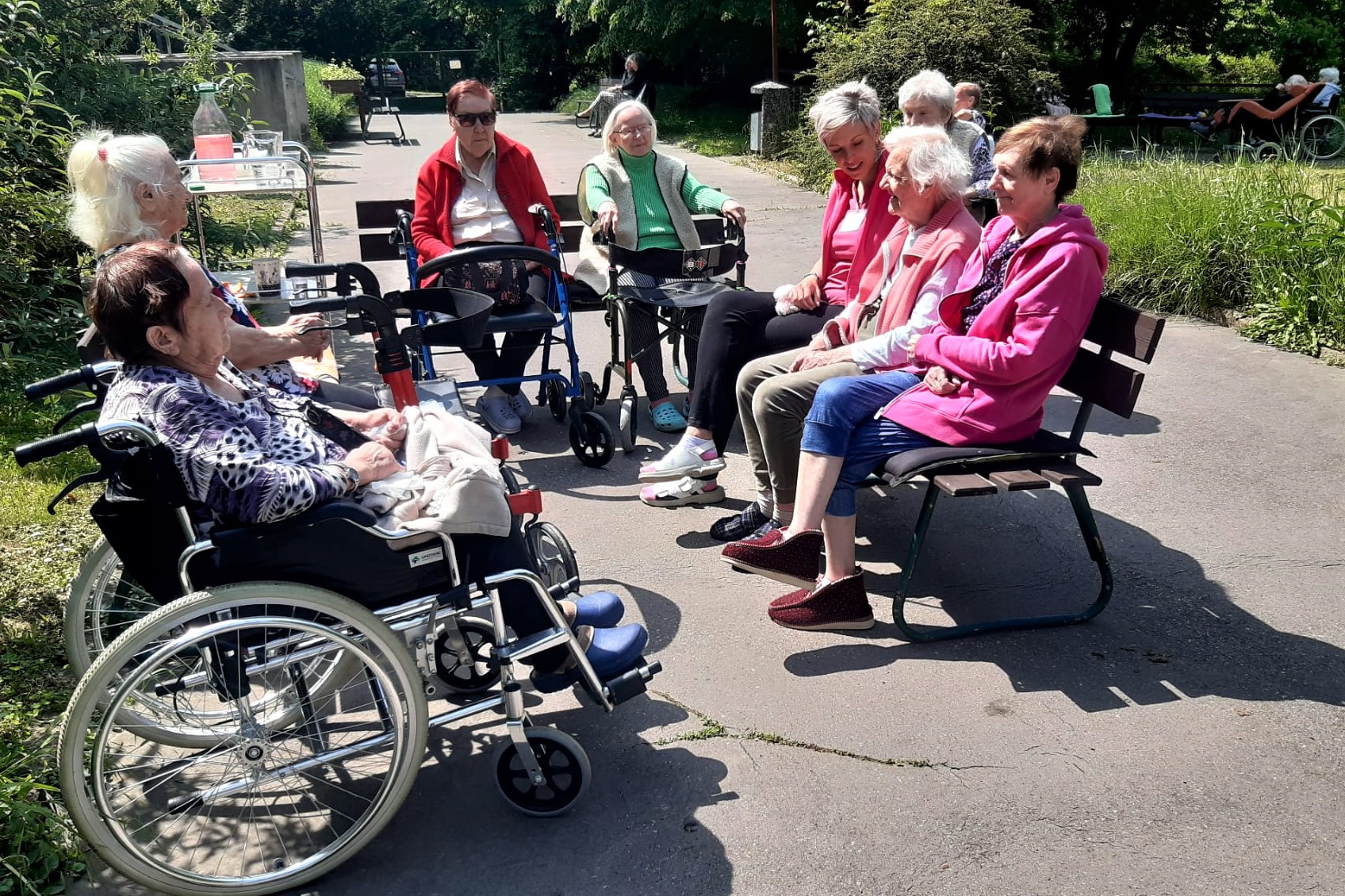 Za hezkého počasí probíhá na zahradě domova dopolední skupinová aktivizace. Klienti jsou vždy nadšeni, užívají si sluníčka a obdivují krásy přírody.